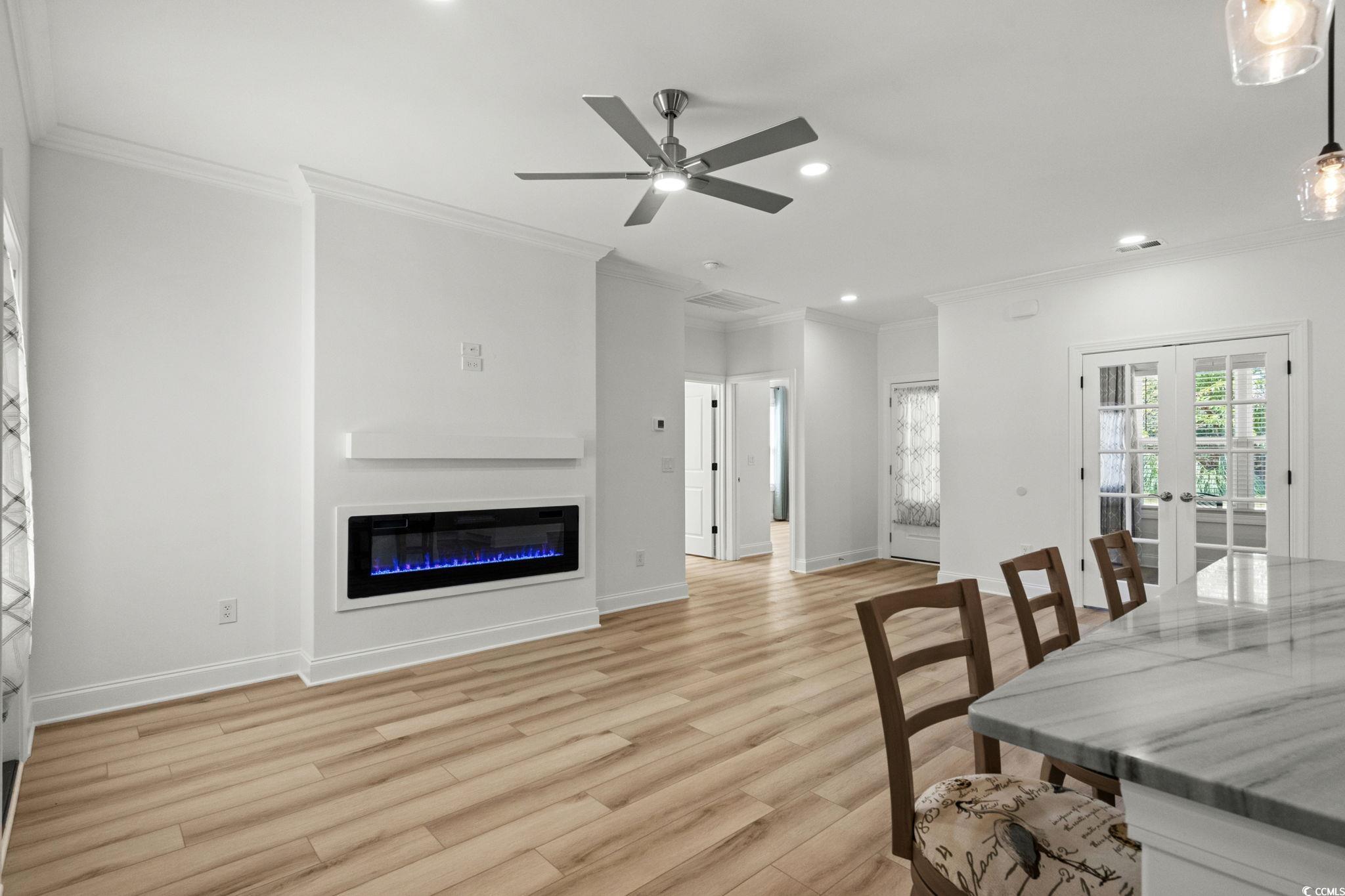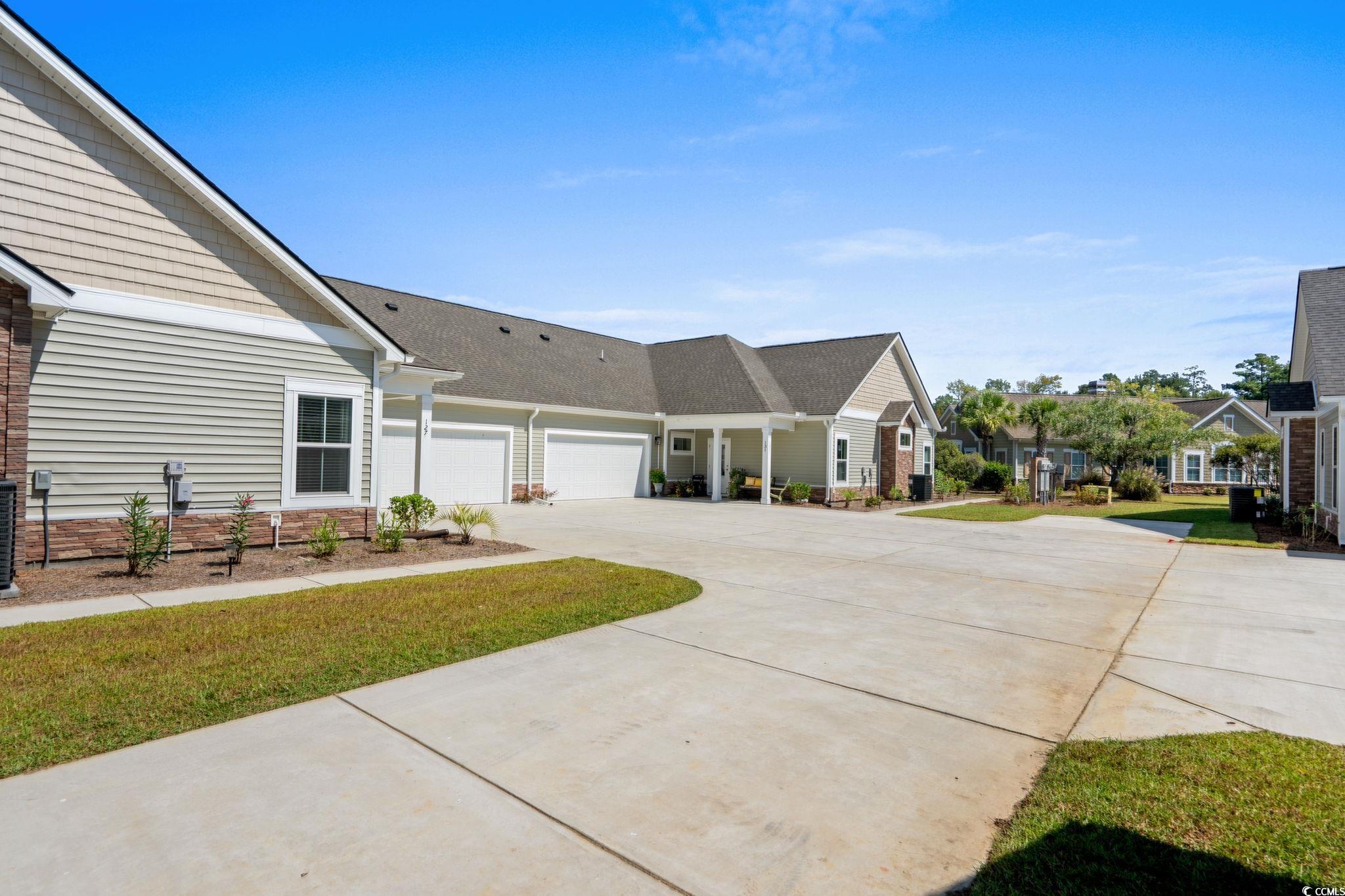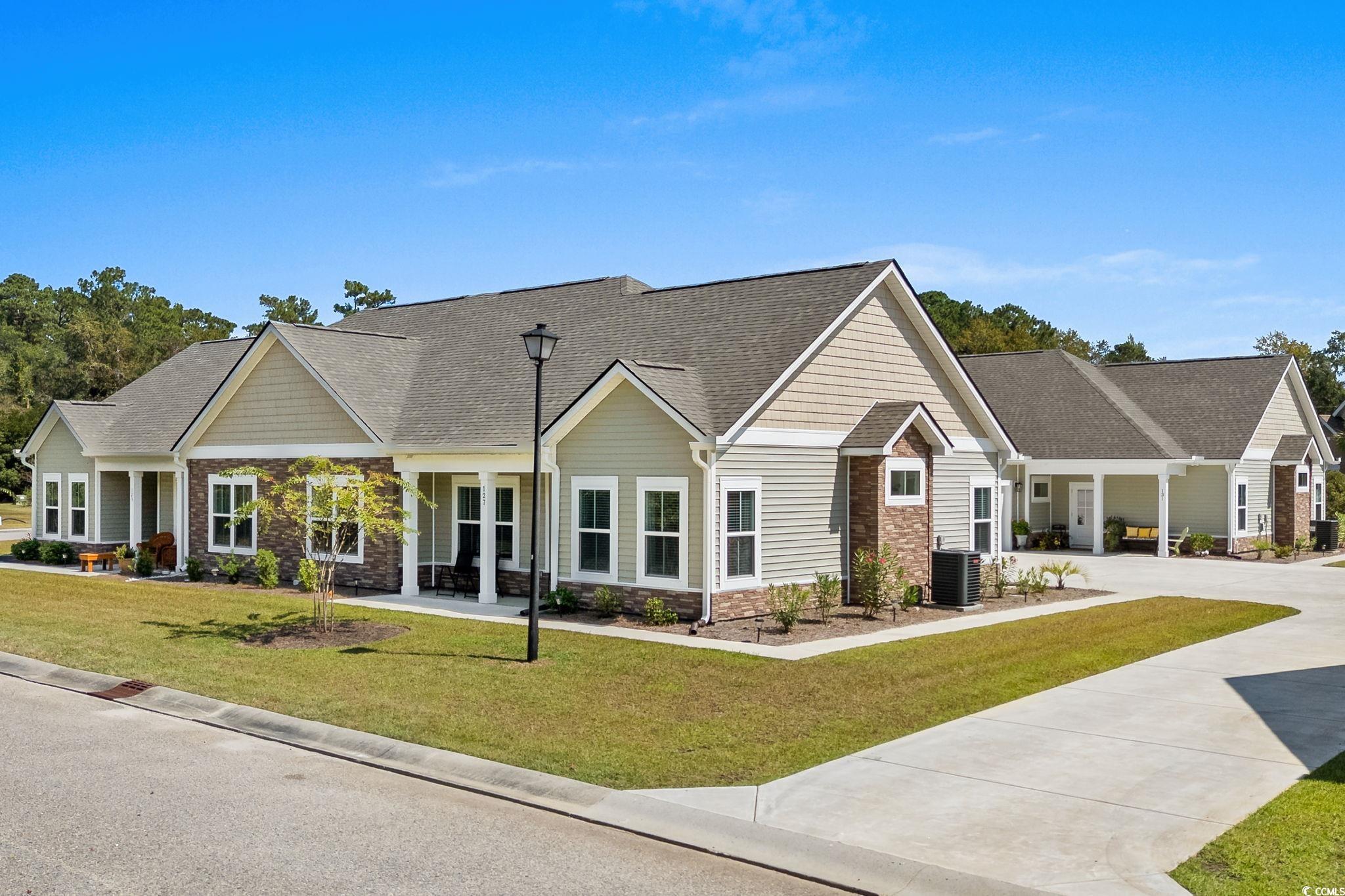 Welcome to this never-occupied, move-in ready villa offering modern comfort and thoughtful details—all on the first floor. Featuring 3 bedrooms, including a primary suite with a walk-in closet and private en suite bath with double sinks, this home combines style and convenience. You’ll love the LVP flooring throughout, ceiling fans in every room, and a modern remote-control fireplace that adds warmth and character to the living space. The kitchen boasts all-new stainless steel appliances, while the versatile Carolina Room is perfect for a cozy den, office, dining room or sunlit sitting area. (Some different options are shown in photos) This home also includes elegant draperies and 2 inch blinds that convey, giving every room a polished and finished look. A spacious 2-car garage with pull-down attic stairs provides plenty of storage, and the community amenities include a clubhouse and sparkling outdoor pool. *Master Bedroom furniture, Carolina Room chairs, dining room set, and Kitchen bar stools may be included with appropriate offer. Ideally located near shopping, dining, medical facilities, and just a short drive to the beach, this condo offers the perfect combination of comfort, convenience, and coastal living. **HOA fee includes: Exterior insurance, Water/Sewer, Trash/Garbage collection, Cable TV & Internet, Exterior Pressure Washing, Pest Control, Landscaping, Pool & Clubhouse Maintenance, and Annual Dryer Vent Cleaning. Motivated Sellers!