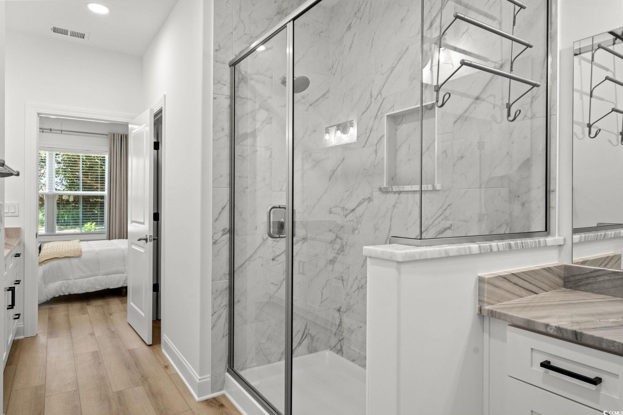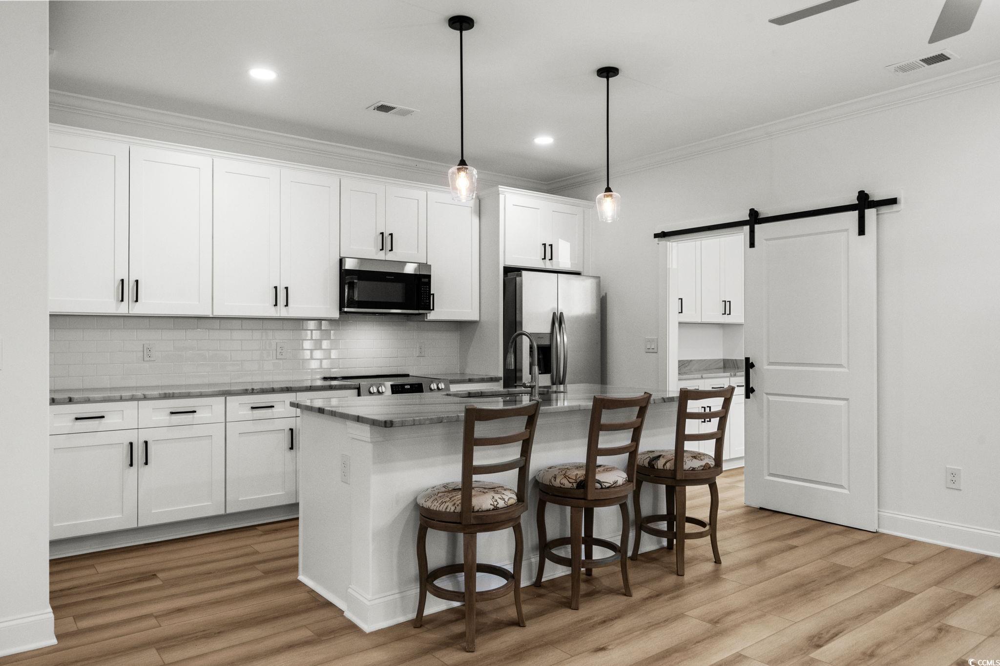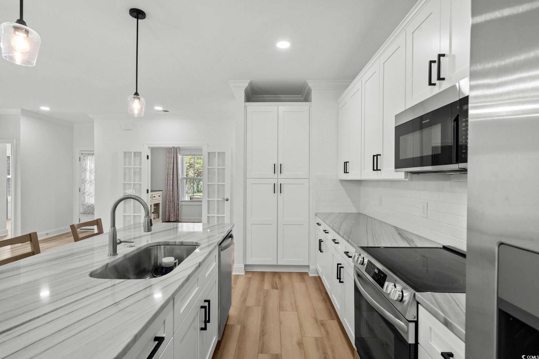 Welcome to this never-occupied, move-in ready villa offering modern comfort and thoughtful details—all on the first floor. Featuring 3 bedrooms, including a primary suite with a walk-in closet and private en suite bath with double sinks, this home combines style and convenience. You’ll love the LVP flooring throughout, ceiling fans in every room, and a modern remote-control fireplace that adds warmth and character to the living space. The kitchen boasts all-new stainless steel appliances, while the versatile Carolina Room is perfect for a cozy den, office, dining room or sunlit sitting area. (Some different options are shown in photos) This home also includes elegant draperies and 2 inch blinds that convey, giving every room a polished and finished look. A spacious 2-car garage with pull-down attic stairs provides plenty of storage, and the community amenities include a clubhouse and sparkling outdoor pool. *Master Bedroom furniture, Carolina Room chairs, dining room set, and Kitchen bar stools may be included with appropriate offer. Ideally located near shopping, dining, medical facilities, and just a short drive to the beach, this condo offers the perfect combination of comfort, convenience, and coastal living. **HOA fee includes: Exterior insurance, Water/Sewer, Trash/Garbage collection, Cable TV & Internet, Exterior Pressure Washing, Pest Control, Landscaping, Pool & Clubhouse Maintenance, and Annual Dryer Vent Cleaning. Motivated Sellers!