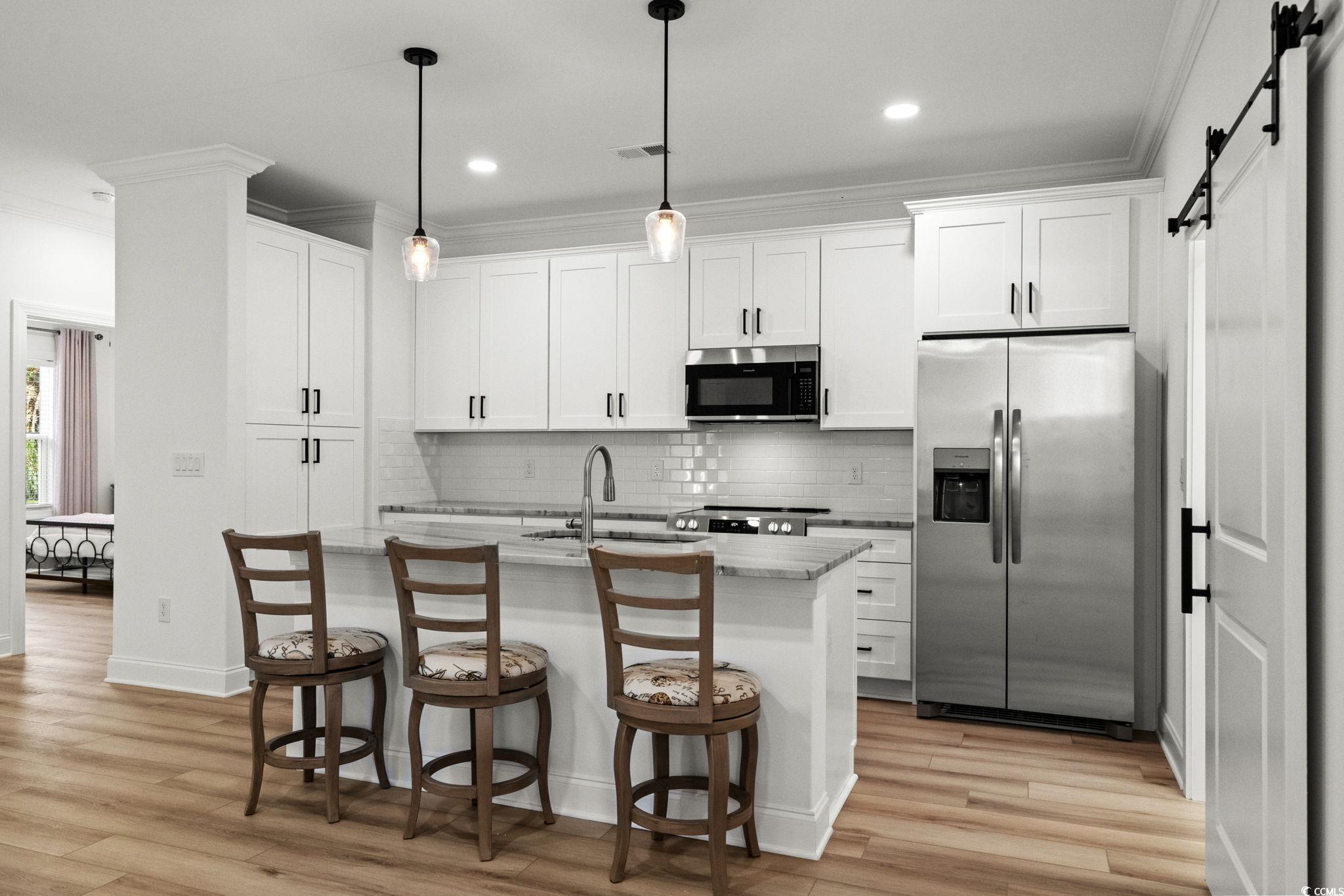 Welcome to this never-occupied, move-in ready villa offering modern comfort and thoughtful details—all on the first floor. Featuring 3 bedrooms, including a primary suite with a walk-in closet and private en suite bath with double sinks, this home combines style and convenience. You’ll love the LVP flooring throughout, ceiling fans in every room, and a modern remote-control fireplace that adds warmth and character to the living space. The kitchen boasts all-new stainless steel appliances, while the versatile Carolina Room is perfect for a cozy den, office, dining room or sunlit sitting area. (Some different options are shown in photos) This home also includes elegant draperies and 2 inch blinds that convey, giving every room a polished and finished look. A spacious 2-car garage with pull-down attic stairs provides plenty of storage, and the community amenities include a clubhouse and sparkling outdoor pool. *Master Bedroom furniture, Carolina Room chairs, dining room set, and Kitchen bar stools may be included with appropriate offer. Ideally located near shopping, dining, medical facilities, and just a short drive to the beach, this condo offers the perfect combination of comfort, convenience, and coastal living. **HOA fee includes: Exterior insurance, Water/Sewer, Trash/Garbage collection, Cable TV & Internet, Exterior Pressure Washing, Pest Control, Landscaping, Pool & Clubhouse Maintenance, and Annual Dryer Vent Cleaning. BROKER'S OPEN HOUSE - Saturday, 11/22 11am-1pm Sellers are motivated! Plan now to stop by for coffee & donuts - buyers are also welcome!
