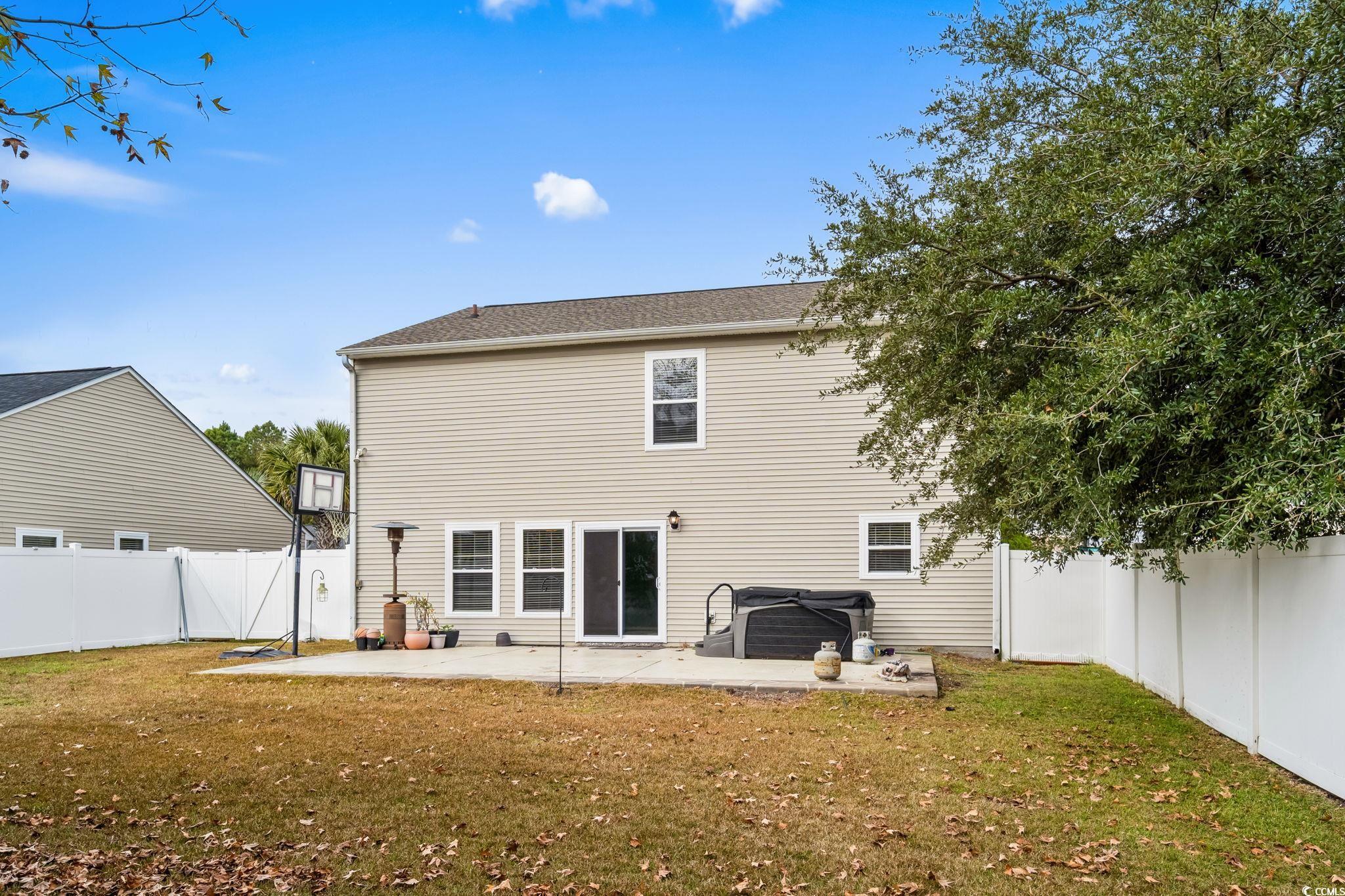 Welcome to 127 Weeping Willow Drive. A great home tucked inside the highly desirable Belle Grove neighborhood in Carolina Forest. This charming 3-bed, 2 1/2-bath property offers the perfect blend of comfort, privacy, and convenience, just minutes from shopping, dining, medical facilities, and Myrtle Beach’s world-famous coastline. Step inside to an inviting, open layout with plenty of natural light and functional space for everyday living or entertaining. The kitchen flows seamlessly into the main living area, creating an ideal setup for gatherings, meal prep, or relaxing evenings at home. Upstairs you will find the large primary bedroom with a walk in closet and full primary bathroom. The additional bedrooms are well sized. A large loft area is perfect for an in home theatre room or additional family room. One of this home’s best features sits just beyond the back door. A spacious patio overlooking a large, fully fenced-in yard, perfect for pets, kids, and outdoor living year-round. Whether you're enjoying morning coffee, weekend barbecues, or unwinding after a long day, the private hot tub adds the perfect touch of relaxation. Additional highlights include comfortable bedrooms, well-designed bathrooms, ample storage, and a location that continues to grow in popularity and value. If you’ve been searching for a move-in ready home with outdoor perks in a top Myrtle Beach community, this one should be at the top of your list. Schedule your showing today!