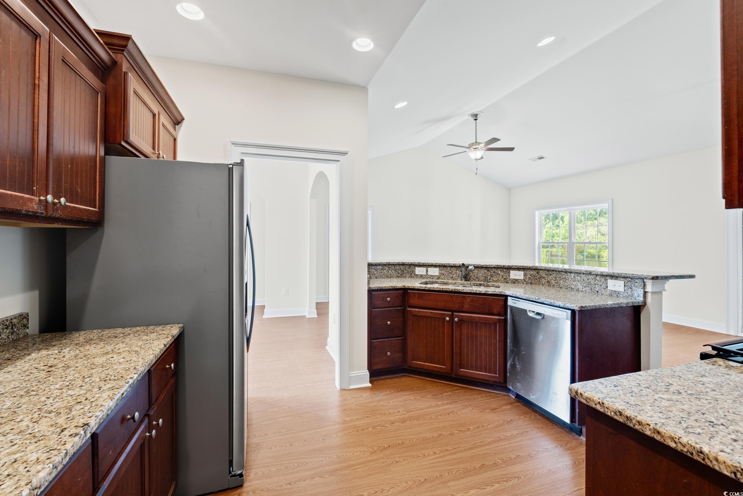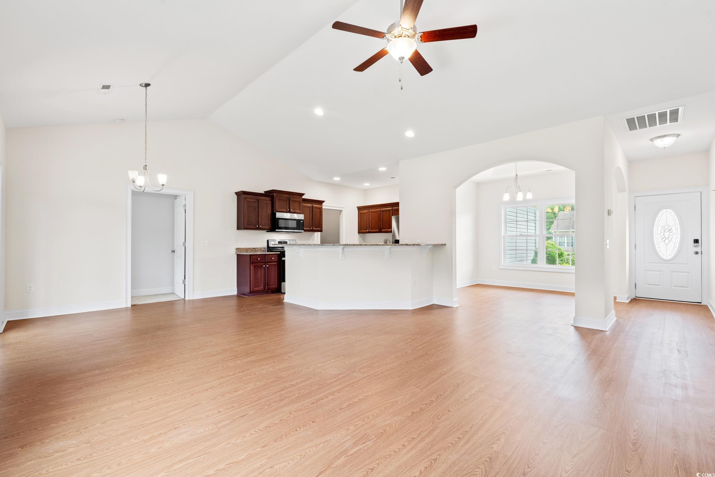Welcome to 128 Barons Bluff Drive, a beautifully maintained home in the quiet and welcoming community of Barons Bluff. This charming property combines modern features with timeless appeal, making it an excellent choice for anyone seeking comfort, convenience, and space. From the moment you arrive, you’ll notice the home’s inviting curb appeal and well-landscaped yard. Step inside to find a bright, open floor plan designed for easy living. The spacious living room flows seamlessly into a well-appointed kitchen featuring granite countertops, stainless steel appliances, a breakfast bar, and plenty of cabinet space—perfect for both casual meals and entertaining. The primary suite provides a private retreat with a walk-in closet and an en-suite bathroom complete with dual sinks, a soaking tub, and a separate shower. Additional bedrooms are generously sized, offering flexibility for family, guests, or even a home office. Out back, you’ll enjoy a screened in porch overlooking the large yard and beautiful pond, a perfect setting for morning coffee, weekend barbecues, or simply unwinding in a peaceful setting. New carpet, appliances and paint recently completed. Located just minutes from historic downtown Conway, you’re close to charming shops, local dining, and the scenic Riverwalk. With easy access to major highways, the beaches, golf courses, and attractions of Myrtle Beach are just a short drive away. 128 Barons Bluff Drive isn’t just a house—it’s a lifestyle. Come see why this home is the perfect blend of comfort, location, and value!