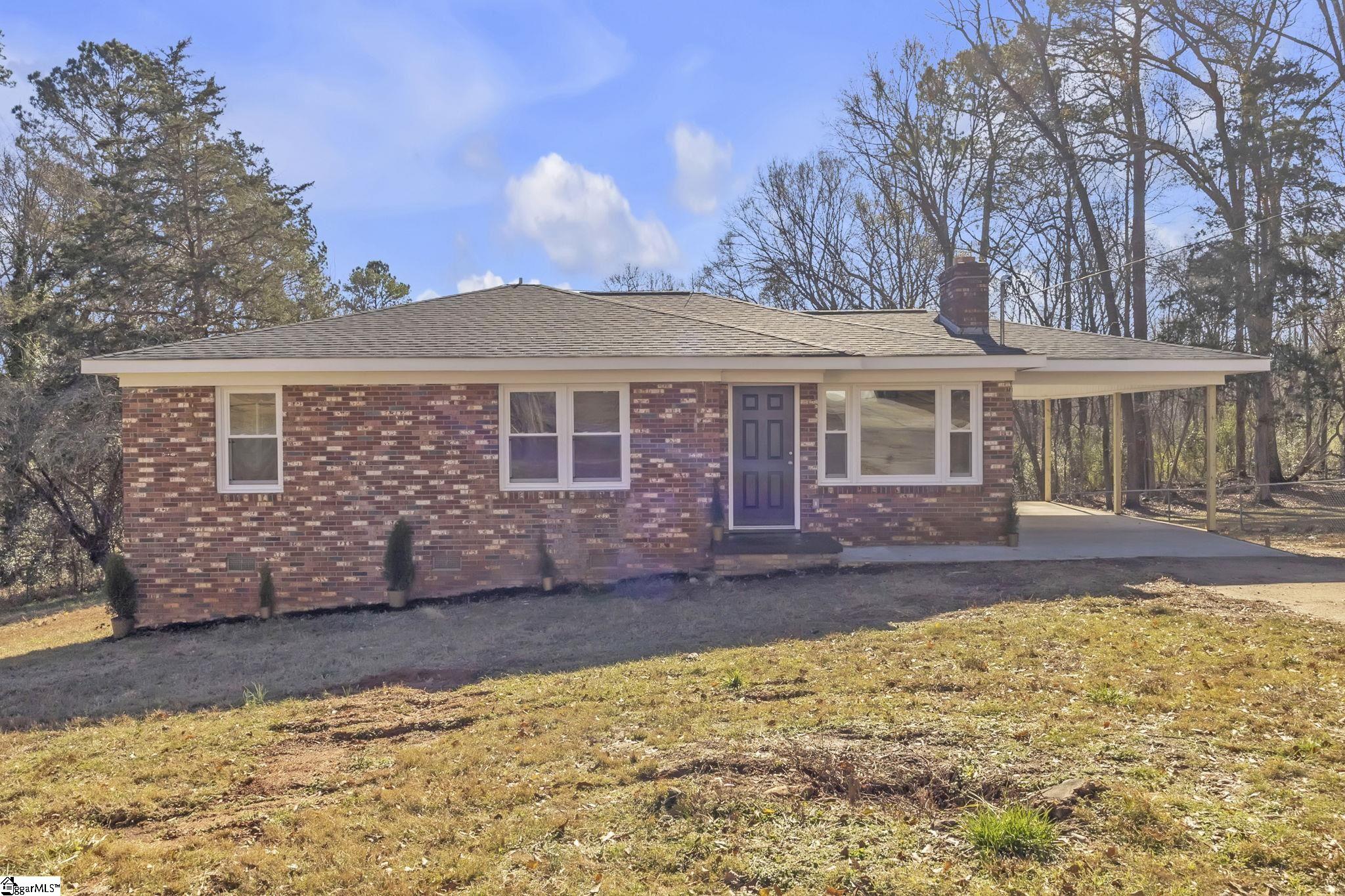 Fully renovated brick home—move-in ready and packed with modern updates in the heart of Laurens, SC. This 3-bedroom, 1.5-bath residence has been completely renovated from top to bottom, offering a clean, updated feel while maintaining classic charm. The kitchen has been refreshed with white cabinetry, granite countertops, stainless steel appliances, and updated fixtures, opening naturally into the main living area for easy everyday living. New flooring, fresh neutral paint, updated lighting, and renovated bathrooms create a cohesive interior throughout. The living room features a fireplace that adds warmth and character, while each bedroom offers comfortable space and natural light. The exterior showcases timeless brick construction, a covered carport, and a gently sloping lot with mature trees. Conveniently located near local shopping, schools, and major roadways, this home is truly move-in ready.