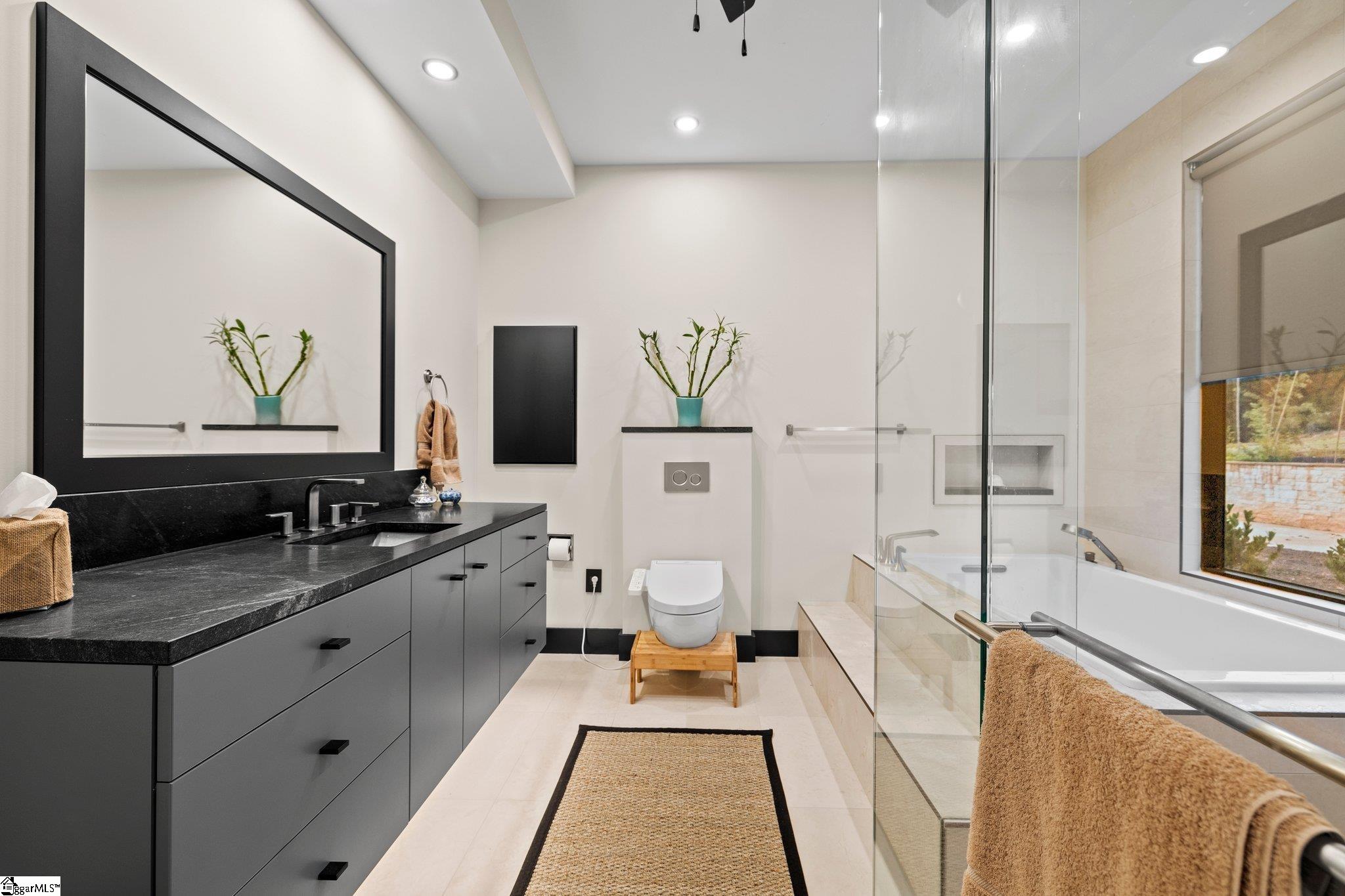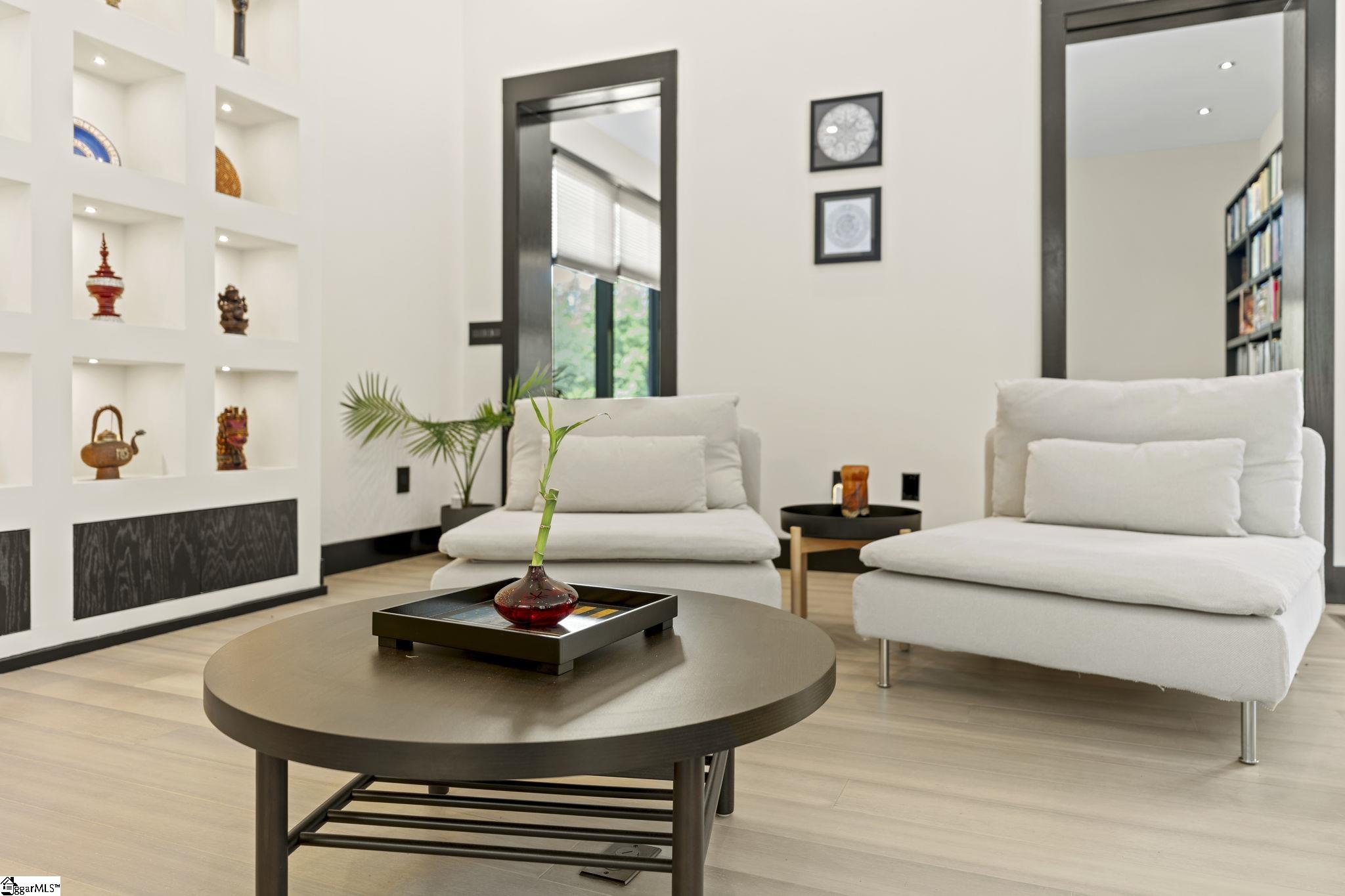 Welcome to 128 Sanctuary Lane, an extraordinary custom-designed residence nestled within the prestigious Sanctuary of Greenville in Taylors, South Carolina. This architecturally crafted, one-of-a-kind modern home, completed in 2023, blends refined luxury with natural serenity across 4,088 square feet of thoughtfully designed living space. The main residence features four bedrooms and four and a half bathrooms, complemented by a beautifully finished one-bedroom, one-bath detached guest house—perfect for hosting guests, creating a private retreat, or offering as an Airbnb-ready income opportunity. Positioned on a meticulously landscaped 1.08-acre lot, the home is surrounded by mature trees and tranquil gardens. A peaceful walking path winds through the wooded portion of the property, leading to a natural stream tucked away for quiet reflection. The meditative walking path and labyrinth create a serene environment ideal for yoga, mindfulness, or a wellness experience in nature. At the heart of the residence lies a stunning central courtyard with an outdoor fireplace, creating a seamless connection between indoor and outdoor living. Multiple gathering spaces, both inside and out, provide the perfect setting for intimate get-togethers or larger events of up to 50 guests. The collaborative kitchen and outdoor dining area open beautifully through the patio doors, offering a natural flow for entertaining and culinary experiences. The open-concept floor plan is bathed in natural light from expansive picture windows that capture the home’s east-west orientation and full southern exposure. The gourmet kitchen is a showpiece, featuring a massive central island, granite countertops, walk-in pantry, and top-of-the-line stainless steel appliances by Bosch and Electrolux. Elegant fixtures throughout the home include premium selections from Toto, Grohe, and Legrand, ensuring every detail feels elevated and intentional. The patio off the kitchen can easily be screened to create an inviting extension of the kitchen’s sitting area—ideal for relaxed mornings or evening gatherings. The primary suite, located on the main level, serves as a luxurious sanctuary with custom closets and a spa-inspired bath, offering expansive views of the courtyard. A standout feature of the home is the truly unique Japanese tea room—a custom-designed, intimate space that evokes peace, tradition, and elegance. This beautiful tea room can also be converted to extend the main living area or reimagined for multiple uses such as an artist studio, yoga or meditation room, additional family room, study, or creative workspace. Just steps away, a Japanese-style healing and meditation suite awaits, complete with a steam room, sauna, shower, and private bath—designed to restore and rejuvenate both body and mind. The detached guest house mirrors the craftsmanship and finish of the main home and includes its own private bedroom, bathroom, and entrance. It is fully furnished and thoughtfully designed, ready for guests or use as a short-term rental or AirBnb. Every inch of this residence has been curated with attention to detail—from custom closets and built-in shelving to wall art niches and abundant storage solutions. Flooring throughout the home includes warm bamboo wood, wool berber carpet, and natural slate, adding texture and timeless character. Outside, the grounds are a sanctuary in their own right. Professionally landscaped with a Japanese rock garden, meditative labyrinth, and soothing water features in both the front and back yards, the setting feels grounded and inspirational. Solar and electric landscape lighting enhance the ambiance, while a designer garage door and underground irrigation system add function to the beauty. Whether you envision hosting family retreats or creative workshops, this residence offers flexibility to accommodate up to ten guests with fully equipped spa facilities, This fully furnished home, includes all designer-selected furniture and artwork.