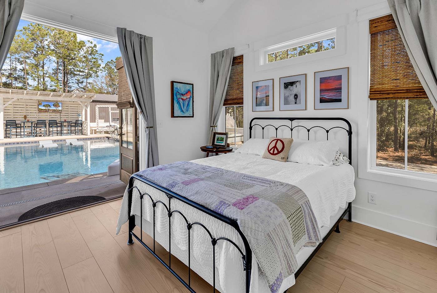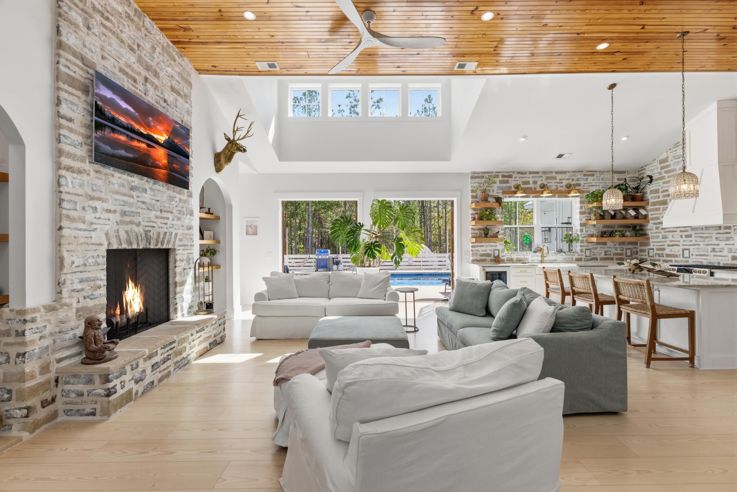 This custom-built home is truly everything today’s buyer dreams of. As you arrive via the circular driveway, framed by a beautifully designed landscape island, you’re welcomed by an expansive ranch-style residence and a sprawling front porch that immediately invites you in. A grand front door offers a hint of the exceptional design found throughout. Inside, the home is filled with natural light and an airy feel created by soaring 13-foot ceilings that rise to 17 feet highlighted by four window dormers in the front and back of the home. Thoughtfully chosen premium commercial grade LVP flooring runs throughout the home and is truly dog proof. The open-concept floor plan seamlessly connects the living room, kitchen, and dining area—perfect for both everyday living and entertaining. A desirable split-bedroom layout places bedrooms on opposite ends of the home, providing privacy for owners, family, and guests alike. Vaulted ceilings in a farmhouse style are found in three out of the four bedrooms creating a premium feel for the owners as well as their guests. The wow factor is undeniable as you step into the main living space, highlighted by custom stone kitchen walls and a stunning wood-burning fireplace. The kitchen is a showpiece, featuring maple cabinetry and open shelving, Quartzite countertops, a vented range hood, Café Edition appliances, a cast-iron farmhouse sink, and exquisite brass hardware, fixtures, and doorknobs throughout. The bathrooms are equally impressive, offering luxurious finishes that feel straight out of a design magazine. Step outside and you’ll feel as though you’ve arrived at a private resort. The backyard is a true sanctuary, complete with a 30’ x 18’ saltwater pool with a large tanning ledge and a covered cabana with TV and electricity for mixing your favorite blended drink. Ideal for relaxing or entertaining. Just beyond the pool area is a fenced dog run with commercial-grade turf for easy maintenance. Farther back, multiple raised garden beds make gardening both enjoyable and efficient, all supported by a 12-zone irrigation system. The backyard offers exceptional privacy—you won’t see another soul while enjoying your outdoor oasis (front-porch socializing with neighbors is optional!). Car enthusiasts and RV owners alike will appreciate the impressive 30’ x 30’ garage, fully equipped with electric service and full RV hookups, including a dump station. Prefer extra income or guest space? The garage offers excellent potential for conversion into an Additional Dwelling Unit (ADU). With no HOA, ADUs are allowed—adding flexibility and investment potential. The beach is only a 2.2 mi golf cart ride away. You can also take the golf cart to 5 golf courses! This home offers luxury, privacy, and versatility—without compromise.