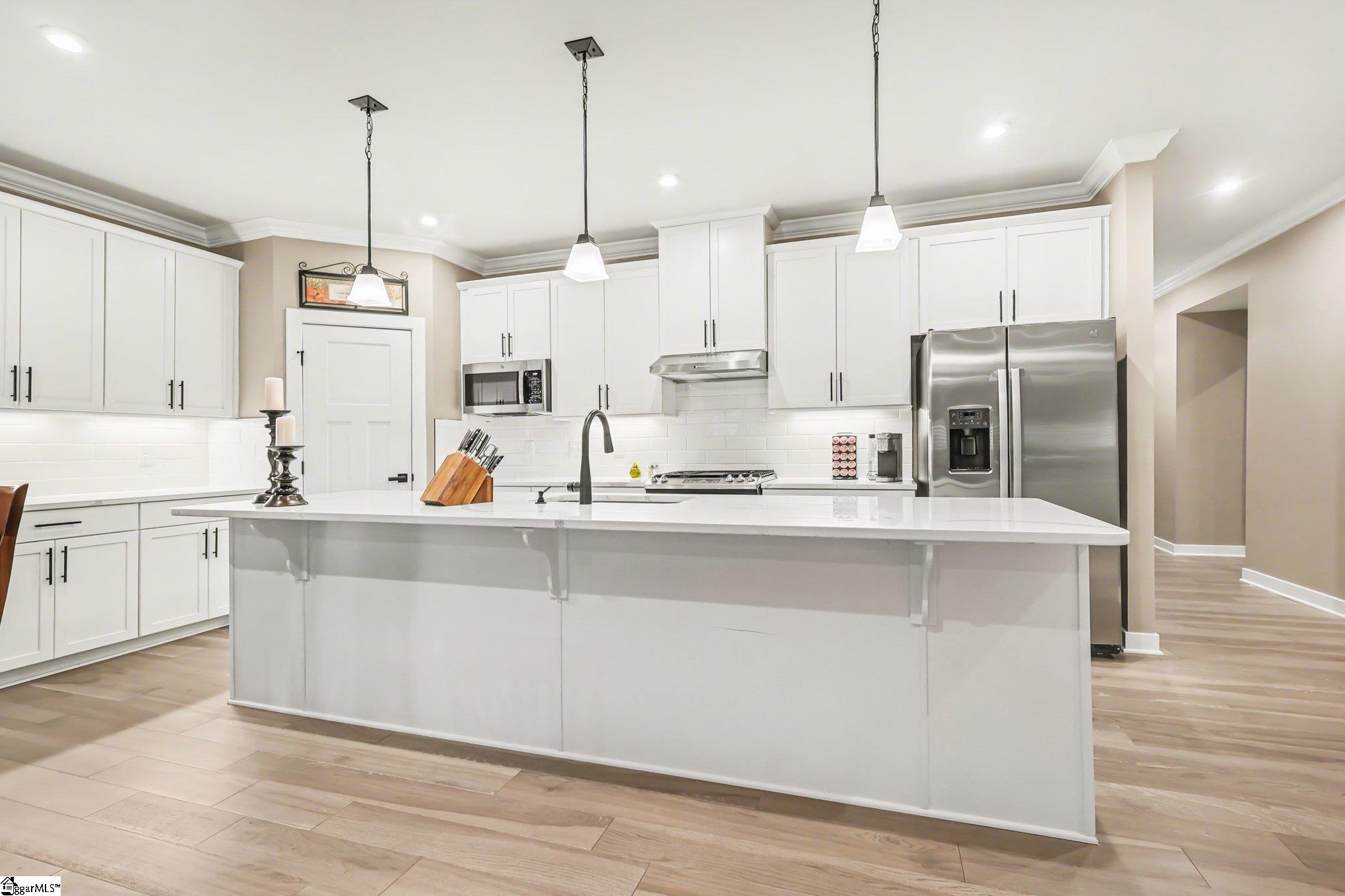 Perfectly positioned between GREENVILLE AND SPARTANBURG COUNTIES, this BETTER-THAN-NEW ONE-LEVEL HOME offers modern style, thoughtful upgrades, and LOW-MAINTENANCE LIVING. Built in 2023, the current owner has enhanced the home with beautiful finishes, including CROWN MOLDING THROUGHOUT THE MAIN LIVING AREA, CUSTOM PLANTATION SHUTTERS IN THE LIVING ROOM, and MOTORIZED BLINDS LEADING TO THE SCREENED PORCH. A newly installed PRIVACY FENCE creates a comfortable outdoor space perfect for relaxing or entertaining. The SPLIT BEDROOM FLOOR PLAN provides privacy and flexibility, giving everyone their own space. ENGINEERED HARDWOOD FLOORS lead you into the OPEN KITCHEN AND LIVING AREA designed for both everyday living and entertaining. The kitchen shines with QUARTZ COUNTERTOPS, a LARGE QUARTZ WORK ISLAND WITH BREAKFAST BAR, UNDER CABINET LIGHTING, and a TILED BACKSPLASH. Additional features include a WALK-IN PANTRY, GAS COOKTOP RANGE, and STAINLESS STEEL APPLIANCES, creating a stylish and functional space for cooking and gathering. The PRIMARY SUITE offers a relaxing retreat with a TREY CEILING, DUAL VANITIES, WALK-IN CLOSET, and a SPACIOUS SHOWER. Enjoy the SCREENED PORCH overlooking the fenced backyard. Best of all, this home offers TRUE LOW-MAINTENANCE LIVING. THE HOMEOWNERS ASSOCIATION TAKES CARE OF THE YARD WORK, allowing you to enjoy your home and community without the hassle of lawn maintenance. With its ONE-LEVEL LIVING, OPEN FLOOR PLAN, QUARTZ KITCHEN, SCREENED PORCH, and PRIME LOCATION BETWEEN GREENVILLE AND SPARTANBURG, this MOVE-IN READY HOME offers the lifestyle and convenience today’s buyers are searching for.