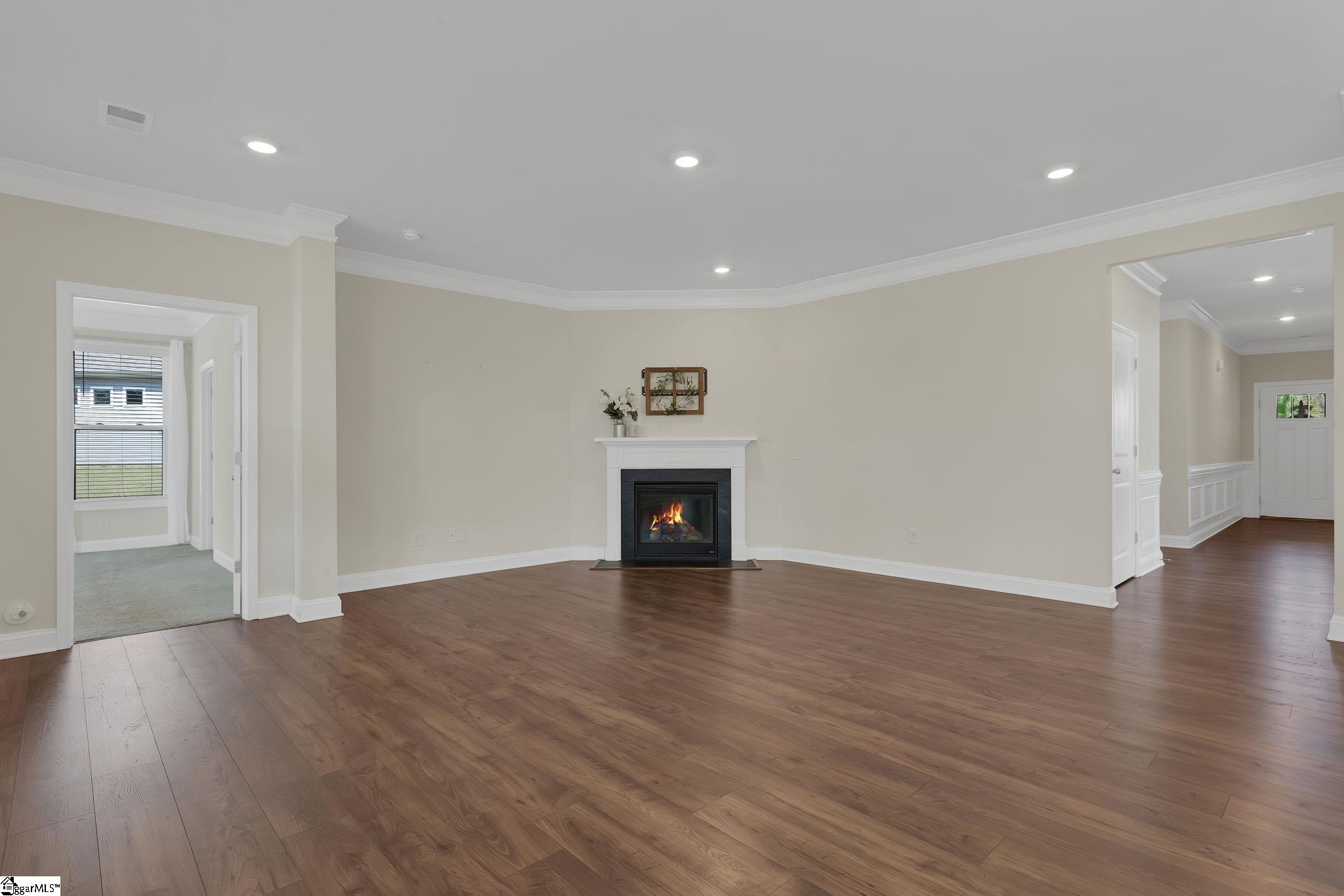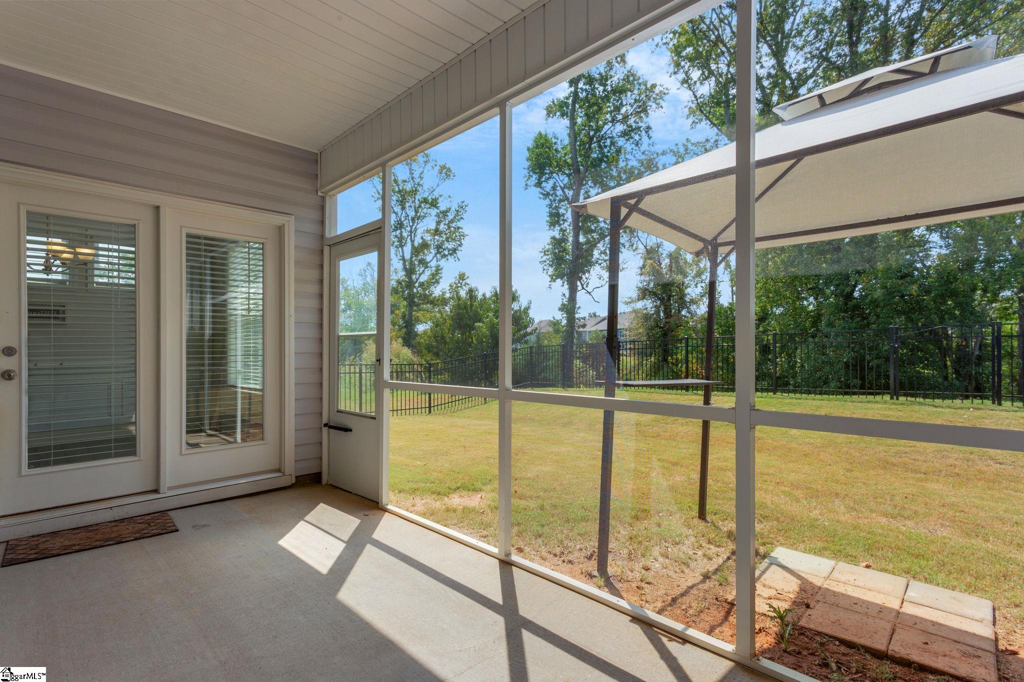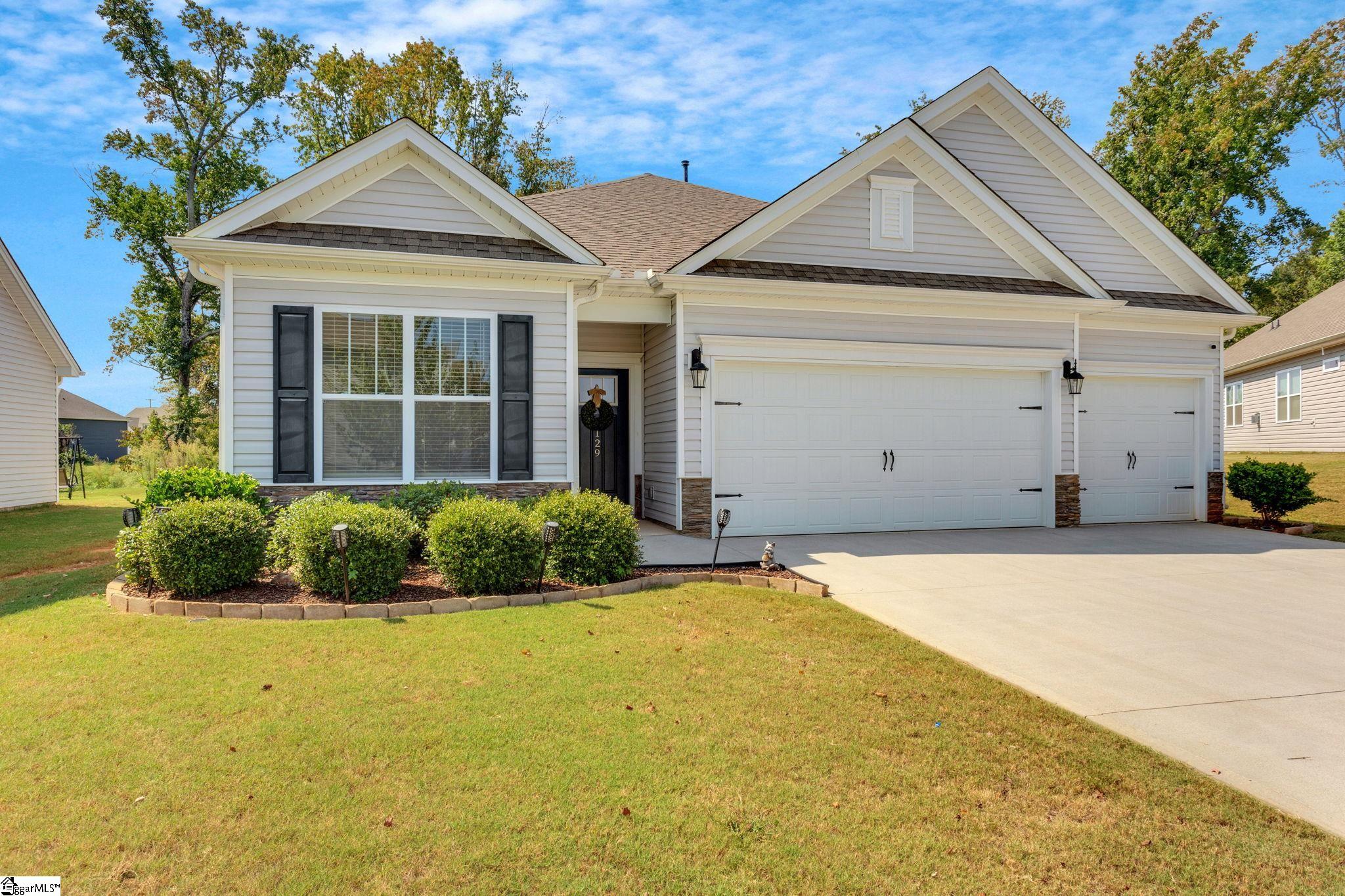 Welcome to 129 Yellow Fox Road! This charming single-level home offers 3 spacious bedrooms and 3 full bathrooms, thoughtfully designed with a split floor plan for comfort and privacy. Perfectly situated in a sought-after neighborhood, you’ll love being just a short walk to award-winning schools and minutes from Pelham Road, downtown Greer, GSP Airport, and I-85. Step inside to find luxury plank flooring stretching across the main living areas, combining style with easy maintenance. Off the foyer, the first guest bedroom is paired with a full bath featuring ceramic tile flooring and quartz countertops. Down the hall, a versatile flex room with French doors provides the perfect spot for a home office, formal dining, playroom, or sitting room. Just across the hall you will find the spacious walk in laundry room. And next to the laundry room is a private guest suite complete with full bath with quartz countertops and tile floors. The heart of the home is the open-concept living room and kitchen. The chef’s kitchen boasts stainless steel appliances, a gas range, walk-in pantry, quartz counters, and an eat-in island ideal for casual meals. The inviting living room centers around a cozy gas log fireplace, while the adjoining dining area is brightened by windows, natural light, and decorative wainscoting. Tucked off the living area, the private primary suite offers a peaceful retreat with abundant light. The spa-like primary bath features dual sinks, a soaking garden tub, a tiled shower, quartz countertops, and a walk-in closet. Enjoy the outdoors year-round on the screened porch overlooking a wooded backdrop, perfect for morning coffee or evening relaxation. The fenced backyard makes it easy for pets or play, while the 3-car garage and attic storage provide all the extra space you need for vehicles, golf carts, or holiday décor. The location is perfect being just minutes from 85, GSP, Pelham Road and Downtown Greer. This home is move-in ready and waiting for you to settle in before the holidays!