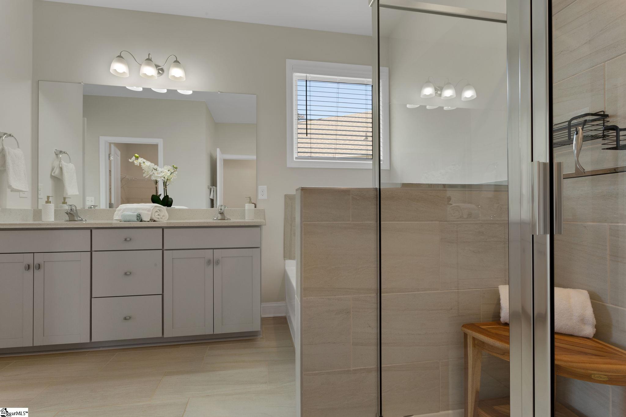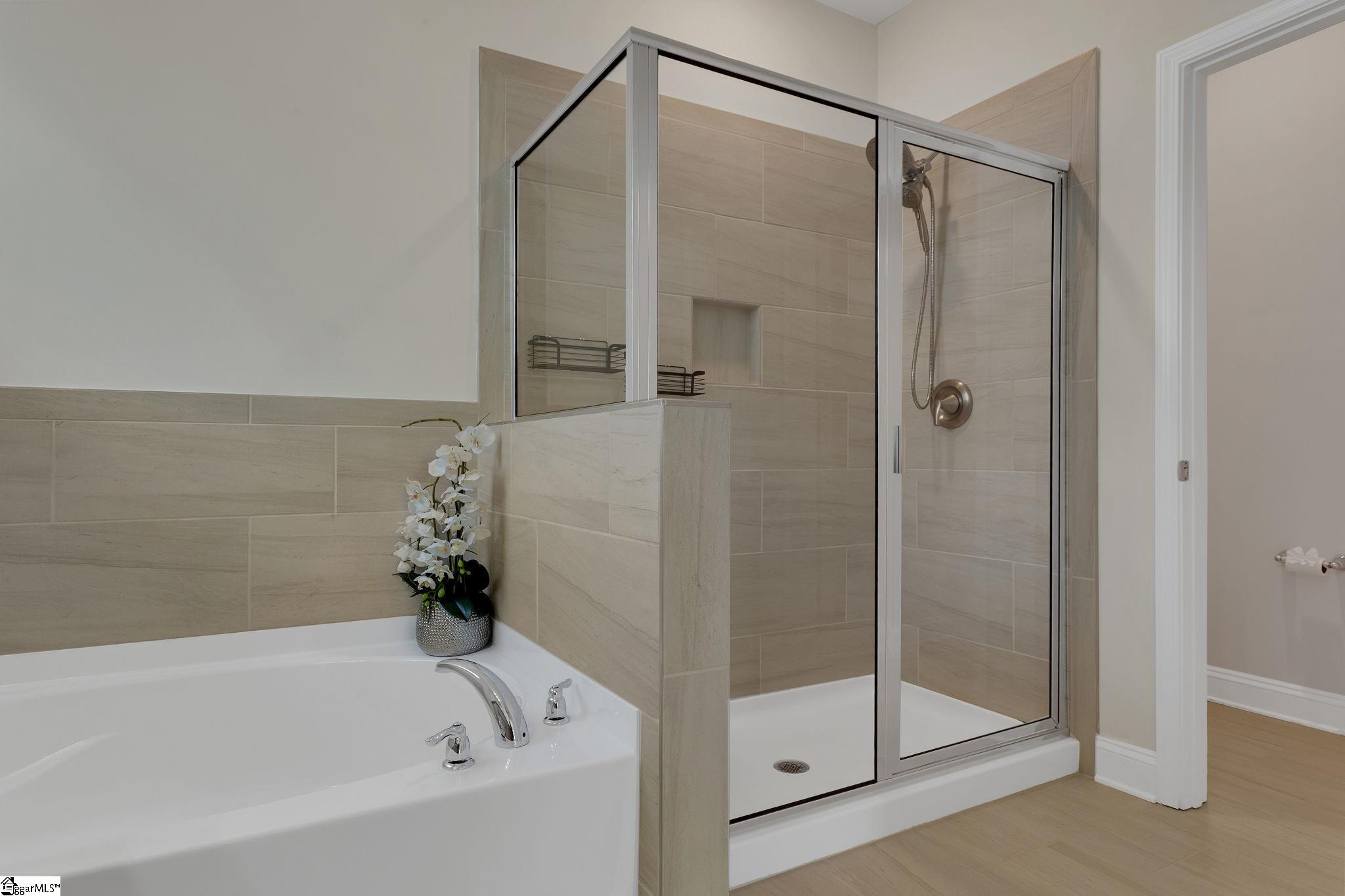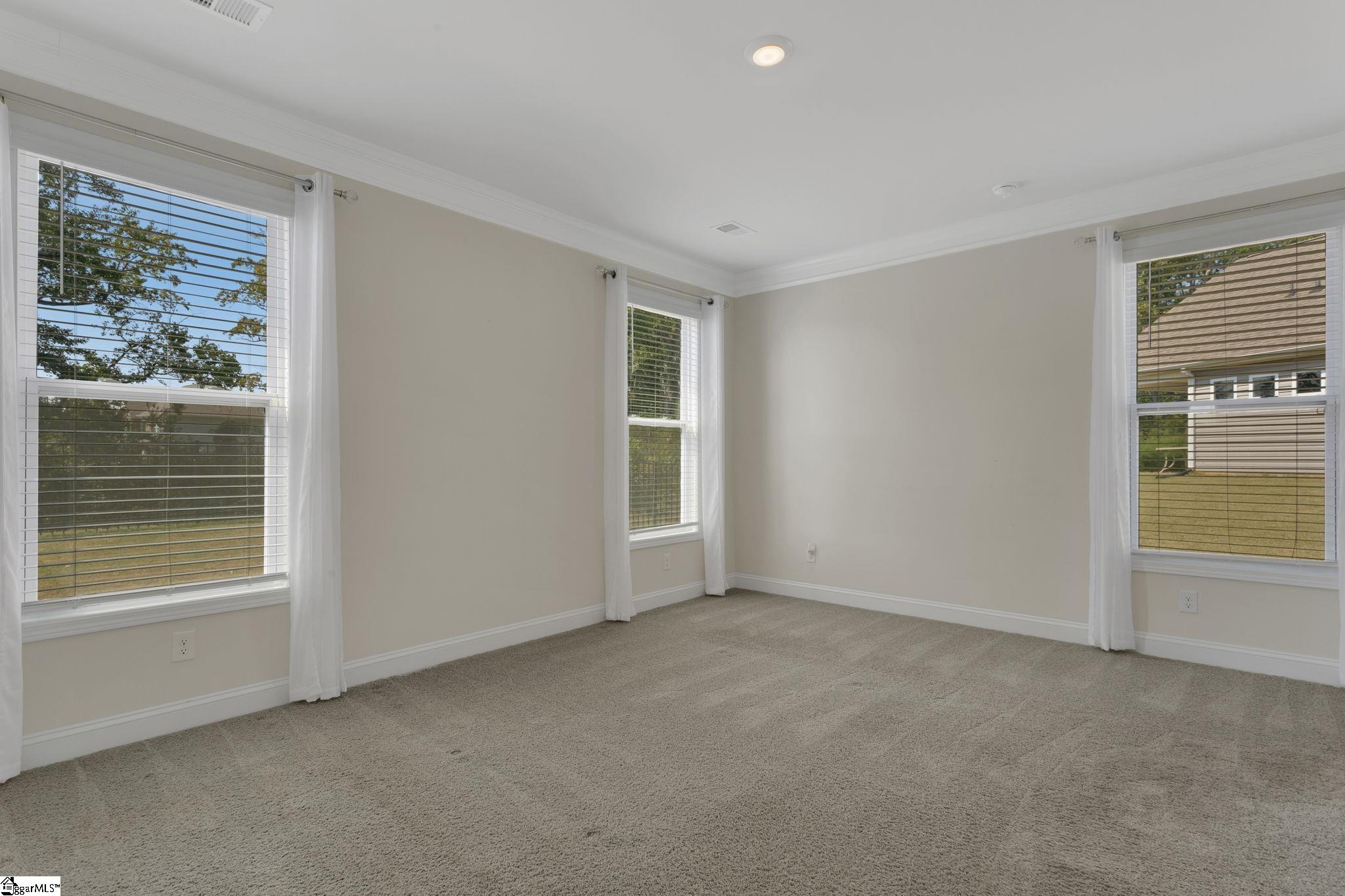 Welcome to 129 Yellow Fox Road! This charming single-level home offers 3 spacious bedrooms and 3 full bathrooms, thoughtfully designed with a split floor plan for comfort and privacy. Perfectly situated in a sought-after neighborhood, you’ll love being just a short walk to award-winning schools and minutes from Pelham Road, downtown Greer, GSP Airport, and I-85. Step inside to find luxury plank flooring stretching across the main living areas, combining style with easy maintenance. Off the foyer, the first guest bedroom is paired with a full bath featuring ceramic tile flooring and quartz countertops. Down the hall, a versatile flex room with French doors provides the perfect spot for a home office, formal dining, playroom, or sitting room. Just across the hall you will find the spacious walk in laundry room. And next to the laundry room is a private guest suite complete with full bath with quartz countertops and tile floors. The heart of the home is the open-concept living room and kitchen. The chef’s kitchen boasts stainless steel appliances, a gas range, walk-in pantry, quartz counters, and an eat-in island ideal for casual meals. The inviting living room centers around a cozy gas log fireplace, while the adjoining dining area is brightened by windows, natural light, and decorative wainscoting. Tucked off the living area, the private primary suite offers a peaceful retreat with abundant light. The spa-like primary bath features dual sinks, a soaking garden tub, a tiled shower, quartz countertops, and a walk-in closet. Enjoy the outdoors year-round on the screened porch overlooking a wooded backdrop, perfect for morning coffee or evening relaxation. The fenced backyard makes it easy for pets or play, while the 3-car garage and attic storage provide all the extra space you need for vehicles, golf carts, or holiday décor. The location is perfect being just minutes from 85, GSP, Pelham Road and Downtown Greer. This home is move-in ready and waiting for you to settle in before the holidays!