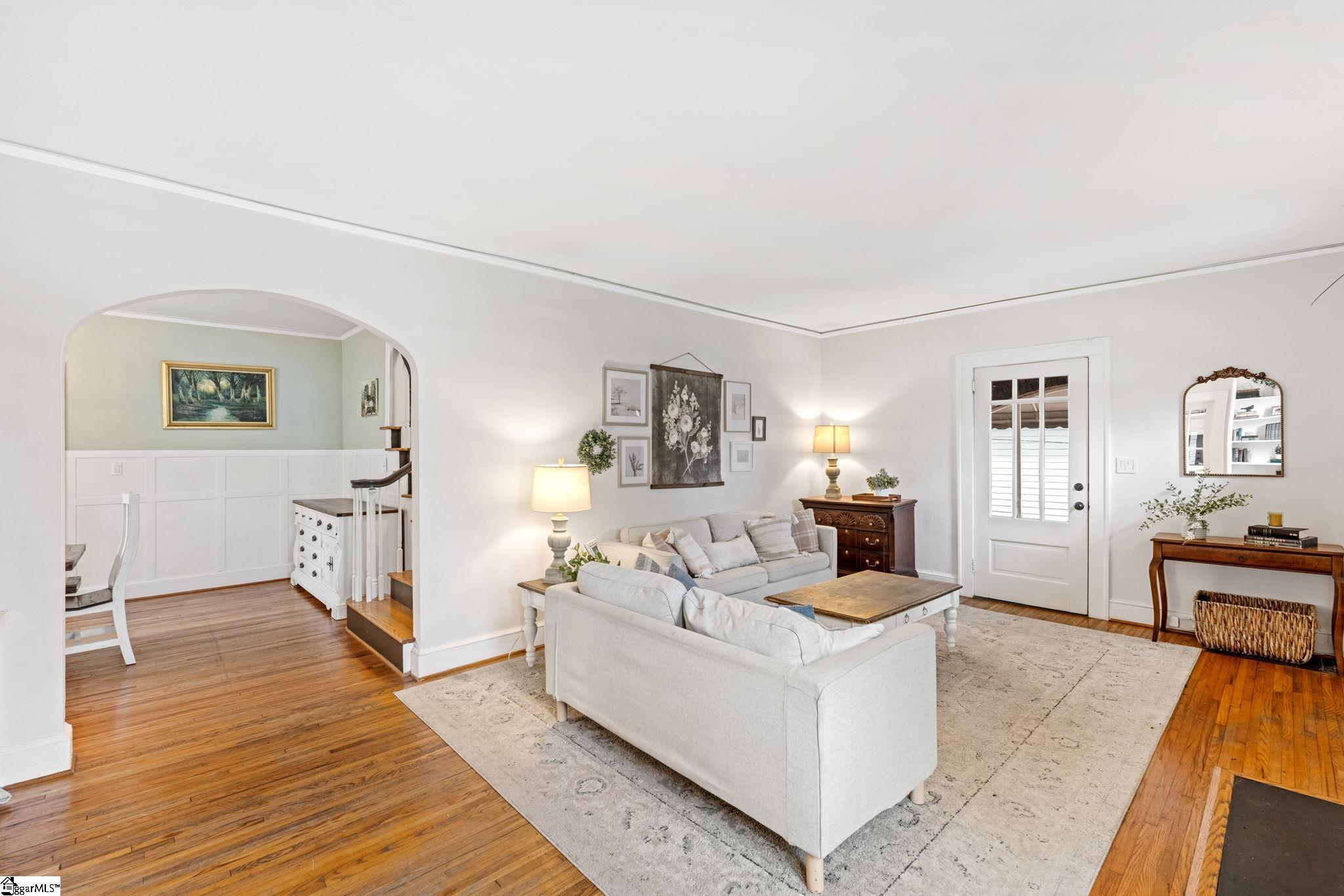 This is the Augusta Street area home you have been waiting for. This primarily brick home is full of character and charm and sits on a lovely, deep lot which provides ample room for play, entertaining or expansion should you desire! With four bedrooms plus an office (or 5 bedrooms) and three full bathrooms, this home is steps to Rockwood Park, zoned for award-winning schools and is situated in an amazing location. You will love the arched doorways which nod to the stunning design and create a warm, welcoming entry. Beautiful hardwood flooring throughout much of the home. Spacious living room and sunroom/den with windows that allow ample natural light. Quaint, screened porch – ideal for relaxation and entertaining. This home also features a formal dining room with gorgeous wainscoting. This kitchen is amazing – large center island, ample cabinetry, gas range and breakfast table area. Additionally on the main level – the primary suite has a walk-in closet and another closet, full bathroom with tiled shower and dual sink vanity. There is an additional bedroom (or office or playroom) and full bathroom on the main level. Upstairs, you will find three bedrooms and a full bathroom – each with wonderful character and include some attic space for storage. Enjoy the great outdoors on this lovely lot! The rear yard is fenced in and provides nice privacy and space for play or expansion. There is a detached shed or workshop – ideal for storage and will convey as is. Wonderful location and home – minutes from amazing shops, dining, Prisma’s Memorial Hospital and downtown Greenville. Schedule your chance to view this home today!