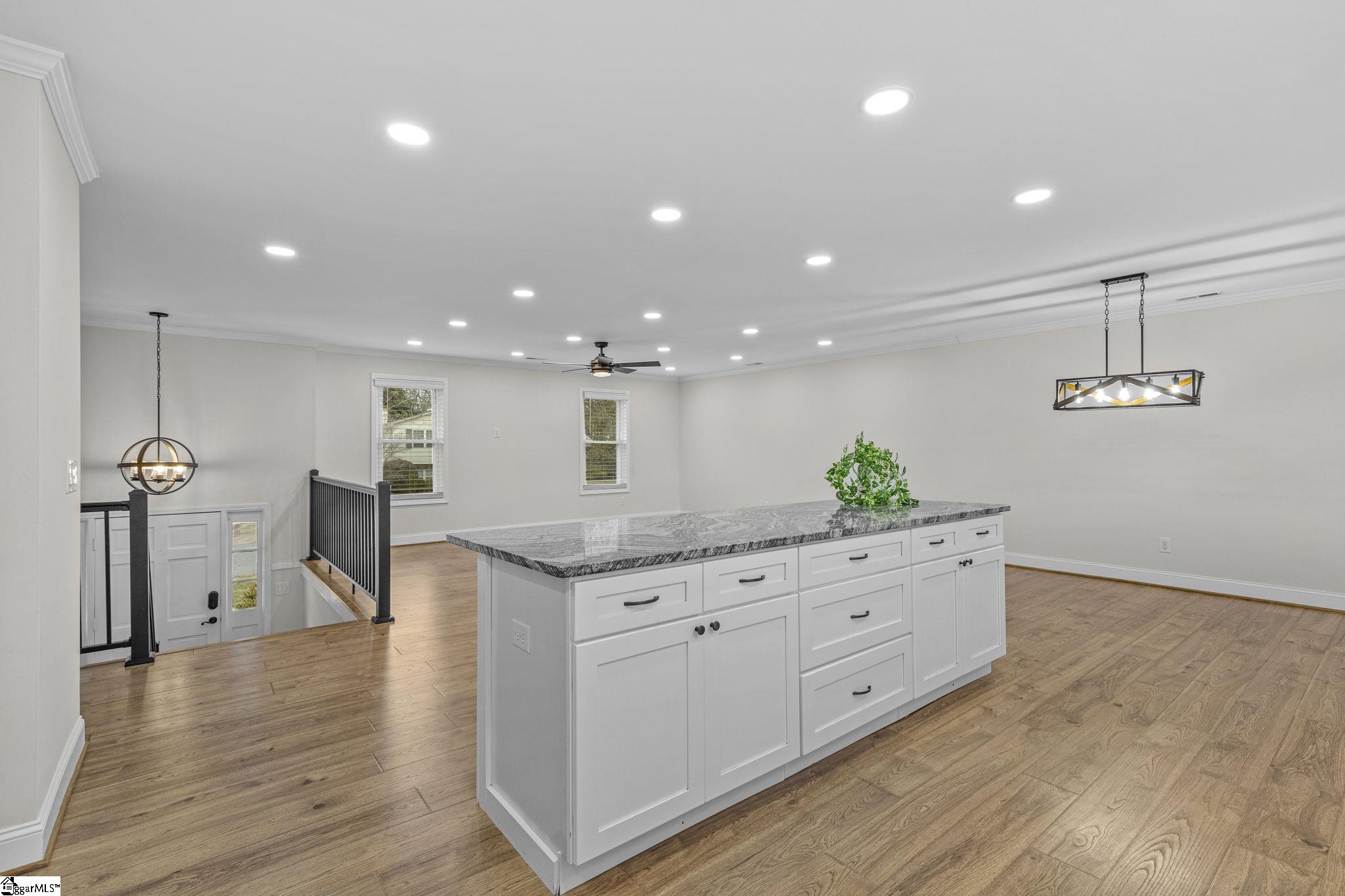 Welcome to this beautifully updated 4 bedroom, 3 bath split-level home located in the sought-after Eastside School District of Taylors, SC. This move-in-ready residence features an open floor plan on the main level and an updated kitchen complete with granite countertops and stainless steel appliances. The second floor offers a tranquil primary suite, two additional bedrooms, and a hall bath, all featuring updated fixtures. The versatile lower level includes a spacious flex room centered around a cozy brick wood-burning fireplace, the fourth bedroom, and a full, updated bathroom—perfect for guests or an in-law suite. Laundry is currently located in the spacious two-car garage but can easily be framed in for a dedicated room. Outdoor living is a delight with a two-tier deck off the kitchen overlooking the large, fenced-in yard, which also includes a storage building. Don't miss this blend of modern style and functionality in a prime location!