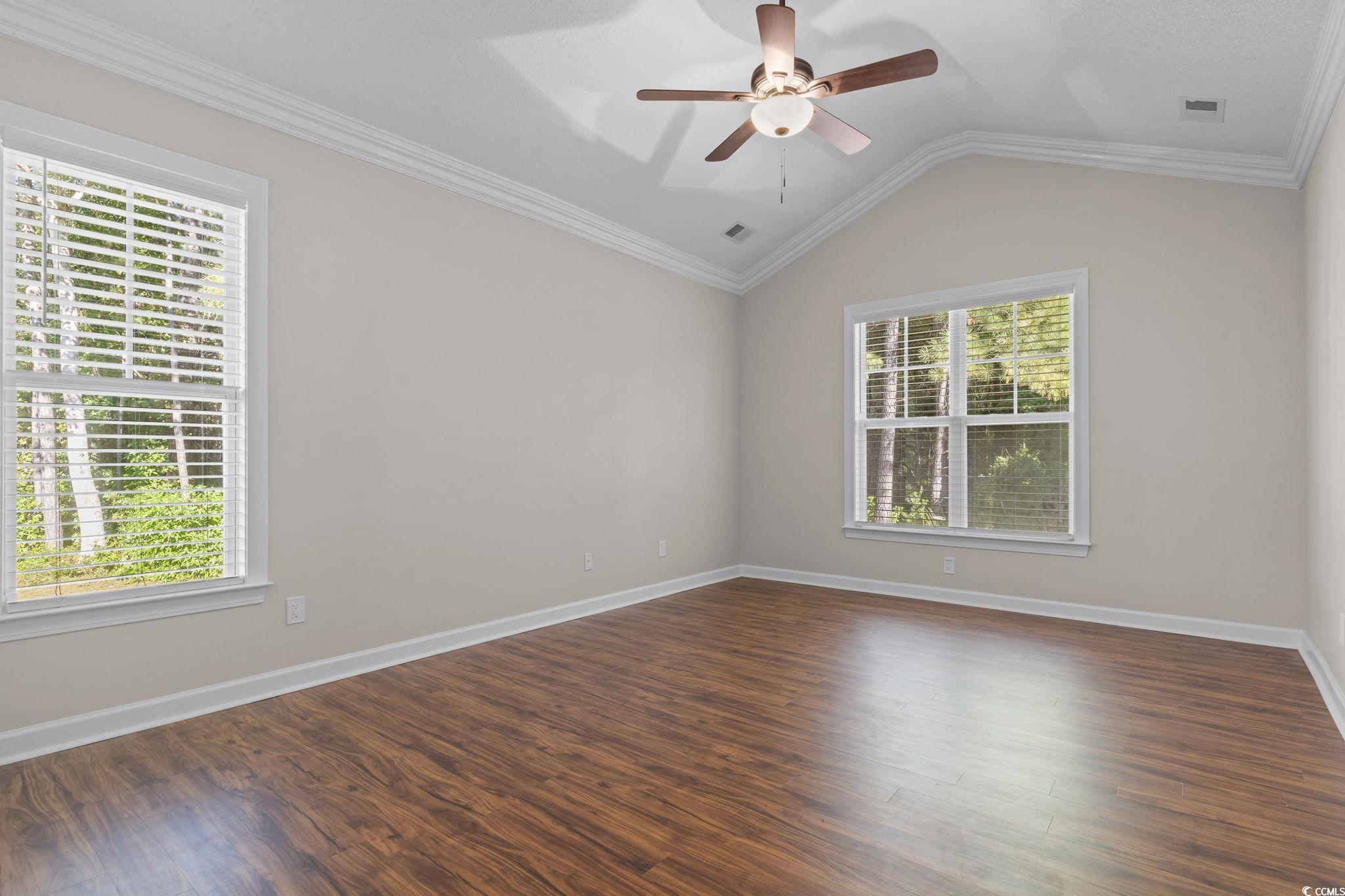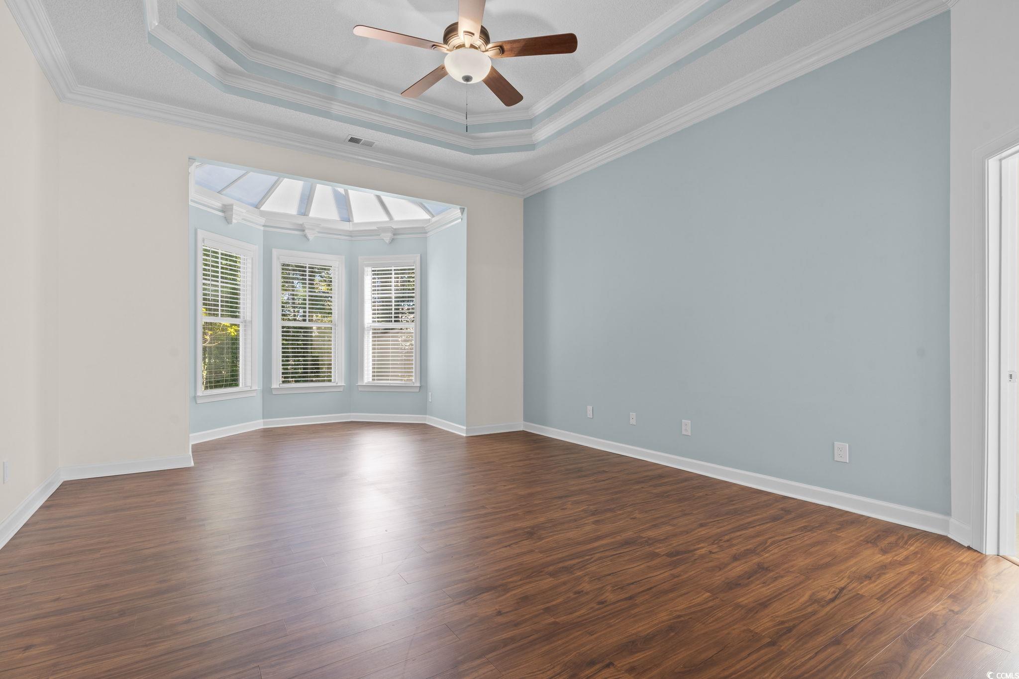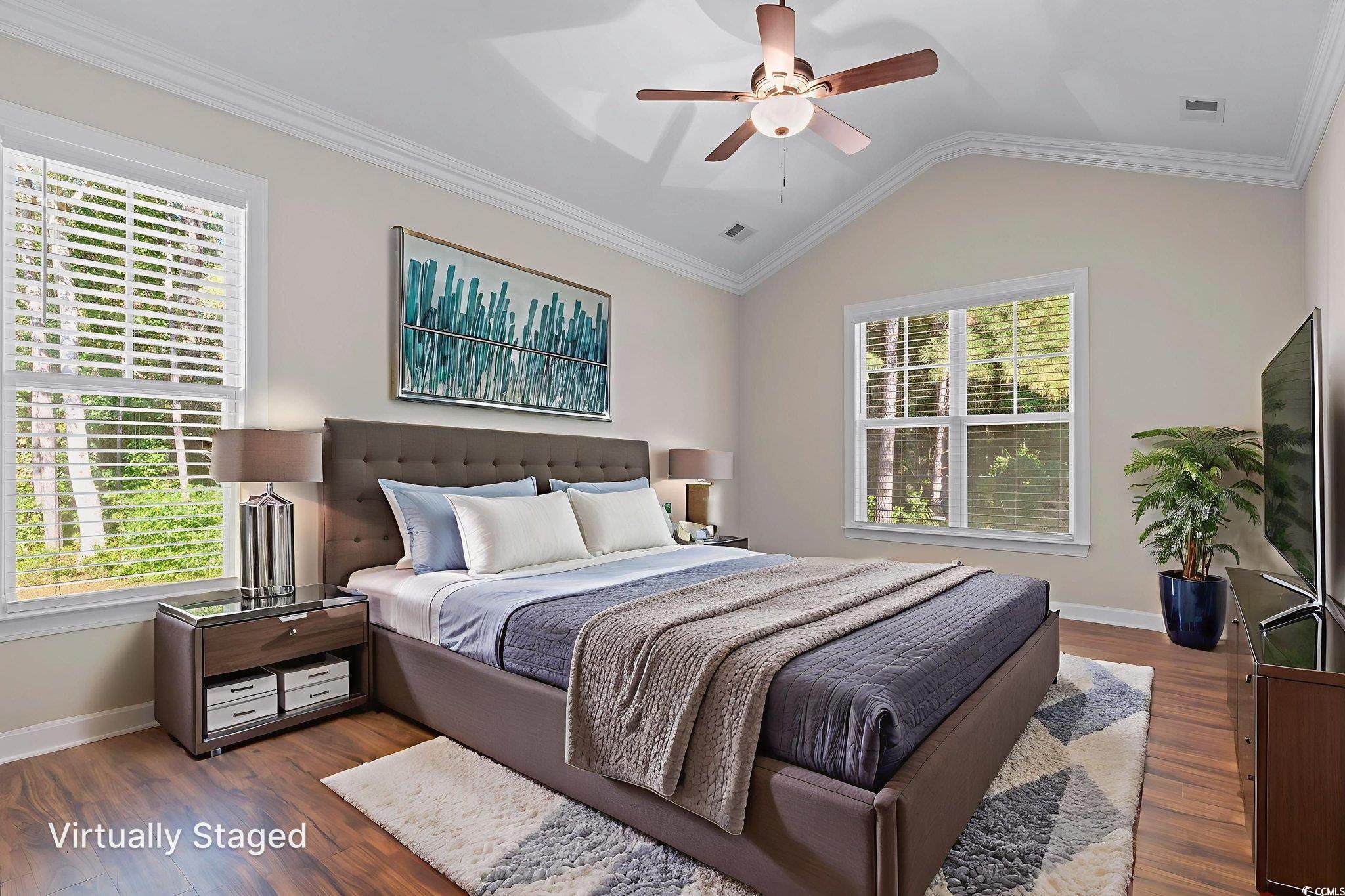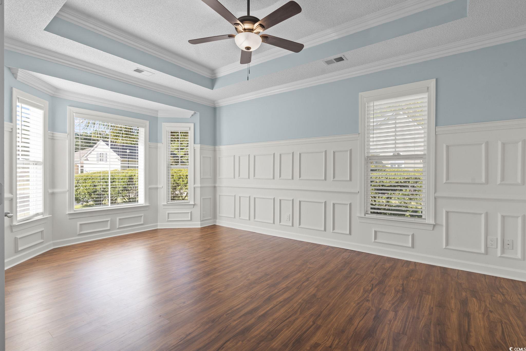Welcome to LinksBrook and this beautifully renovated home. This top-selling Nantucket floorplan, once a model home, sits on a half-acre lot adjacent to wetlands and a preserve. If you need extra room, this home has it: two primary suites, an additional bedroom, a convertible den, a spacious bonus room with closet which can be used as a bedroom, two living areas, formal dining, and a renovated eat-in kitchen. The kitchen highlights quartz countertops, custom made cabinetry, a huge island, with stainless microwave, range, and dishwasher. A quartz-topped area bordering the kitchen offers extra seating. Beautiful Coretec wide plank laminate flooring flows throughout the entire home. The owner's suite boasts two walk-in closets and en-suite bath with two separate vanities, jet tub, tiled shower, and floors. and addition tiled ½ bath is in the hall. The second suite features en-suite tiled bath, tiled tub with shower and a walk-in closet. An additional bedroom, completely tiled hall bath, two linen closets and den complete this wing. The formal dining room, huge living room with gas fireplace flows into the Carolina room, complete with mini-split heating and air system, giving an additional living area. There is also a central vacuuming system throughout the house. Custom crown molding flanks every room. The main HVAC was replaced 3 years ago. An 80-gallon hot water heater was replaced last year. The oversized two car attached garage has a sink for easy clean up. A beautiful, stamped driveway fits an additional four cars. All custom-made hurricane shutters come with this home. A 12 x 35 concrete patio with gas hook-up flanks the back of the home. The in-ground propane tank was replaced two years ago. Beautiful Tennessee river rock landscaping with Curbscape borders are in the bedded areas. The home also contains a 10 zone Irrigation system, which has a separate water meter. The HOA fee includes access to the community pool, tennis and pickle ball courts and a recreation center with a gym. It is just short drive from the beautiful ocean beaches of the area. Plus, it is centrally located to take advantage of the many options for golfing, dining, entertainment, and shopping nearby in Myrtle Beach and surrounding communities.
