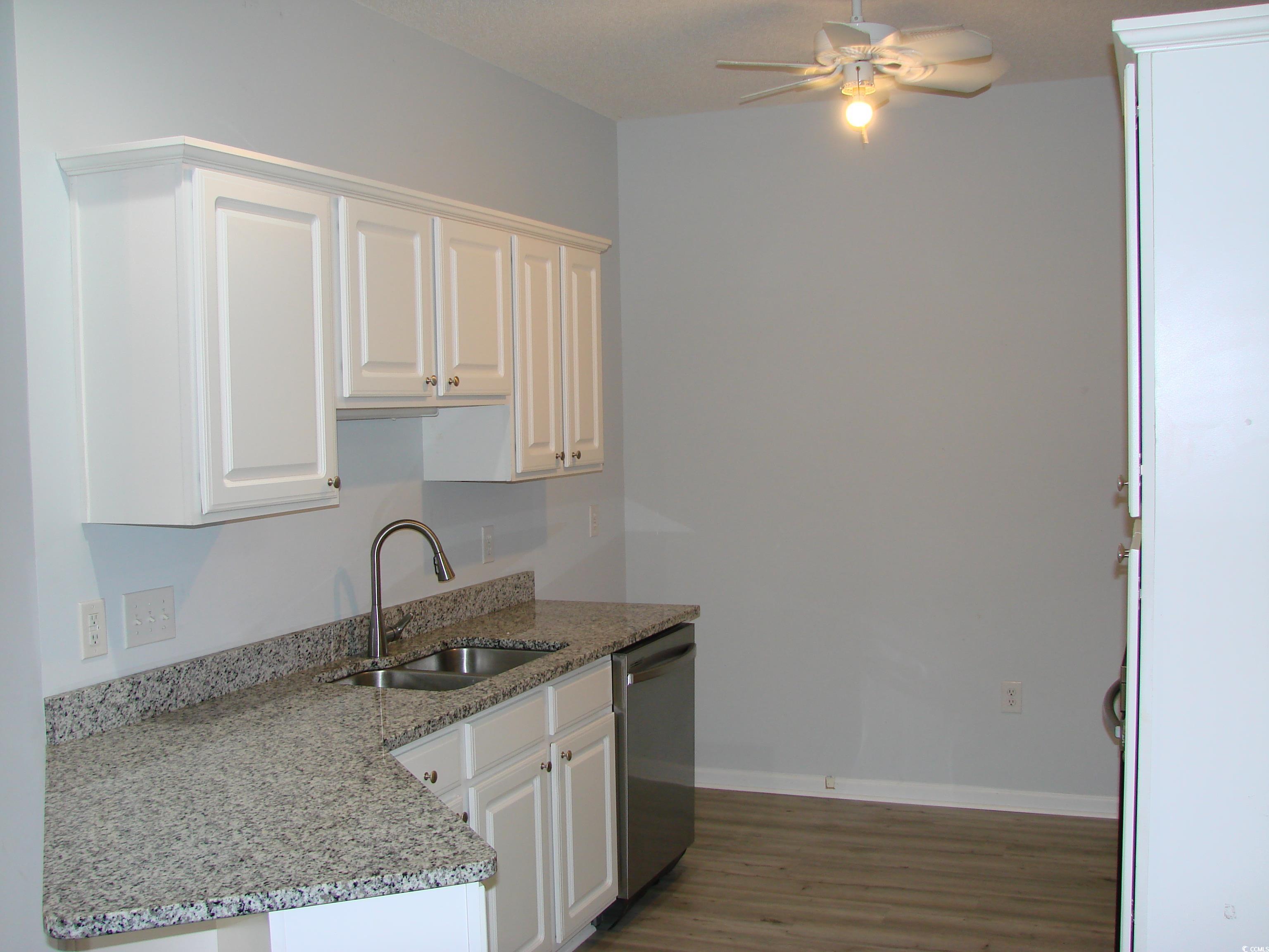 Looking for a tranquil 3BR 2BA condo that is move-in ready and can be used as a primary, secondary or investment? Here it is! This open floor plan was remodeled end of 2023/early 2024 with neutral paint, carpet, LVP flooring and kitchen and bath granite countertops. It's 2nd floor/top floor location overlooks peaceful greenery from your screened porch and no worry about residents making noise from above. As you enter through your foyer, you will find 2 guestrooms on either side. Continue down the hallway to your open kitchen to the dining and living room. Along the back side of the condo, you will find a nice sized master with a walk in closet and private master bath. All rooms have ceiling fans. Great community location, although not on the "beach", you are still within a 15-20 min drive to the beautiful ocean! And, if that's not enough, the community is also 1.4 miles away from the Waccamaw River and a public boat launch. This is not located in a flood zone.