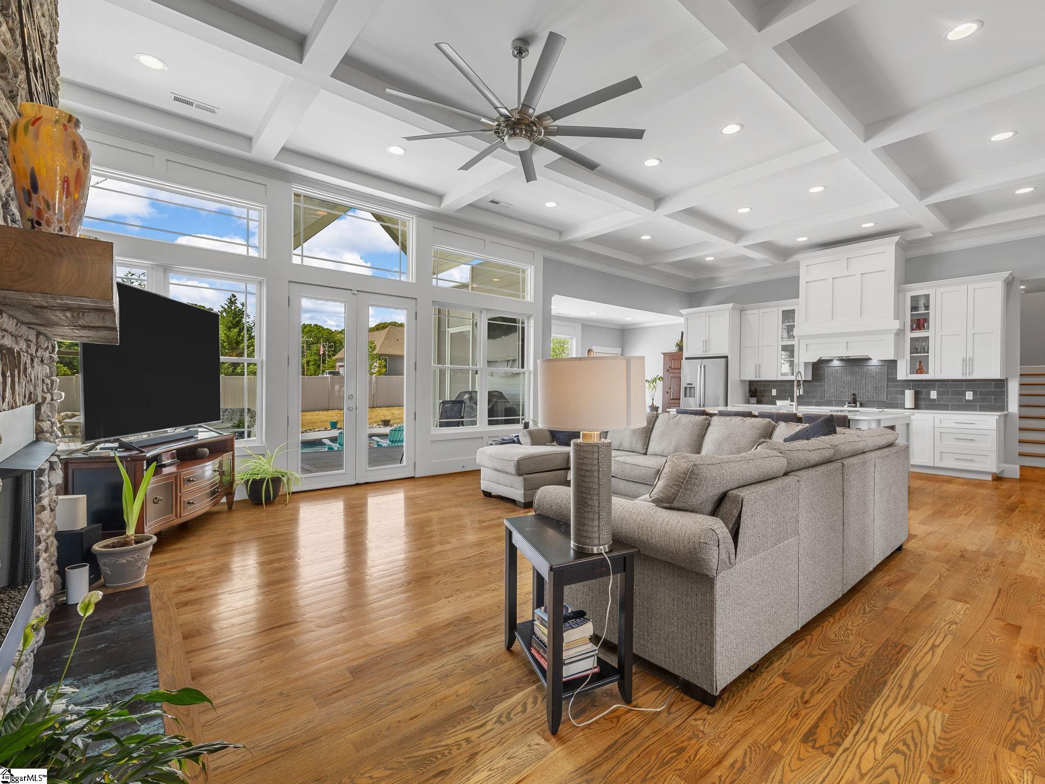 This stunning custom built home blends luxury, functionality, and thoughtful design throughout. Featuring 3 bedrooms, 4.5 baths, room over garage w/full bath, closet, and separate 13x14 flex room could turn this home into four bedrooms along with an oversized 3-car garage. The striking rock and Hardie exterior, welcoming front porch, and grand double arch front doors create impressive curb appeal from the moment you arrive. Inside, the foyer opens seamlessly into a formal dining room with picture frame molding and an expansive great room, showcasing an open floor plan filled with extensive custom details. The great room is the heart of the home, highlighted by a dramatic floor-to-ceiling rock fireplace, decorative windows, and double glass doors that lead to a covered rear deck overlooking the pool—perfect for entertaining or relaxing. The gourmet kitchen is designed for both everyday living and hosting, featuring custom cabinetry, an oversized island with bar seating, wine fridge, Bosch appliances, tile backsplash, and a spacious walk-in pantry. Coffered ceilings add an elegant touch to both the kitchen and great room. The primary suite offers a private retreat with a tray ceiling and a luxurious en-suite bath complete with a freestanding tub, double vanities, a beautifully tiled walk-in shower, and a LARGE walk in closet with custom cabinetry. Two additional generously sized bedrooms are located on the main level, each with its own private bathroom. Upstairs, an additional room includes a closet, full bath, and 13x14 separate room, making it ideal as a fourth bedroom, guest suite, or flex space. Additional features include a mudroom, walk-in laundry room with custom cabinets, and a convenient half bath. Step outside to your own backyard oasis featuring a 16x35 saltwater Lathem fiberglass pool with sun ledge and depths up to 6 feet. The covered rear porch is equipped with a retractable Phantom screen system, and the yard is enclosed with a gray vinyl fence for added privacy. Car enthusiasts and those needing extra storage will appreciate the oversized 3-car garage, complete with 10-foot-wide insulated doors and insulated walls—perfect for larger vehicles or workshop space. All of this sits on a .63 acre lot in a cul de sac. Conveniently located to schools, restaurants, shopping, grocery stores, and medical facilities. This home truly offers the perfect combination of comfort, elegance, and high-end features in every detail. Don't miss your opportunity to own this exceptional home, schedule your showing today!