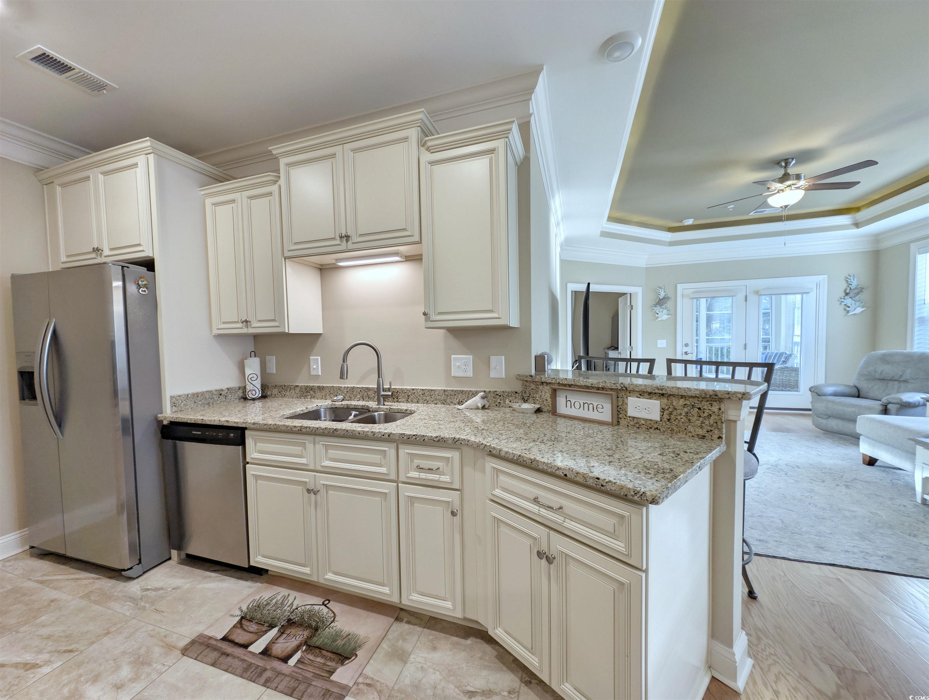 FULLY FURNISHED + SUNROOM! Welcome to your coastal escape or full-time residence—this beautifully maintained end unit with a private enclosed sunroom offers the perfect blend of privacy, convenience, and comfort. Located just over a mile from the beach and the trails of Huntington Beach State Park, you’ll enjoy the best of Pawleys Island living while being tucked away in a serene, well-kept community just west of Highway 17. Step inside to an airy, sun-filled interior with an open-concept layout designed for relaxed coastal living. Large windows and the enclosed sunroom allow natural light to pour in, enhancing the elegant features throughout—gleaming hardwood floors, granite countertops, stainless steel appliances, and a beautiful tray ceiling in the main living area. The kitchen flows seamlessly into the living and dining spaces, creating an ideal layout for entertaining or enjoying peaceful evenings at home. A standout feature of this property is the all-season sunroom, upgraded with a custom window system and linen shades. Whether you’re sipping morning coffee, reading a book in the afternoon breeze, or unwinding after a beach day, this versatile sunroom adds livable square footage and makes the home feel even more spacious. Additional conveniences include elevator access and a large private storage closet—perfect for bikes, beach gear, and golf clubs. The community offers resort-style amenities including a sparkling pool, outdoor grilling stations, and a picnic area—everything you need to enjoy the Lowcountry lifestyle. Offered fully furnished, this home is turnkey and ready for you to enjoy—whether as a primary residence, vacation home, or investment property. With the beach only minutes away and a gorgeous SUNROOM to enjoy year-round, this condo truly stands out. Don’t miss your chance to live the coastal lifestyle you’ve been dreaming of!