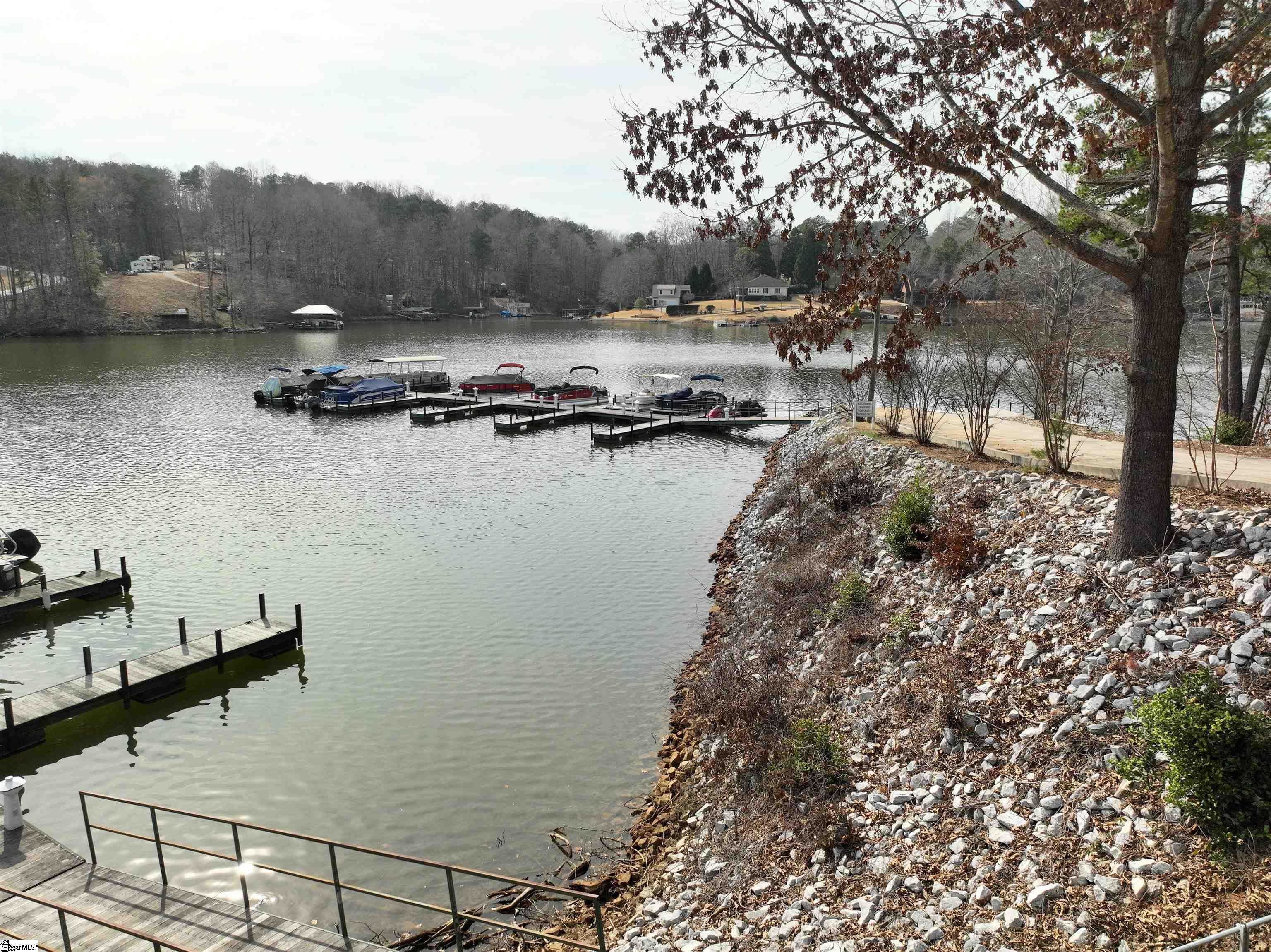 Wooded interior Lake Keowee lot. Seasonal Lake views. Gated community with public water, a boat ramp, temporary boat slips, and tennis courts. A permanent boat slip may be available with additional fees.