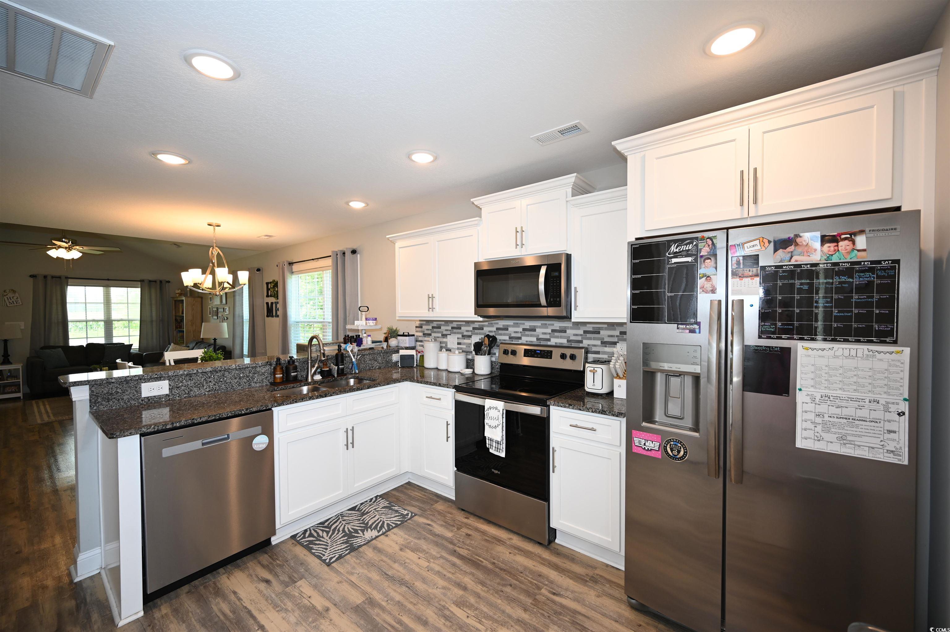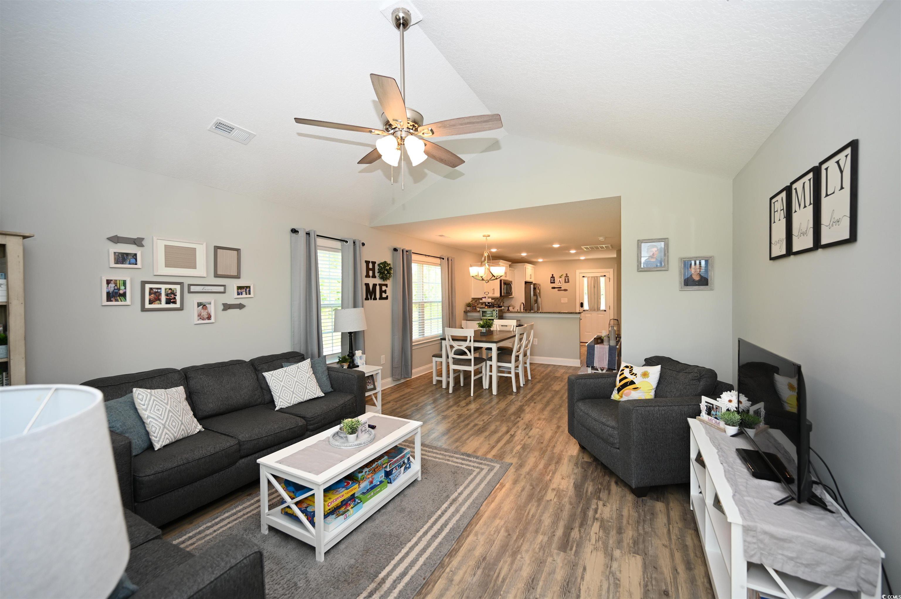This charming three bedroom and two full bathroom home in the Aynor School District. No HOA's! Situated on an estimate of .50 of an acre! This beautiful home offers spacious living in a serene country setting, but estimated at 50 minutes from Myrtle Beach, SC attractions, fine dining, entertainment, and the beach! The open-concept floor plan features a generous living room, nice size bedrooms, and multiple storage closets. The upgraded kitchen is equipped with granite countertops, stainless steel appliances, and a breakfast bar, perfect for casual dining. There's also a sizable dining area for more formal gatherings. The master bedroom includes a tray ceiling, a walk-in closet, and a walk-in shower. There is a spacious backyard, and an attached storage room along with a shed.