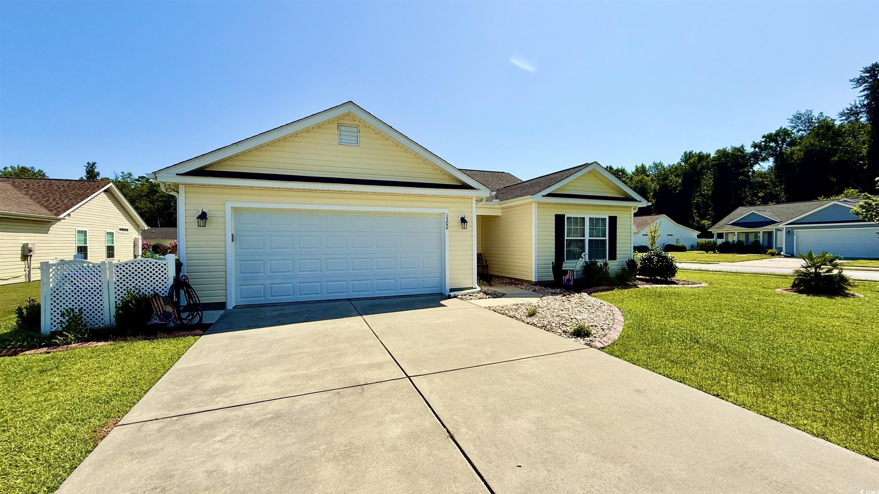 Located in the sought-after Woodland Lakes community, this well-maintained 3-bedroom, 2-bath home offers an ideal combination of comfort, functionality, and convenience. Built in 2018, the home features 1,670 heated sq. ft. (2,304 total sq. ft.) and sits on a beautifully landscaped corner lot with a peaceful pond view. The open-concept floor plan includes a split-bedroom layout, providing privacy for the primary suite. The spacious kitchen features a walk-in pantry with added shelving and ample storage. Additional highlights include a two-car garage, screened back porch, and an extended patio with a retractable SunSetter awning—perfect for outdoor relaxation and entertaining. Enjoy the quiet, country setting while remaining just minutes from downtown Conway and a 30-minute drive to Myrtle Beach. Low HOA fees add to the appeal of this desirable property.