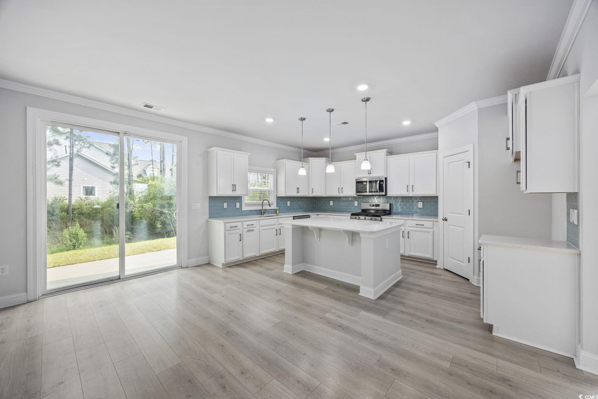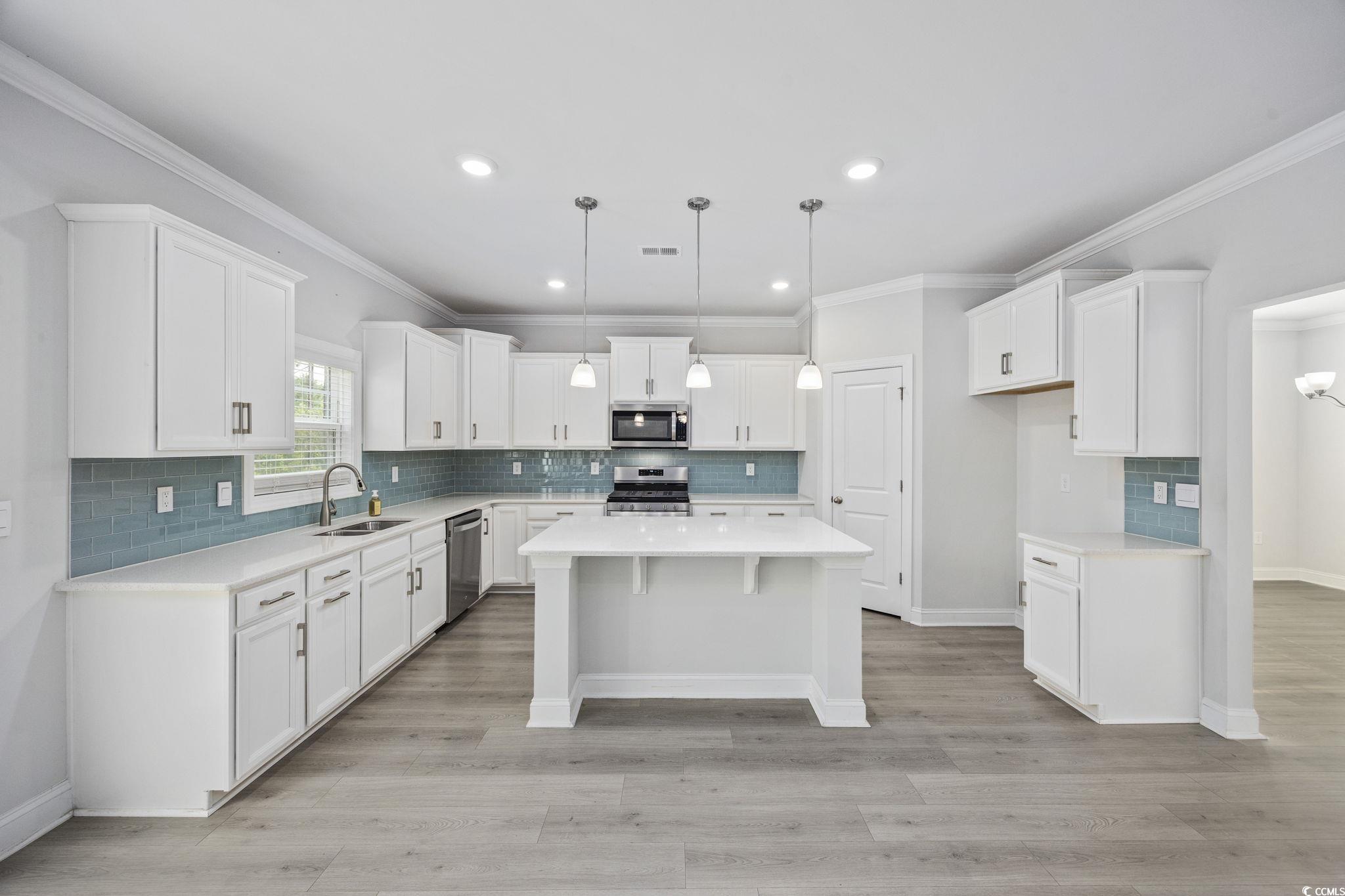 Welcome to this stunning 5-bedroom, 4-bathroom home in the exclusive Brighton Lakes gated community, within the highly sought-after Carolina Forest school district. Offering over 4,000 heated square feet, this home combines luxury, space, and modern convenience. Sit and Relax and enjoy the peaceful surroundings on your front porch. Inside, the open floor plan features a spacious living room, formal dining room, and a gourmet kitchen with quartz countertops, stylish subway tile backsplash, stainless steel Whirlpool appliances, a natural gas range, and a walk-in pantry. The kitchen flows into a bright eat-in area and great room, perfect for entertaining. A first-floor bedroom with a nearby full bath offers flexibility for guests or a home office, while a mudroom/drop zone keeps everything organized. Upstairs, the luxurious owner’s suite boasts a spa-like bathroom with an oversized tiled shower, double vanity, and large walk-in closet. Three additional bedrooms, and two full baths, provide plenty of space for family or guests. A spacious versatile loft and convenient laundry room complete the second floor. Additional highlights include a 3-car side-load garage, an extended driveway for plenty of parking, and quick and easy access to highways, shopping, dining, and entertainment. Brighton Lakes community features a resort style pool, playground, fitness center, and activity center.