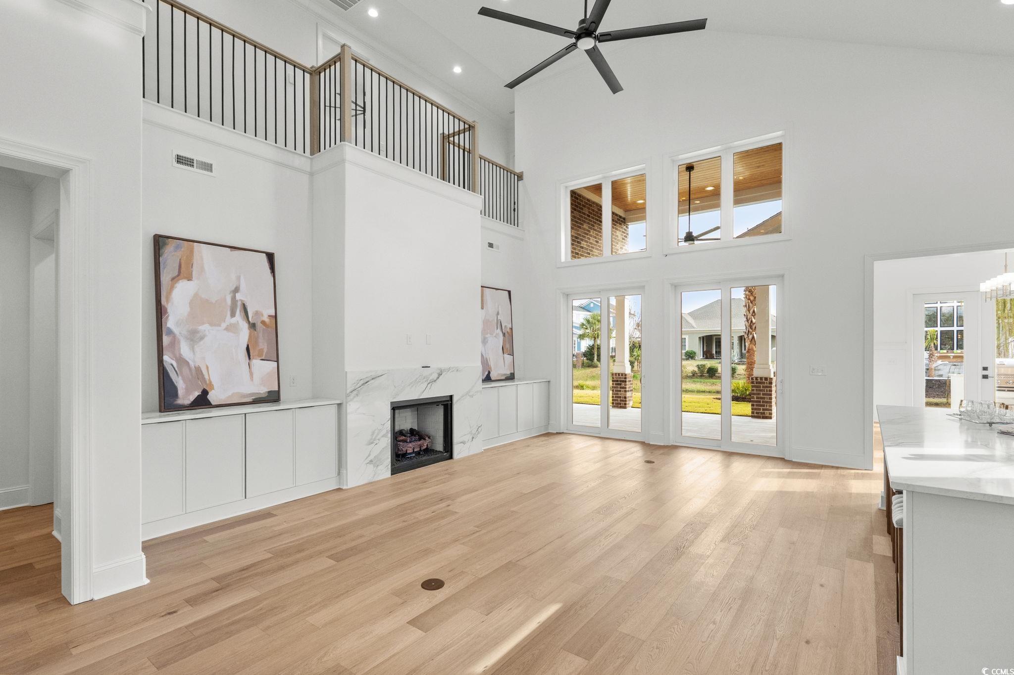 Welcome to Carolina Waterway Plantation. An Intracoastal Waterway community. Custom new-built home has 4 spacious bedrooms, 3 1/2 tiled bathrooms, Brick and Shiplap siding, metal and architectural shingles. The innovative home design is quality throughout. The minute you walk in, you see cathedral ceilings, which create a bright, open ambiance. Expansive open-concept living area flows effortlessly into a sleek, modern kitchen—with Bosch appliances, double ovens, microwave, refrigerator, dishwasher, and gas burnerstove. Generous prep & breakfast island, great cabinet space, and large pantry. Open dining room off from the kitchen, living room and half bath and a gas fireplace. A front office room with privacy. This layout was made for living & entertaining! Primary suite on the first floor features a spacious walk-in closet & en-suite bath complete with soaking tub, separate tiled shower and double sinks. Coming in from the 2 double-car garages, you will have a mud room and laundry room with plenty of counter space and cabinets. Upstairs are 3 more spacious bedrooms, 2 full tiled bathrooms, and a balcony overlooking the back pond. Ample storage throughout. Fire up your custom-built in-brick cooking area with a stainless grill and unwind under the stars on your tiled, covered private patio. The development is complete with a boat storage area, ramp into the Intracoastal Waterway, play area, pool, and clubhouse.