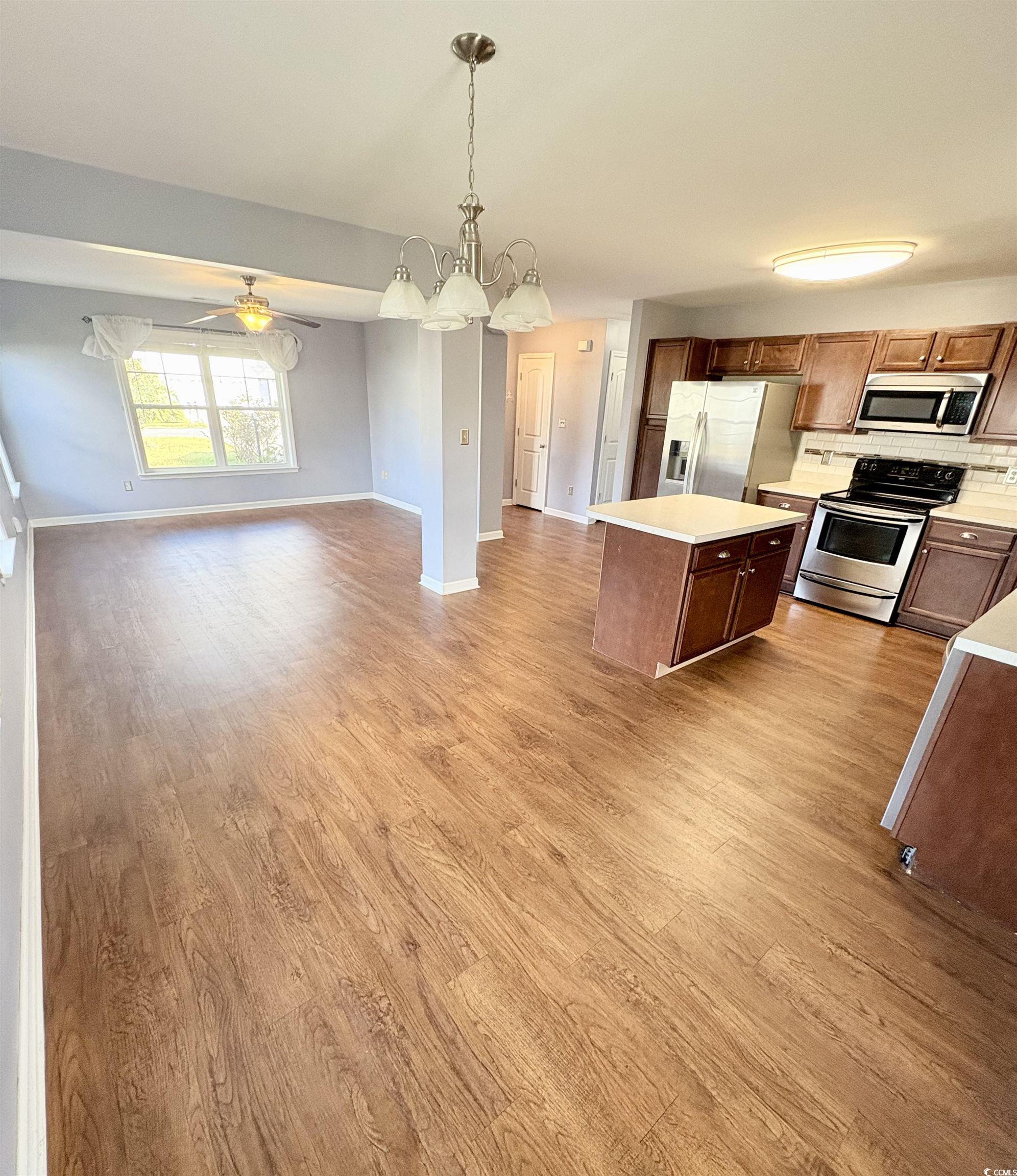 Welcome home to this CHARMING three bedroom, two bath home located in Pine Needles Estates! This house sits on 0.18 acres and has a two car garage, with an extended driveway. The covered front porch gives this home so much character with 2 large columns and stone veneer accents! The spacious living room has a ceiling fan and four large picture windows letting in tons of natural light, perfect for entertaining the whole family! The kitchen is equipped with stainless steel appliances, tiled back splash, tons of cabinet space, dining room combo, a movable work island/breakfast bar. The master bedroom is located in the rear of the house with ceiling fan, walk in closet, and large picture windows with views of the back yard. The private master bath has a shower/tub combo, vanity, and large picture window letting in natural light. The other two rooms are located down the hall from the master bedroom. Both have ceiling fans and share the hall bathroom with vanity and shower tub combo. Step outside the kitchen door and you have the sizable rear covered patio, that can also be screened in for extra living space, or the flexibility to do as you please! Pine Needles Estates is located far enough away from the summer time crowds of Myrtle Beach, yet close enough to all of the attractions, dining and shopping that North Myrtle Beach has to offer!! Call your agent today to book a showing of this quaint country home! Some images are virtually staged.