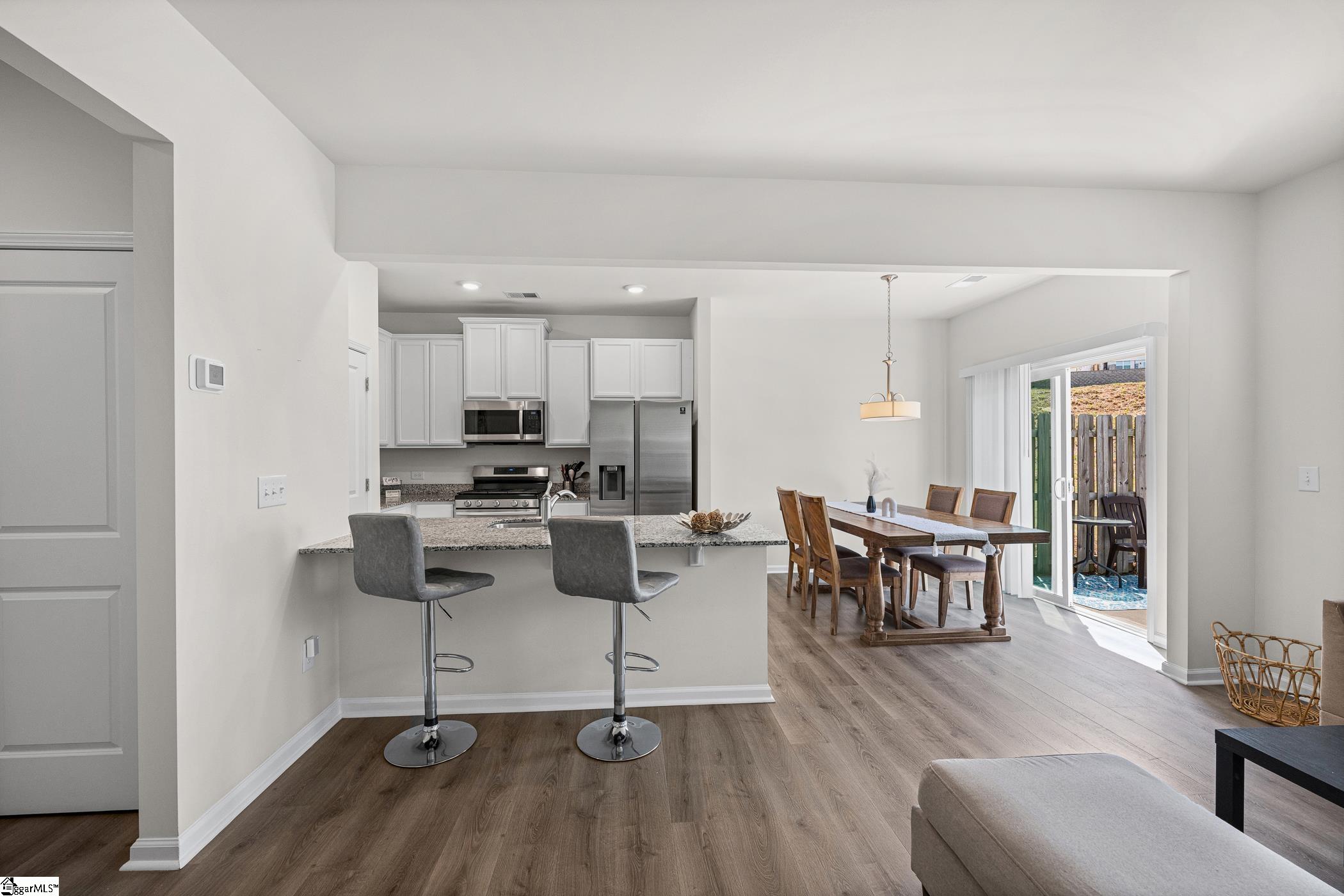 Weekends feel lighter with no yard work waiting, thanks to the HOA, and everything you need just minutes away! A newer-build townhome that stands out for its blend of modern finishes, efficient design, and unbeatable access to Spartanburg’s key destinations, 131 Clingstone Tr delivers more than expected at this price point. Easily reachable destinations like I-85, BMW, the Keurig Dr Pepper production facility, and Spartanburg’s Westside offer a plethora of professional opportunities, while abundant amenities nearby bring convenience to your suburban lifestyle. As you drive through the community, dramatic gables and private garages make a bold and stylish first impression. The covered entryway has enough space for a couple of rocking chairs or a rotation of seasonal touches. Inside, the layout opens up right away. The Foyer leads into a connected living space with flooring that feels both current and durable. The Kitchen does the heavy lifting here with granite counters, a full premium Samsung appliance package, bar seating for casual meals, and a pantry closet that keeps everything organized. There’s a light and bright Breakfast Area adjacent, and a Guest Powder Room completes the main level. Upstairs is private, with all Bedrooms in one place. The Primary Suite showcases soft carpet, a large walk-in closet, and a Bath with an extended granite vanity and a step-in shower. In split floorplan fashion, two additional Bedrooms and a Hall Bath are tucked in the back of the second level. The Laundry is central and comes complete with washer and dryer! Out back, the Patio gives you a place to enjoy a quiet morning coffee or grill with friends. This unit backs to green common area, adding even more appeal! This lovely townhome has much to offer and is certain to sell quickly… don’t delay!