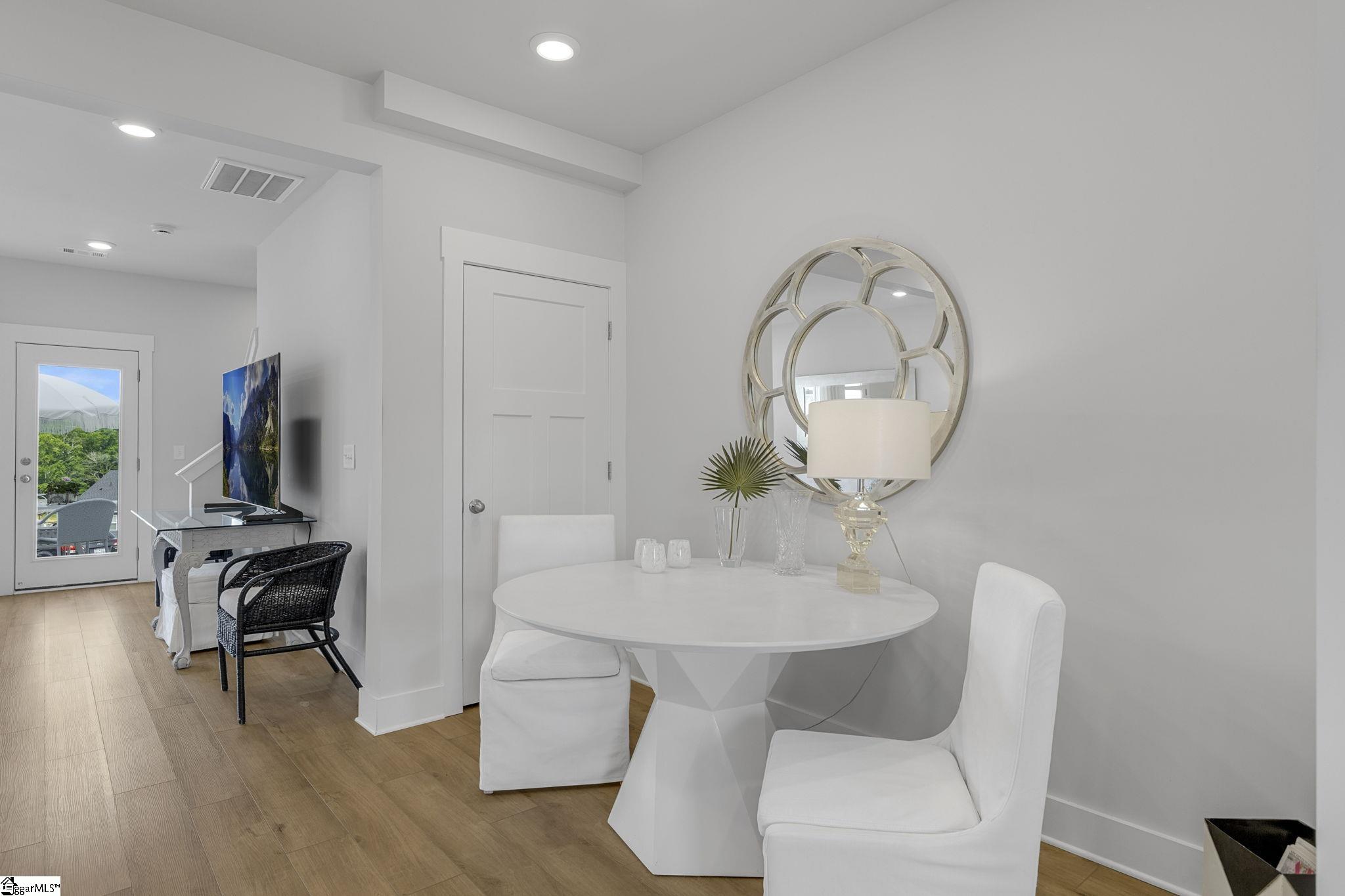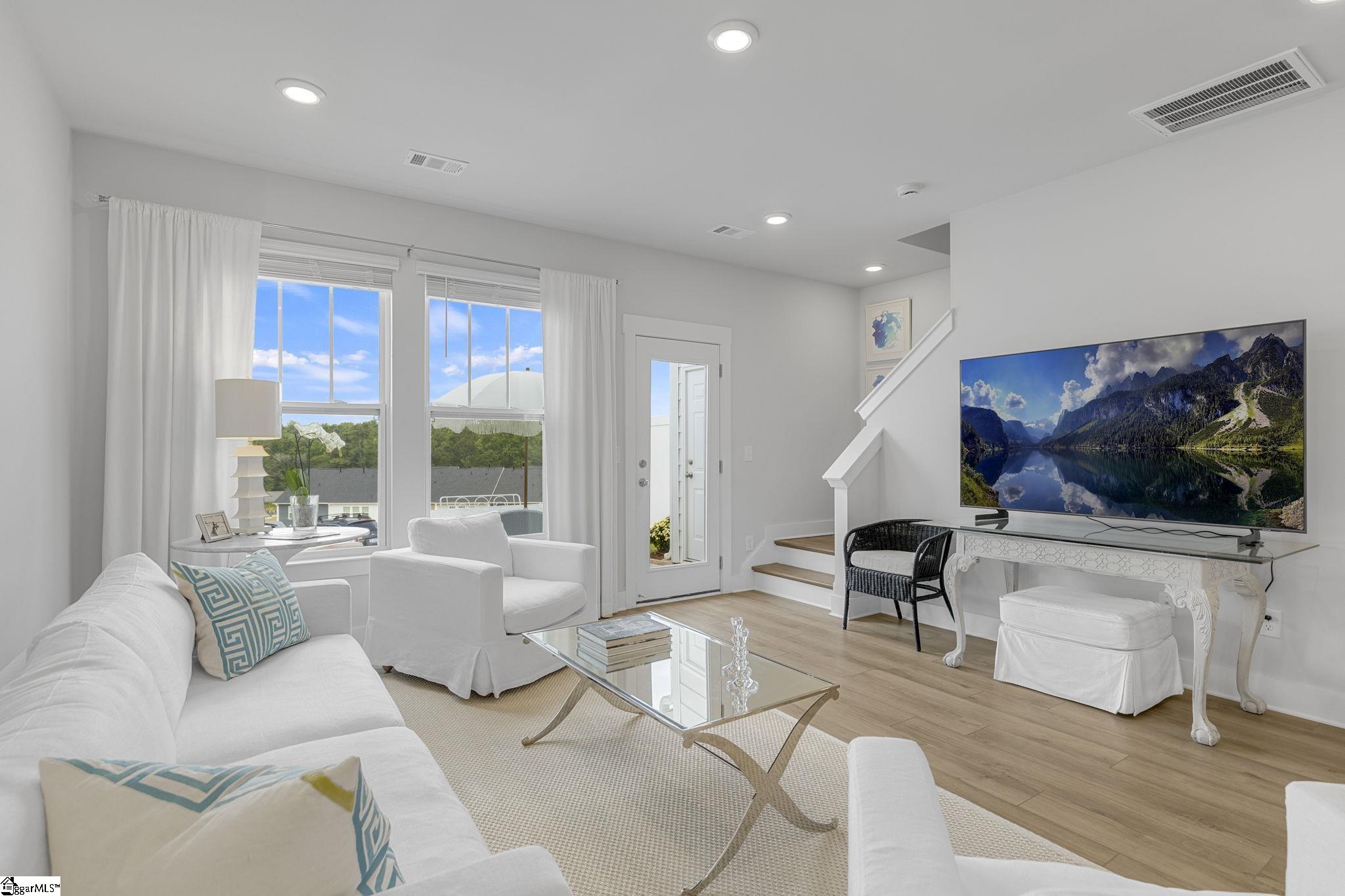 This thoughtfully designed 3-bedroom townhome in Trailside at Drayton Mills delivers more than just fresh finishes—it delivers a lifestyle. Wake up with a cup of coffee on your front porch and enjoy breathtaking sunrises. In the evenings, settle in on the back patio where sunsets set the tone for grilling, gathering, and good conversation. The owners especially love the peaceful setting, where you’re close enough to everything, but still feel like you can breathe. Just steps from your door, you’ll find the Daniel Morgan Trail—a 50-mile paved greenway ideal for biking, walking, or jogging. Wide sidewalks wrap the entire community, making it perfect for morning strolls, dog walks, and catching up with neighbors. It’s that rare blend of connected and quiet. Inside, the home is filled with natural light and modern touches. The open layout includes a flexible space near the entry that works well as a dining area, home office, or creative corner. The kitchen features white cabinetry, granite countertops, a tile backsplash, pantry storage, and stainless steel appliances including a gas range. The living area flows seamlessly to the back patio, creating an easy indoor-outdoor rhythm with built-in storage for added convenience. Upstairs, the primary suite includes a walk-in closet and a double vanity bathroom with a step-in shower. Two additional bedrooms share a full bathroom, and the laundry area is thoughtfully located on the same level. Blinds are already installed, and the home is pre-wired for smart features to make everyday living easier. The HOA covers lawn care, exterior maintenance, trash pickup, and street lighting—making it easy to enjoy a low-maintenance lifestyle. With Drayton Mills Marketplace just minutes away and convenient access to downtown Spartanburg, top employers, and major roadways, this home pairs comfort and location with the kind of community people truly seek out.
