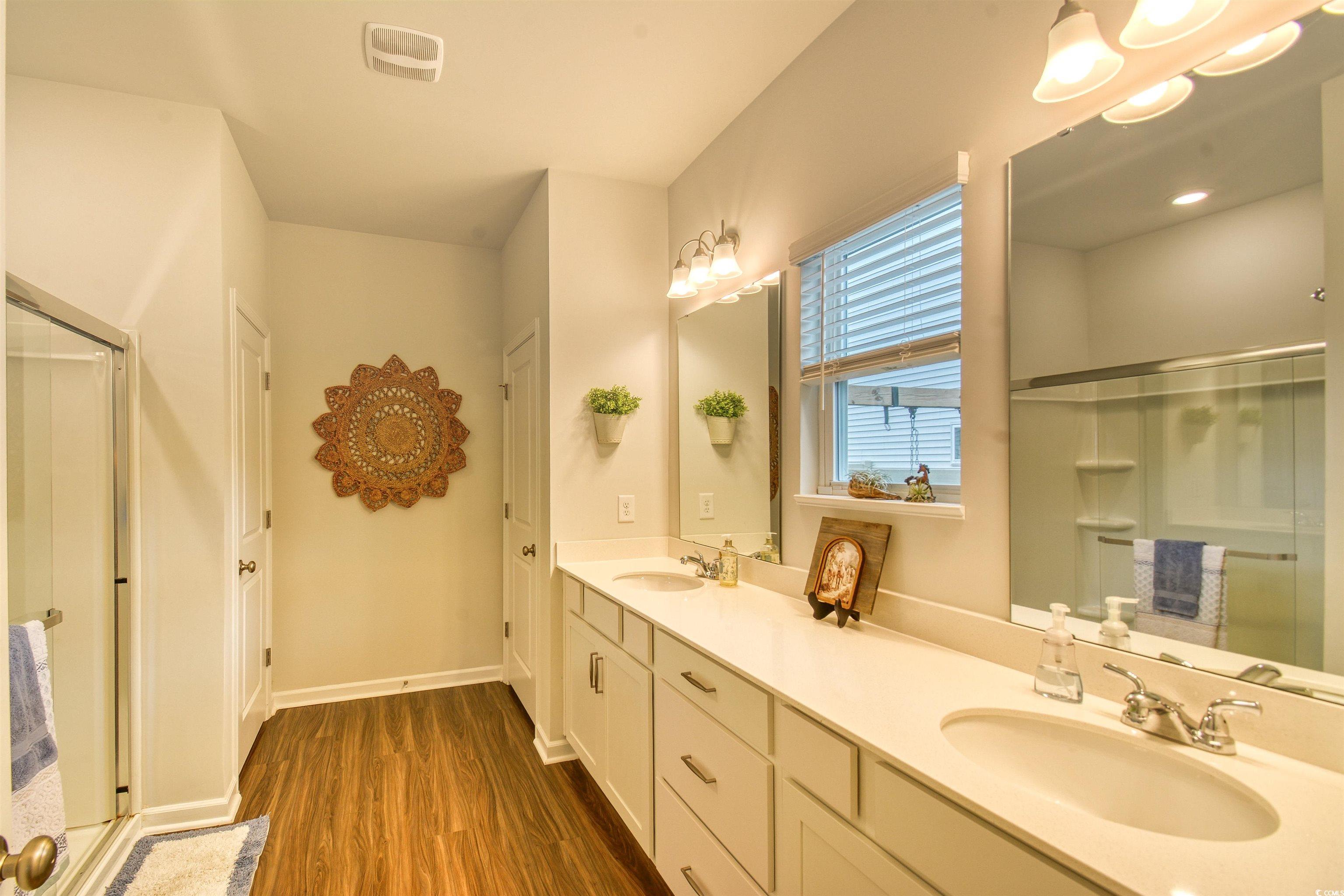 Ranch-Style Oasis in Coastal Point West – 5BR/3BA with Heated Saltwater Pool! Looking for a ranch-style home with your own private oasis? Look no further! This 5-bedroom, 3-bath home in Coastal Point West is the perfect blend of comfort, style, and outdoor living. Relax on the 19’ x 8’ covered patio with a natural gas hookup for grilling, or take a swim in your 13’ x 26’ heated saltwater pool surrounded by tan vinyl fencing and a peaceful forest backdrop. A 10’ x 12’ wired shed offers endless possibilities—she shed, he shed, playhouse, or workshop. The 1½-story Gwinnett plan features 4 bedrooms and 2 baths on the main level with a split-bedroom layout, while the upstairs includes a large guest suite with full bath for added privacy. The primary suite offers a tray ceiling, spacious walk-in closet, and a private bath with walk-in shower. The open floor plan with 9" ceilings makes entertaining easy, with a kitchen boasting granite countertops, stainless steel appliances, pantry, and breakfast bar. Additional highlights include: Luxury Vinyl Plank flooring in living/wet areas, Quartz vanities, Tray ceiling with fan in the family room, Gas fireplace with logs for cozy evening, Whole-house surge protector. As part of a natural gas community, this home is equipped with a gas range, fireplace, heat, hot water heater, and dryer. Don’t miss the chance to call this impeccably maintained home your own—schedule your private tour today! All measurements are approximate and not guaranteed. The buyer is responsible for verification.