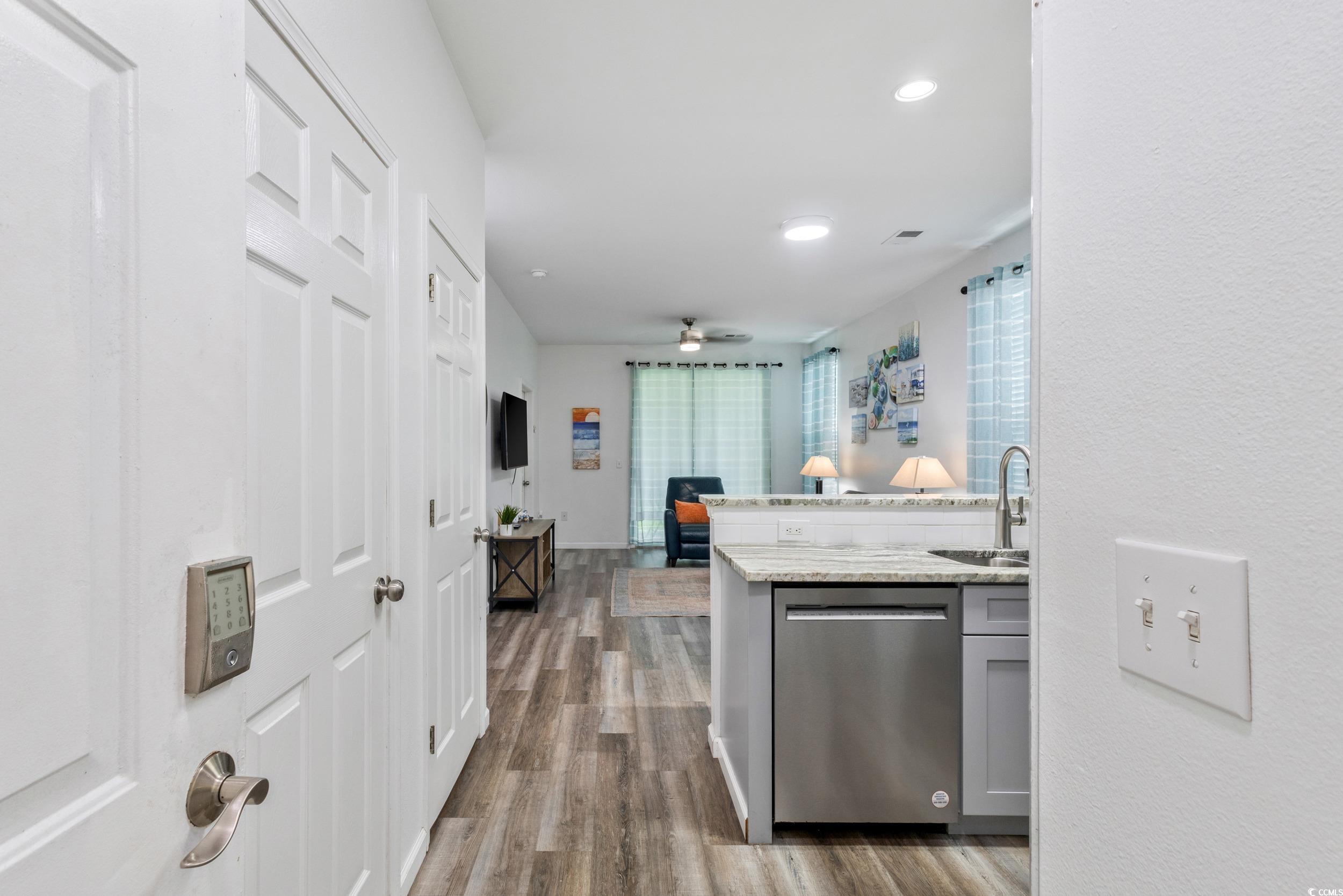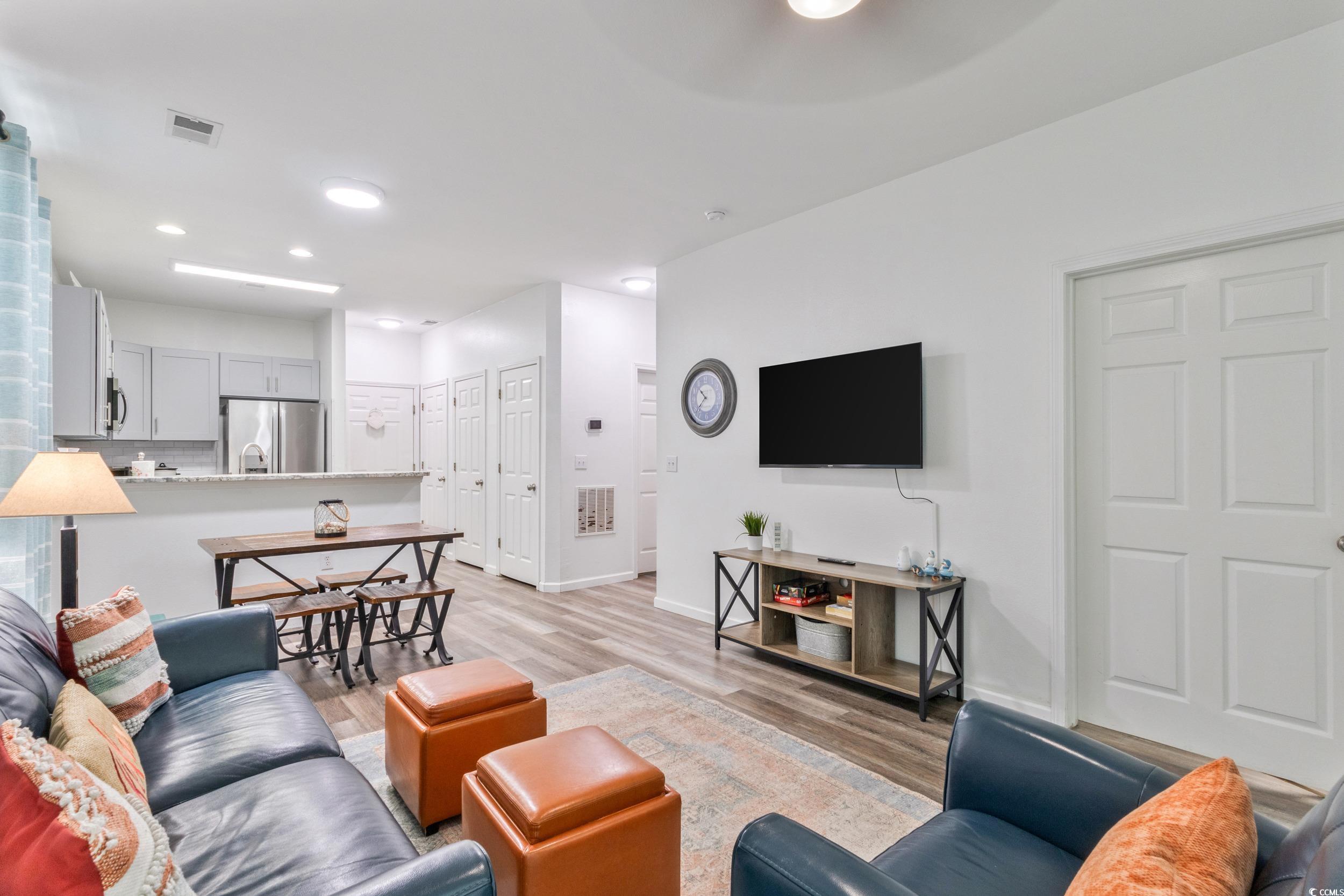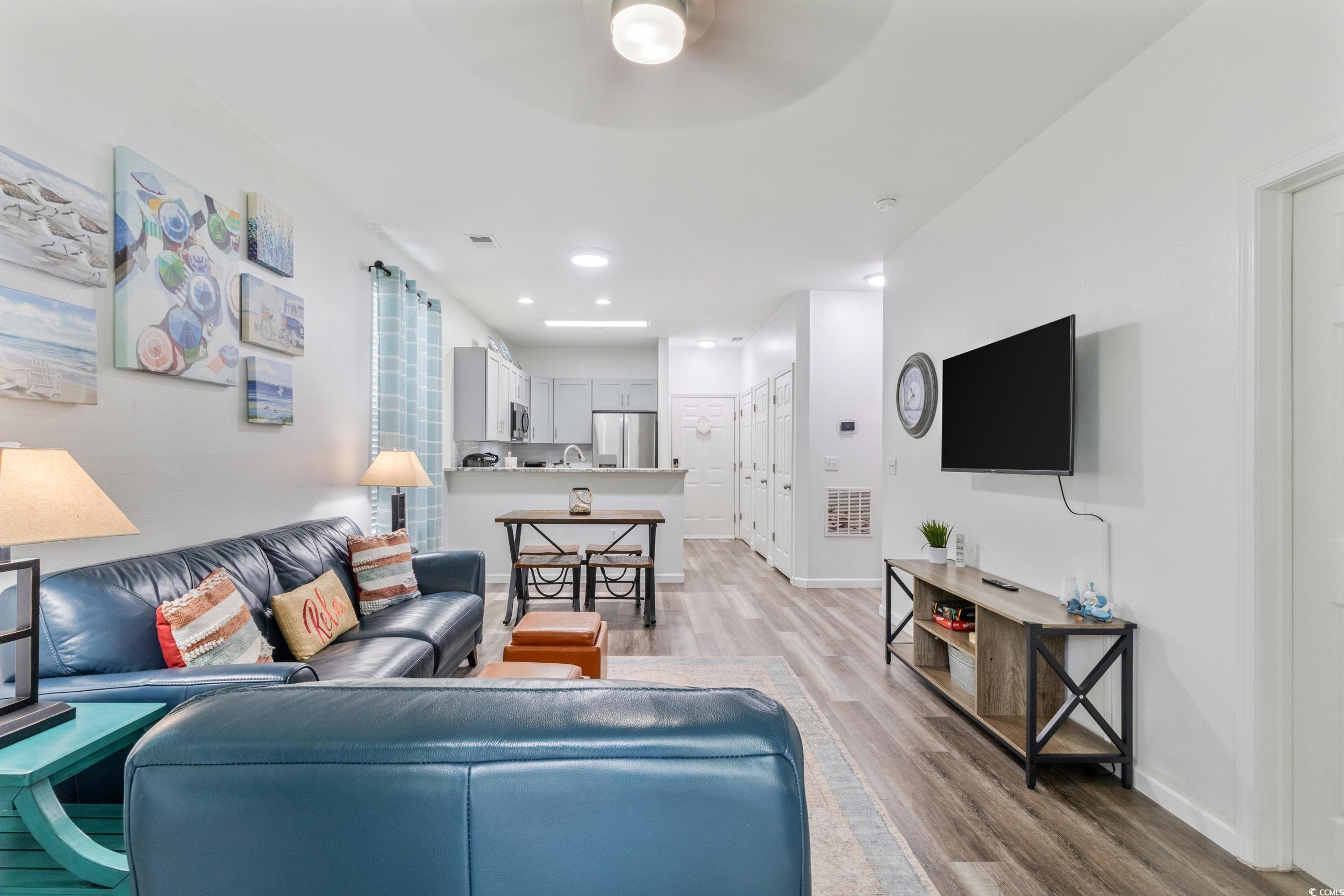 Welcome to this beautifully updated first-floor end-unit, two-bedroom, two-bathroom condo that blends modern comfort with a coastal lifestyle. This prime location provides an abundance of natural light and easy accessibility, while the screened-in patio porch offers the perfect spot to start your day or relax after a day of fun in the sun. Inside, you’ll find a fully renovated kitchen featuring new cabinets, Frigidaire Gallery stainless steel appliances, granite countertops, and subway tile backsplash—a chef’s delight and an entertainer’s dream. The open-concept living and dining areas flow seamlessly, highlighted by fresh flooring, stylish finishes, and brand new smart TVs for modern convenience. Both bedrooms are spacious and inviting, with refreshed bathrooms featuring updated vanities and finishes. A new stackable washer and dryer adds everyday practicality. Located in the Fairways at River Oaks community, residents enjoy a sparkling swimming pool and relaxing hot tub, perfect for unwinding with family and friends as well as nearby bar-b-grills and green space. This condo is ideal as a primary residence, vacation retreat, or income-producing investment. Its location puts you near an array of retail, dining, and entertainment options, top-rated golf courses, Myrtle Beach International Airport, and the sandy shores of the Atlantic Ocean. Don’t miss the opportunity to own this move-in-ready condo with unbeatable location and amenities—schedule your showing today!