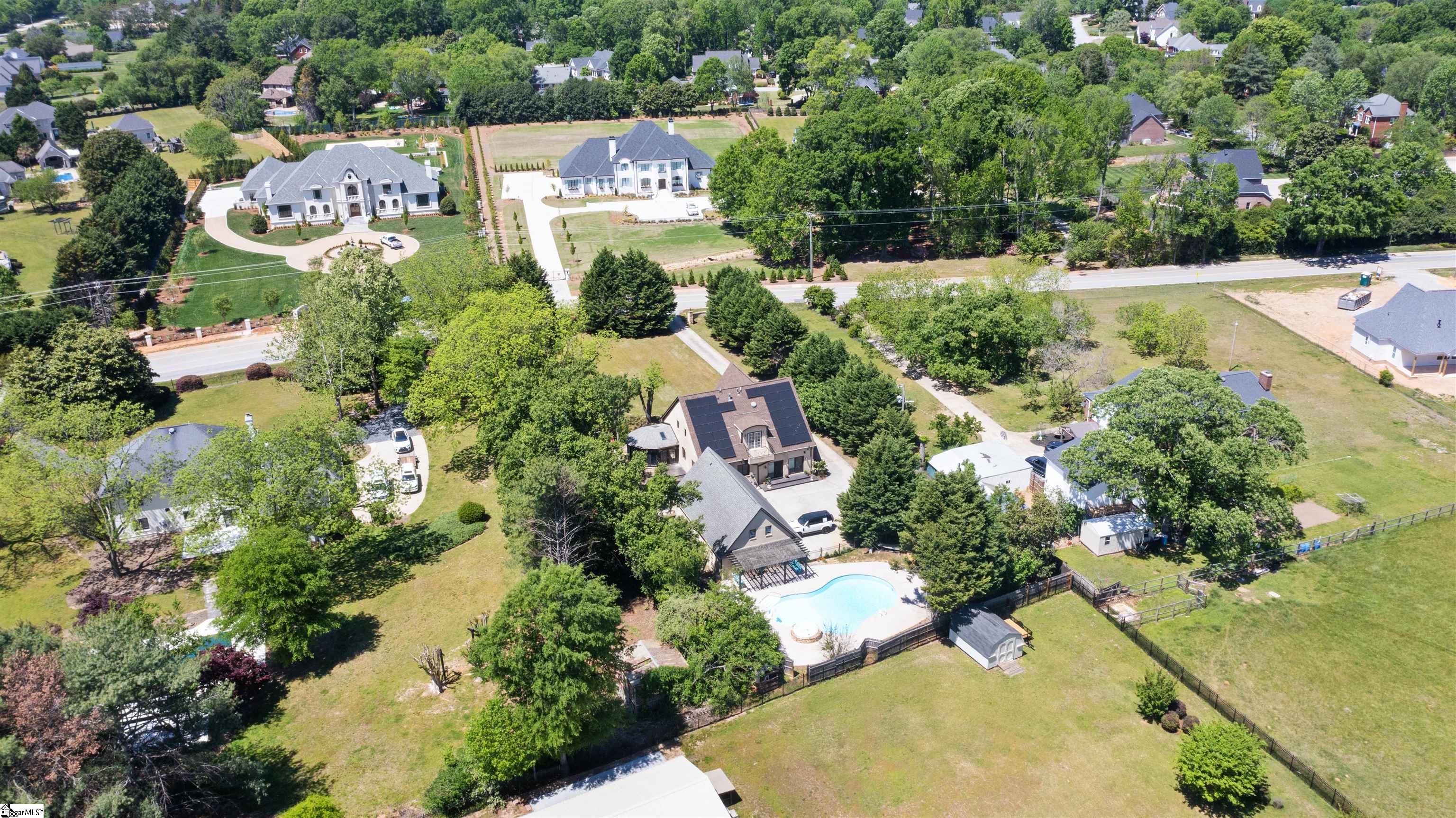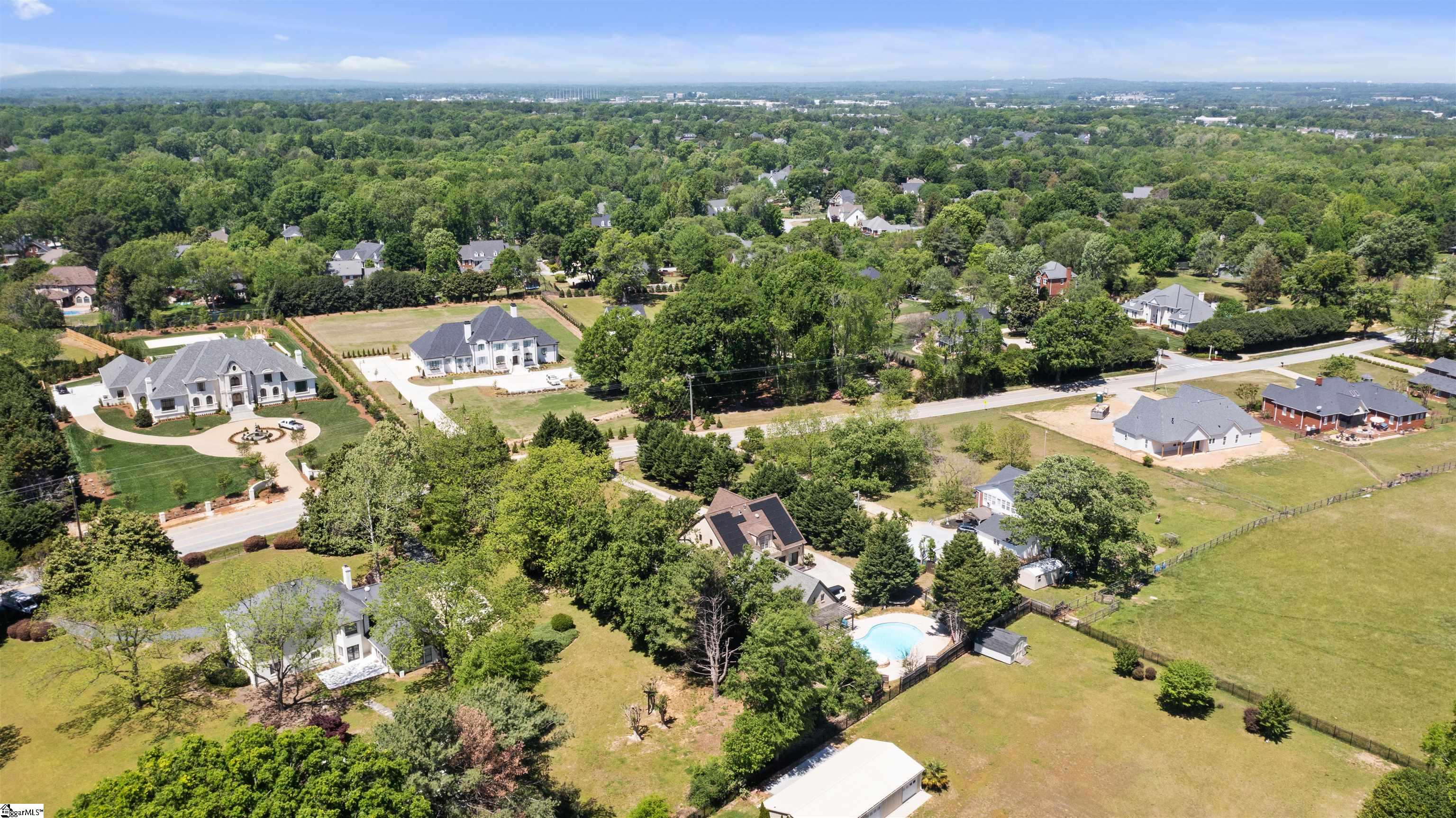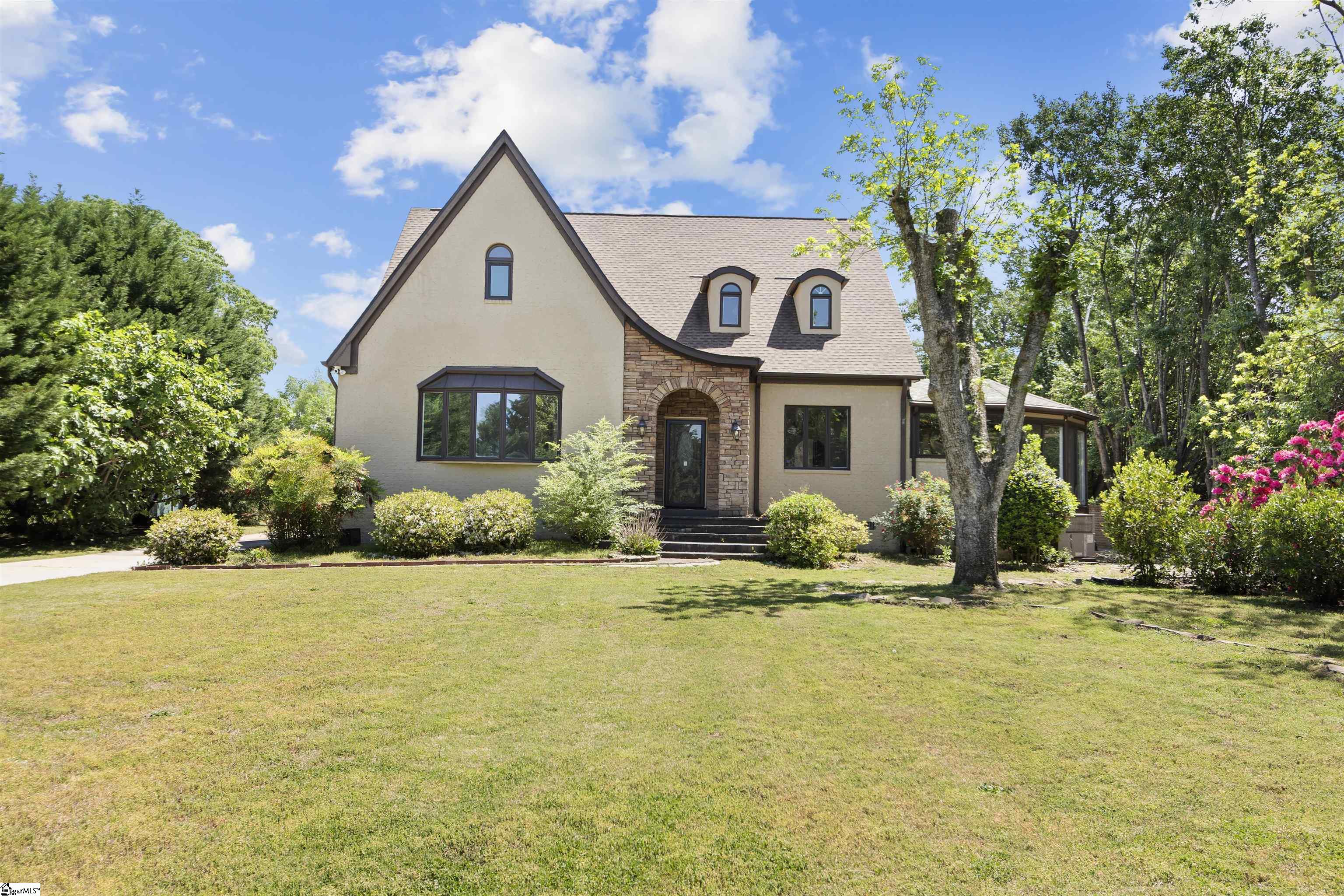 Are you looking for a NO HOA ,BIG YARD AT A GREAT LOCATION?? This is it for you !! Located in the sought-after Roper Mountain Road area, this Tudor/European-style with CUSTOM BUILT AESTHETIC 5 Bed /4 Bath home offers space, privacy, and luxury resort-style living on approximately 0.80 acres with no HOA. Gate-style grandiose entrance with long private driveway. Features include spacious kitchen, sunroom, primary (master) suite, and dedicated laundry room, plus flexible home theater or in-law suite. Outdoor amenities include a courtyard and in-ground pool, ideal for entertaining. New HVAC and solar panels in place. Convenient to shopping, dining, and major roadways, just minutes to Greenville. Zoned for top-rated schools.