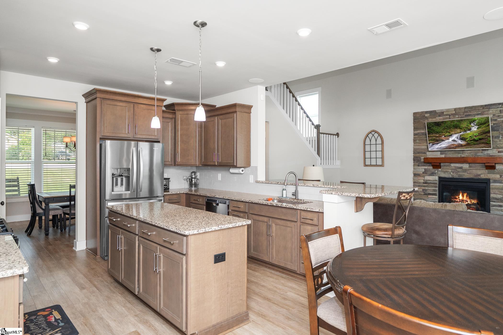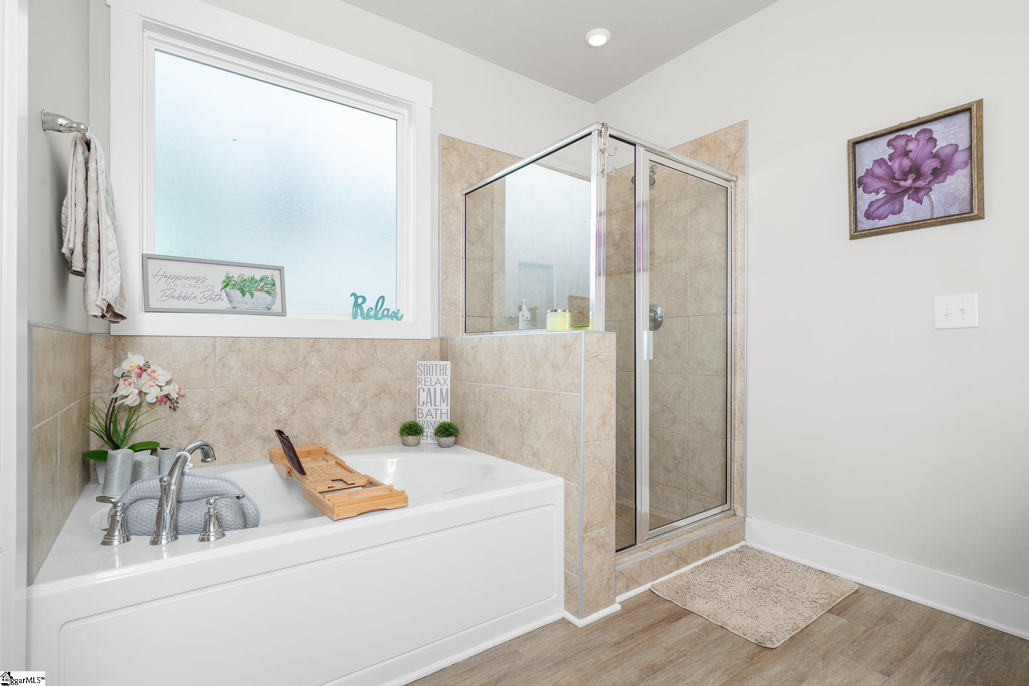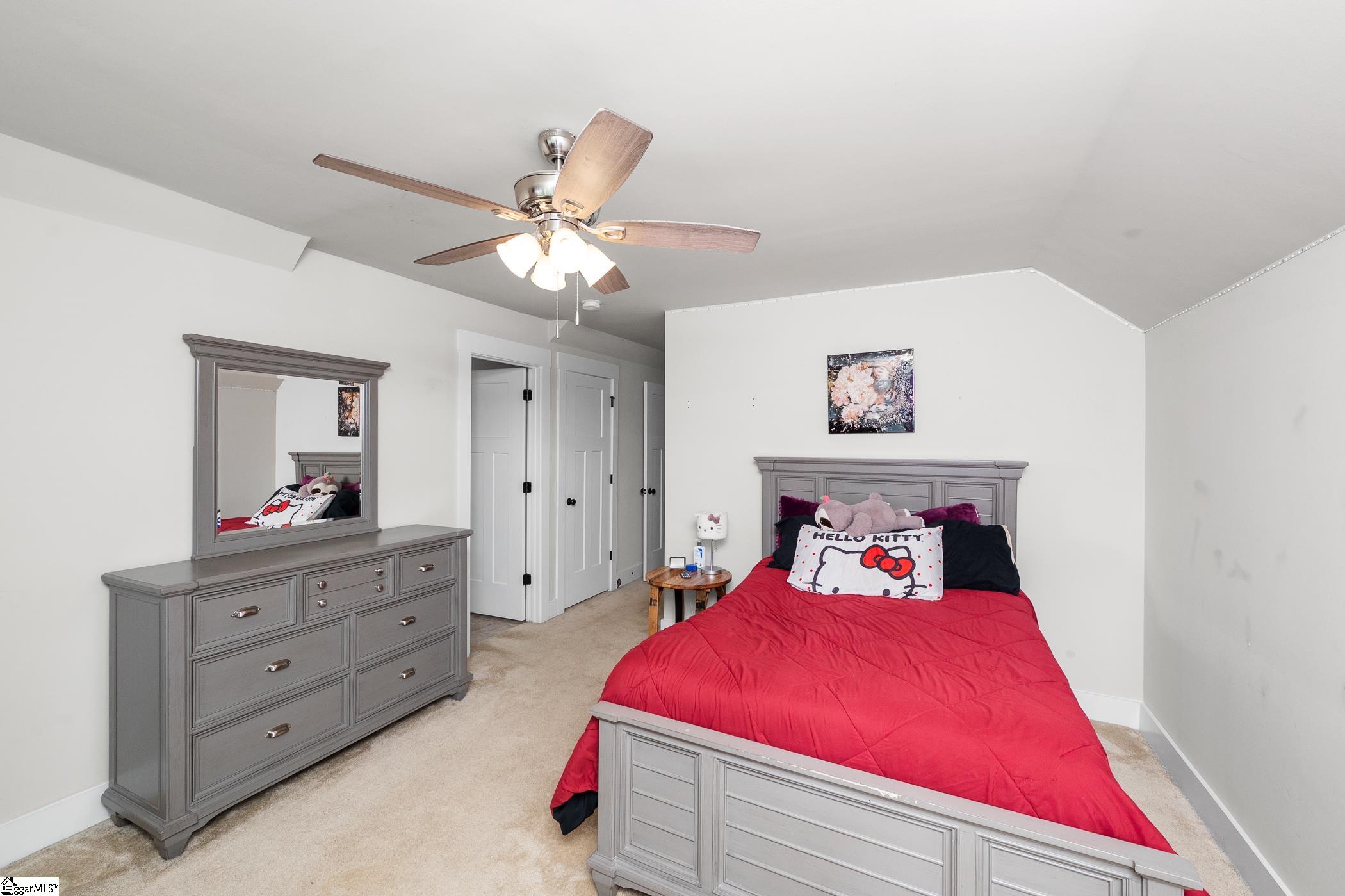 Looking for a newer home with breathing room and no HOA? This may be the one for you. This 2020 Craftsman Style home has 4 bedrooms, 3.5 baths, 2 car garage, fenced yard and large outbuilding. Enjoy the privacy of .68 acres yet convenient to Greenville/Spartanburg- minutes from BMW and I-85. The foyer entrance presents a quality feel that continues throughout the home with crown molding, vaulted/trey ceilings, luxury vinyl tile, 9 ft stone fireplace with raised hearth, surround sound system, upgraded kitchen cabinets with large island, spacious living area with oversized windows and a dining room that is perfect for family dinners or flex space The kitchen has beautiful dark cabinets with slide out trays, gas stove and open floor plan to living area. The master bedroom is a sanctuary with tray ceilings, private view windows, huge walk in closet and deluxe master bath with water closet, garden tub, dual sinks and shower. Upstairs is another massive bedroom that has a full bath with 3 closets - A walk in and 2 more that would be great for a small study area or play room. Additional 2 bedrooms upstairs share a dual access full bath that has 3 separate rooms for shower, sinks and toilet. Entire home has a lot of natural light and storage. A ton of additional storage is available in the 16x10 ft. outbuilding with loft shelving. Part of the acreage has white privacy fencing but there is a lot more room to explore behind this fence. A screened porch, large yard and patio make this a great entertainment home for outdoor activities. Well-maintained home that is only a few years old with over half an acre...don't miss this one!