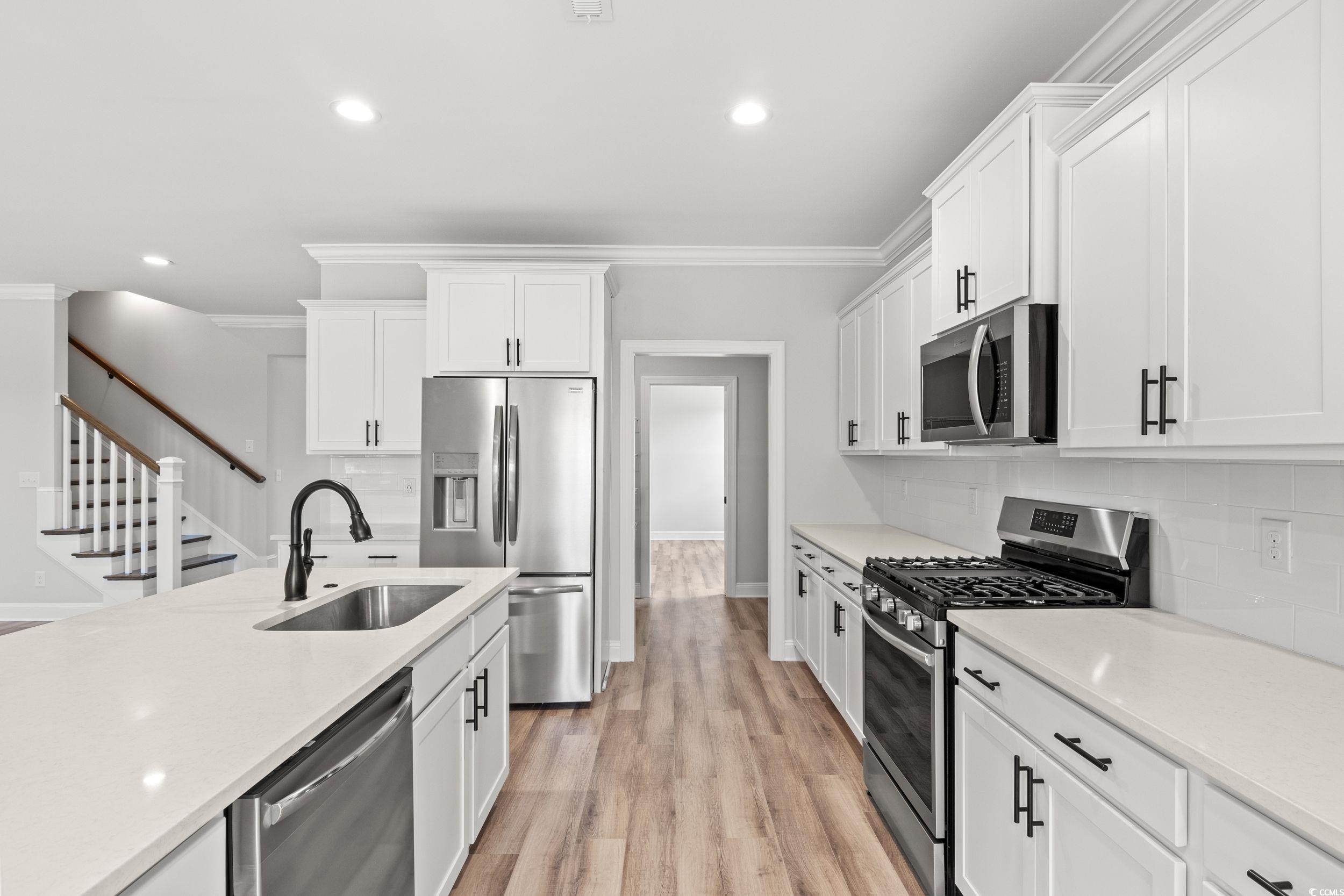 This brand new “Avon” floor plan features 3 spacious bedrooms, 3 luxurious bathrooms, and a highly sought after three-car garage, perfectly situated in a prestigious Intracoastal waterfront community in the heart of North Myrtle Beach. Step into a bright and airy open-concept living space, thoughtfully designed with contemporary finishes and high-end fixtures throughout. The gourmet kitchen: the heart of the home, boasts state-of-the-art appliances, quartz countertops, a large center Island, and ample cabinetry perfect for culinary adventures and entertaining guests. Relax in your luxurious main floor master suite, featuring a spacious bedroom, walk-in closet, and en-suite bathroom, with dual sinks and a gorgeous zero entry tiled shower. Located just moments away from renowned golf courses, shopping, and a variety of local dining options, every day brings a new adventure. Enjoy easy access to exciting attractions and entertainment, ensuring there's always something to explore. Public Beach Access, Central Park boasting basketball, tennis, pickleball courts, and more, as well as the NMB Aquatic and Fitness Center are all conveniently located less than 5 minutes away. Kingswood on the Waterway offers the perfect blend of relaxation and convenience. Don't miss out on this incredible opportunity to live in one of North Myrtle Beach's most desirable locations! Building Lifestyles for over 40 years, we remain the Premier Homebuilder in the Grand Strand, crafting new communities and custom homes. Honored as four-time Best Home Builder by WMBF News and voted Best Residential Real Estate Developer in consecutive years by the Myrtle Beach Herald Readers’ Choice Awards. Proudly rooted in the Grand Strand, we invite you to experience the local pride that we build in Horry and Georgetown Counties.