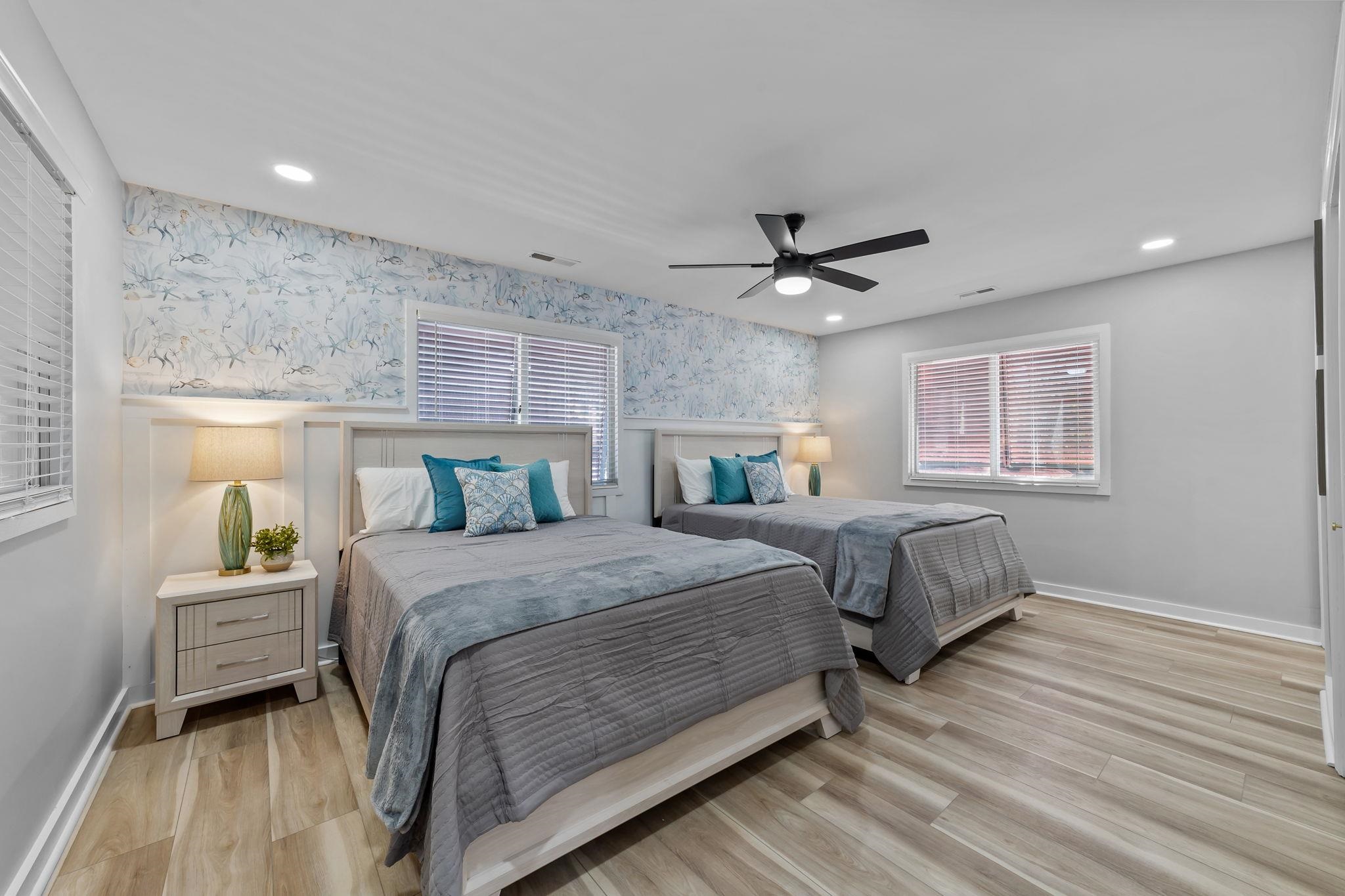 Freshly updated and fully furnished, this spacious North Myrtle Beach home offers exceptional comfort, style, and versatility—perfect as a primary residence, vacation getaway, or investment property. Just blocks to the beach. Designed to sleep up to 18 guests, this sizable home features an elegant open-concept layout with quartz countertops, a JennAir range, accent walls, and a cozy fireplace that anchors the inviting living space. The home offers 5 bedrooms and 4 full bathrooms, thoughtfully arranged across two levels. Upstairs features three bedrooms, including a primary suite, plus two full baths. One oversized upstairs bedroom includes a seating area and comfortably sleeps six, while another bedroom offers two queen beds and generous closet space. Downstairs includes two additional bedrooms, including a second primary suite with a stylish accent wall, along with two full bathrooms. The bonus room showcases rich, dark tones, a TV lounge area, which affords a relaxed, comfortable atmosphere ideal for entertaining. Beautiful brick paver flooring adds character in the rear entry, while luxury plank vinyl flooring runs throughout most of the home. Several bathrooms feature pocket doors for added space and convenience. Additional highlights include: Pull-down attic storage, storage space under the stairs, artwork throughout, vinyl siding exterior, Bahama shutters on most windows, detached one-car garage with dedicated shop area, expansive driveway accommodating up to 8 vehicles. Located in highly sought-after North Myrtle Beach and just minutes from the ocean, this property offers outstanding flexibility and income potential. Whether you’re looking for a full-time residence, vacation retreat, or rental investment, this beautifully updated home is ready to impress. Schedule your showing today!