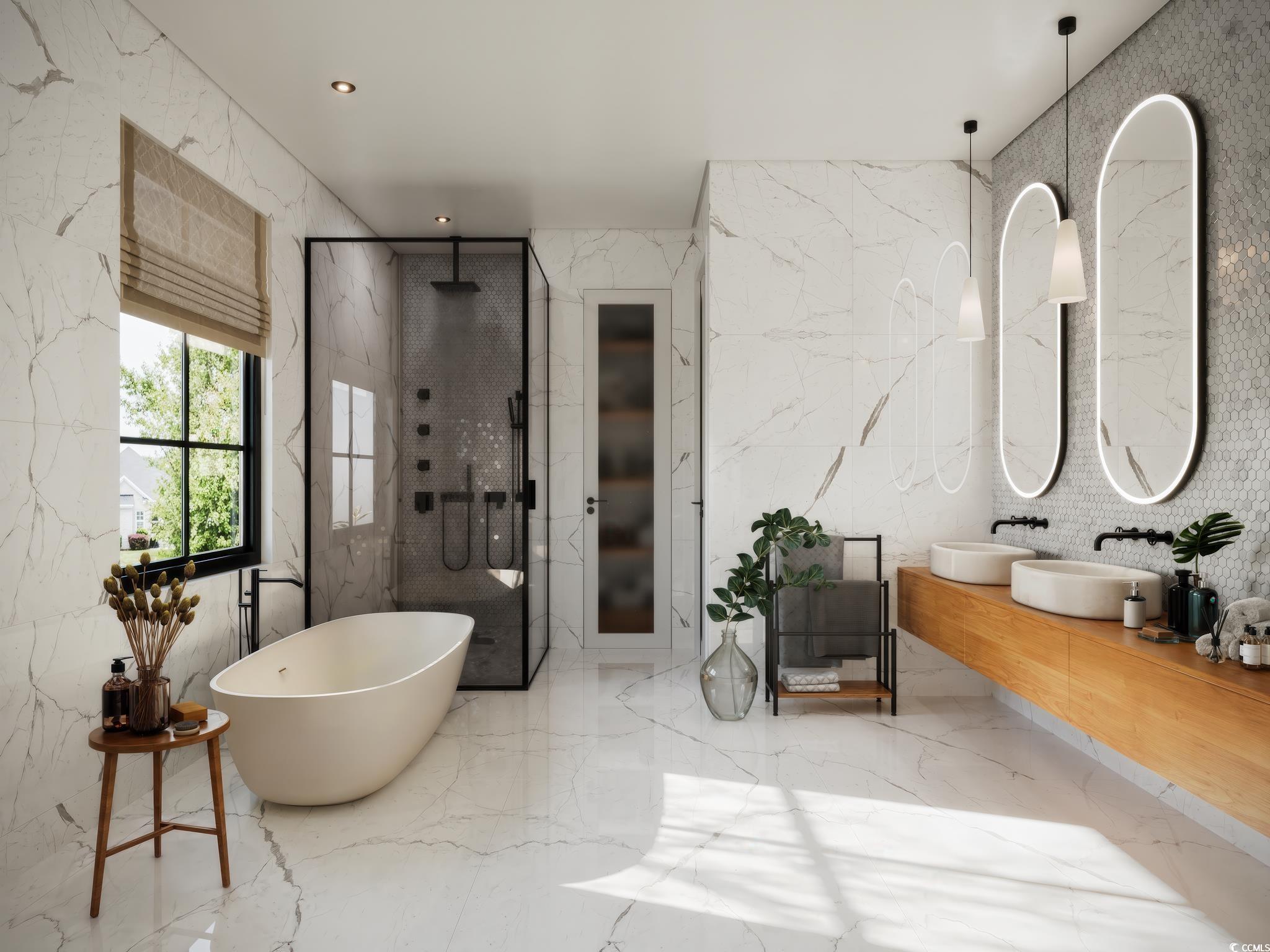 Welcome to 1315 Ashboro Dr, Myrtle Beach, SC—a magnificent custom-built home by the renowned Custom Builders, boasting approximately 3,583 sq ft of heated living space and an impressive total of approximately 5,000 sq ft. Perfectly situated on a serene lot overlooking a picturesque pond with tranquil fountains, this home provides both elegance and functionality ideal for multigenerational living. This luxurious residence offers 5 spacious bedrooms, 4 full baths, a flex room, convenient half bath ideal for guests,3 CAR GARAGE equiped with EV charger outlet . Uniquely designed, the home includes two identical primary bedroom suites, each featuring a lavish en-suite bath, ensuring privacy and comfort for all family members. Enjoy expansive living spaces with a stunning great room highlighted by modern tray ceilings and seamless integration into the open-concept gourmet kitchen and sophisticated dining area. The kitchen includes premium finishes, ample cabinetry, high-end appliances, a waterfall island, and breathtaking pond views. Upstairs, discover additional bedrooms, a versatile bonus room perfect as an office, media room, or playroom, and a spacious balcony offering serene views of the pond and fountains. Experience ultimate outdoor living and entertaining in the beautifully landscaped backyard featuring an inviting patio area, complete outdoor kitchen, and luxurious swimming pool with spa—ideal for enjoyment in both summer and winter. Carolina Waterway Plantation is an exclusive gated community located directly on the Intracoastal Waterway, providing homeowners the luxury of direct waterway access. Enjoy the convenience of a private boat launch and dedicated boat storage, perfect for homeowners passionate about boating, jet skiing, kayaking, fishing, and other water sports. Imagine spending weekends on the water, cruising along the scenic Intracoastal Waterway, or heading out for a day at sea. Additionally, this prime location in Myrtle Beach places you just aproximatly 15 minutes from the stunning Atlantic beaches. Live in paradise with easy access to pristine sands, vibrant beach activities, golf courses, premium shopping, top-rated restaurants, entertainment venues, and the renowned Myrtle Beach Boardwalk. Disclaimer: Photos shown are renderings of the actual plan and the home will be constructed on the specified lot. Schedule your private showing today and embrace luxury, comfort, and convenience at its best!