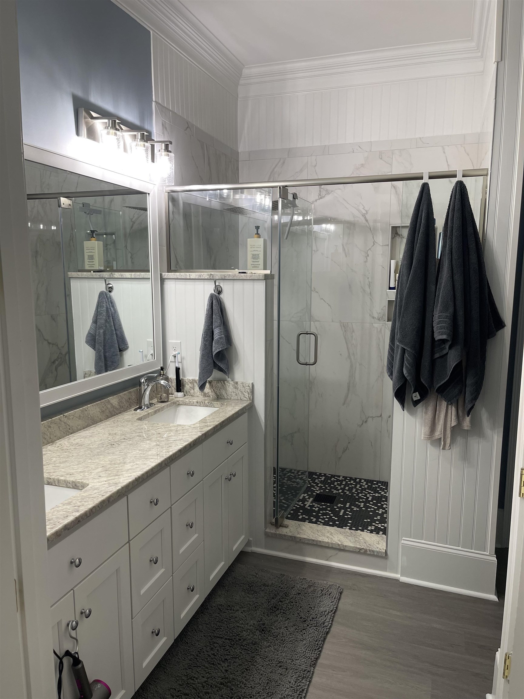 Welcome to beautiful sought-after Charleston Landing, with neighborhood pool overlooking the marsh, friendly sidewalks, pet stations and playground for the kiddos. This gorgeous neighborhood has two ponds with fountains and gazebo. Built in 2021, this hardy board built home features 10’ ceilings with 8’ doors. Custom crown moldings and 9” baseboards. Plantation shutters! Beautiful Oak flooring throughout. New ceiling fans in home, front porch and screened in back porch. New exterior lighting with motion on front and rear of home. Ring doorbell. The sunny front room can be a formal living room or office. The large family room has custom coffered ceilings and fireplace..perfect for those Christmas stockings. First floor master with tray ceilings and two walk-in closets. Private bath with new shower, lighting and floors. Dining room has tray ceilings and the eat in kitchen, provides that perfect entertaining. Kitchen offers Stainless steel appliances, granite countertops, and soft close cabinets with a walk in pantry. First floor laundry with storage area and cabinets. Upstairs you’ll find a sunny bedroom with plenty of closet space. Hall bath with tub and another large bedroom with walk-in closet. Two extra large storage areas that could be enclosed. Outside you’ll find a nice BBQ area, newer custom stone patio for entertaining and a screened in porch for watching the game and enjoying fun times without bugs. The perfectly landscaped, private backyard, complete with sprinkler system and stone curbing, makes for an attractive property with easy maintenance. The driveway has been widened too, with a rear garage for plenty of parking. Ride your golf cart to the beach (free parking), shopping centers and dining areas close by. Neighbors enjoy fun holiday gatherings and social clubs. Welcome home!