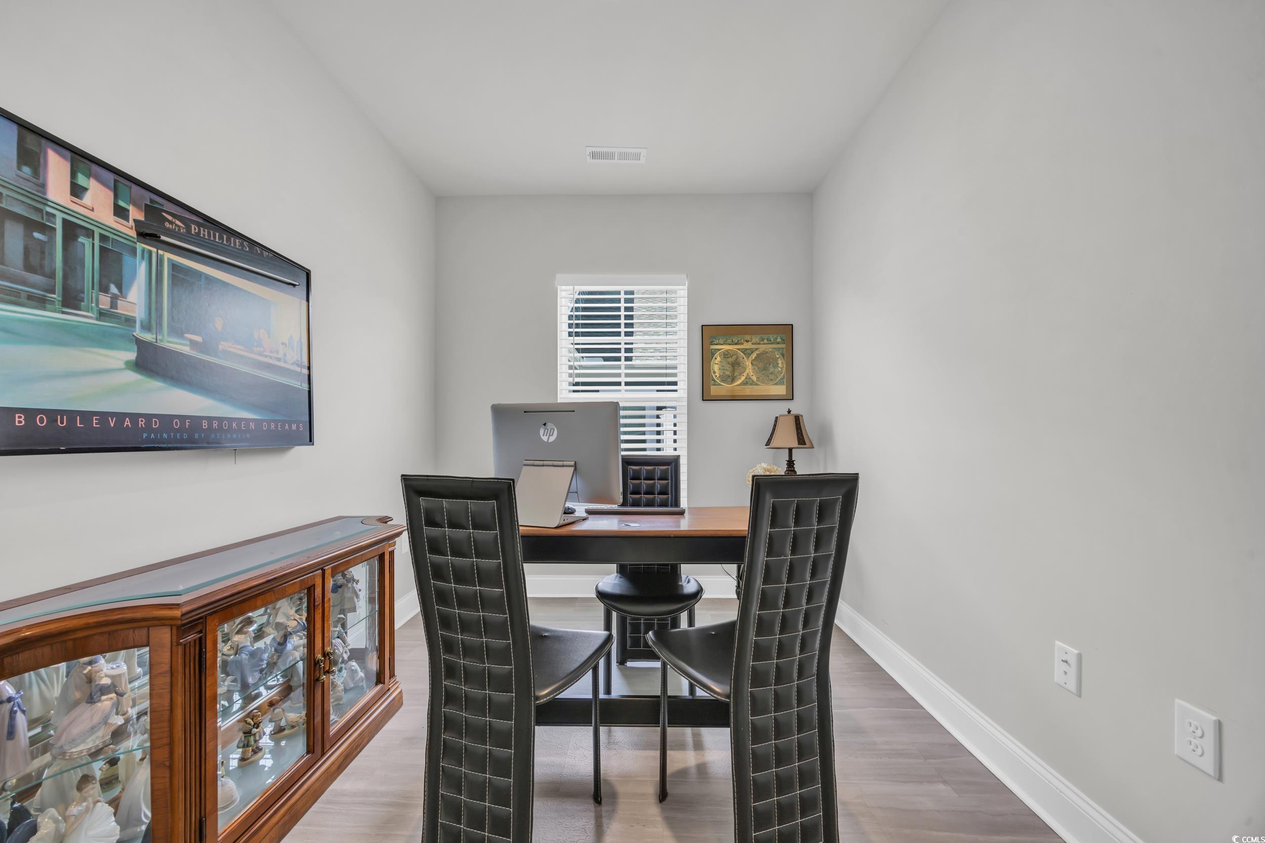 This beautifully designed single-level home offers the perfect blend of convenience, comfort, and coastal living—just a short golf cart ride to the BEACH, plus shopping, dining, and entertainment in the popular Ocean Drive area. Featuring 3 bedrooms, 2 baths, and a versatile bonus room, this flexible layout is ideal for a home office, media room, or optional 4th bedroom. Inside, you’ll find an inviting open-concept floor plan with durable LVP flooring, a gourmet kitchen with granite countertops, stainless steel appliances, an oversized island, and a spacious owner’s suite with a walk-in closet and spa-inspired bath showcasing dual vanities and a tiled walk-in shower. Additional upgrades include a 2-car garage, full laundry room, tankless gas water heater, Low-E windows, WiFi thermostats, 14 SEER HVAC, keyless entry, and a built-in security system—providing modern efficiency and peace of mind. Robbers Roost residents enjoy fantastic amenities including a resort-style pool and clubhouse, creating the perfect setting for year-round living or a relaxing getaway. Whether you're searching for your forever home or the ultimate beach retreat, this one truly checks all the boxes!