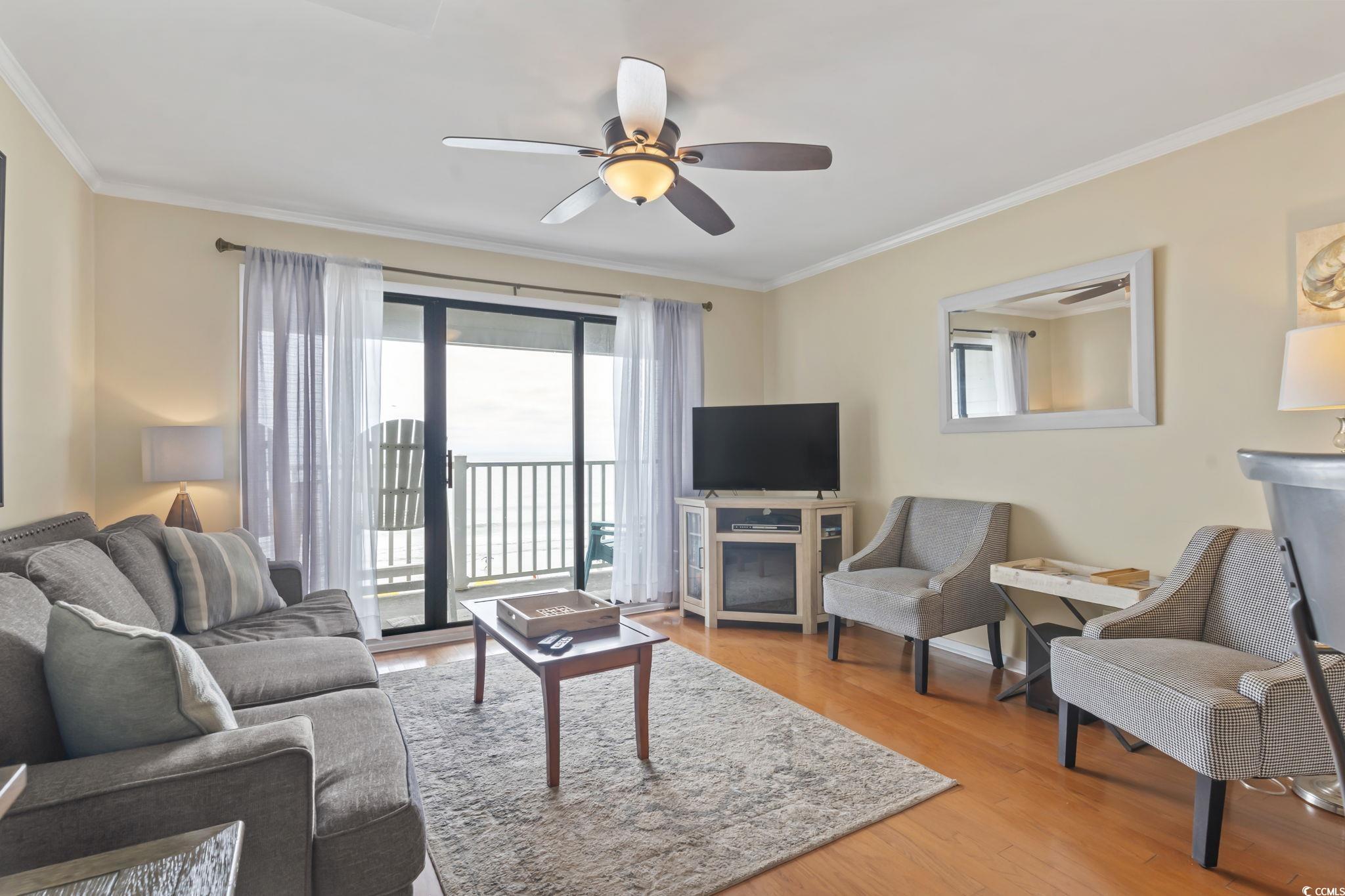 Stunning Surfside Beach oceanfront condo with updates throughout! This open-concept 2 bed condo features wood floors, spacious living, beautiful furniture, great views, and an in-unit washer/dryer. Both bedrooms are generously sized with two full baths for convenience. Step out to your covered oceanfront balcony and take in endless views of the Atlantic. Or walk just downstairs and enjoy the ocean side pool. This condo is perfect as a vacation retreat, rental investment, or full-time coastal residence! Take a minute to see the virtual showing then schedule an in-person showing today with your agent or myself!