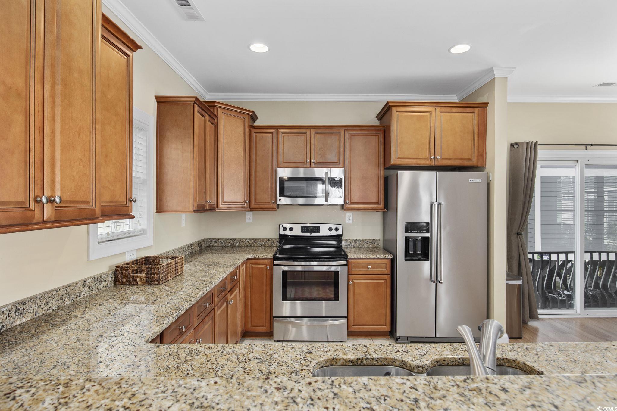 This fabulous fully furnished 3BR/2.5BA raised beach house is conveniently located in a 2nd-row community just steps away from everything Garden City has to offer! Enjoy a short walk to the pier, fishing, restaurants, arcade, lively bars, and of course, the beautiful beach. This private, fenced in neighborhood offers peace and seclusion, keeping vehicle and foot traffic at bay. Built in 2012, this home features quality upgrades, including Hardie Plank concrete siding, metal roof, and spray foam insulation for superior energy efficiency and quiet comfort inside. The open interior boasts granite countertops, stainless steel appliances, and low-maintenance flooring throughout. The large covered exterior storage closet is perfect for stowing beach gear, paddle boards, grills, and more. Enjoy relaxing by the community pool or take advantage of short-term rental opportunities for added investment potential. Don't miss this opportunity to make your dreams come true!