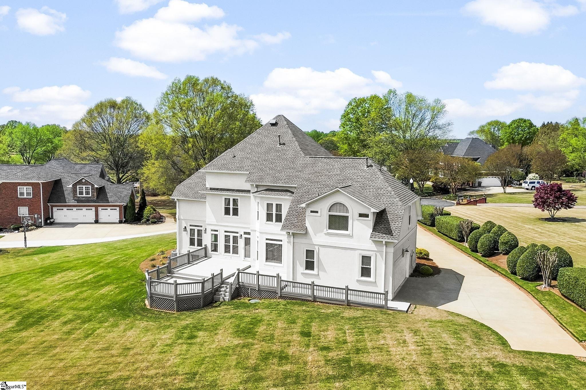 Welcome to 132 Indigo Court—an exceptional custom-built estate nestled on a pristinely landscaped, nearly one-acre cul-de-sac lot in the highly sought-after Five Forks area. Perfectly positioned within the prestigious Willow Creek Golf Club community, this stunning golf-front home offers unobstructed views of the 7th green and 8th tee box—creating a breathtaking backdrop for both sunrise mornings and peaceful evenings on the expansive back deck. Thoughtfully crafted by Darrell Sudduth Builders, this 5-bedroom, 4-bath residence blends timeless architecture with modern updates and exceptional functionality. Bathed in natural light, the home features an elegant, yet livable, layout designed for both entertaining and everyday comfort, with multiple gathering spaces and private retreats throughout. The heart of the home is a beautifully appointed kitchen showcasing granite countertops, a marble backsplash, stainless steel appliances, and a Jenn-Air gas cooktop with downdraft. A charming breakfast nook with bay windows frames sweeping golf course views, making every meal feel special. The adjoining great room offers custom built-ins, a gas fireplace, and refined details like double crown molding and a wet bar. The spacious owner’s suite is a true sanctuary, complete with a sitting area, private office nook, spa-like bath, and an impressive 16x11 walk-in closet and dressing space. A main-level guest suite provides flexibility, while upstairs features additional bedrooms and a versatile bonus room with wet bar—perfect for a media room, playroom, or home office. This home has been meticulously maintained and thoughtfully upgraded with new hardwood floors, updated windows, a new roof, 75-gallon gas water heater, overhauled crawl space, whole-home lightning surge protector, and enhanced irrigation and landscape lighting. The stucco exterior has been professionally sealed and painted for long-lasting durability. Additional highlights include a side-entry two-car garage with epoxy flooring and utility sink, ample storage throughout, and LED panel lights. Residents of Willow Creek enjoy a vibrant lifestyle with amenities including a Junior Olympic-size pool, clubhouse, tennis and pickleball courts, playground, and an active social calendar with events for all ages. Ideally located just minutes from Greenville, Simpsonville, and Greer, with convenient access to I-85 and Greenville-Spartanburg International Airport, this home offers both tranquility and accessibility. Exquisite design. Thoughtful functionality. Unmatched setting. This is golf course living at its finest—schedule your private showing today.