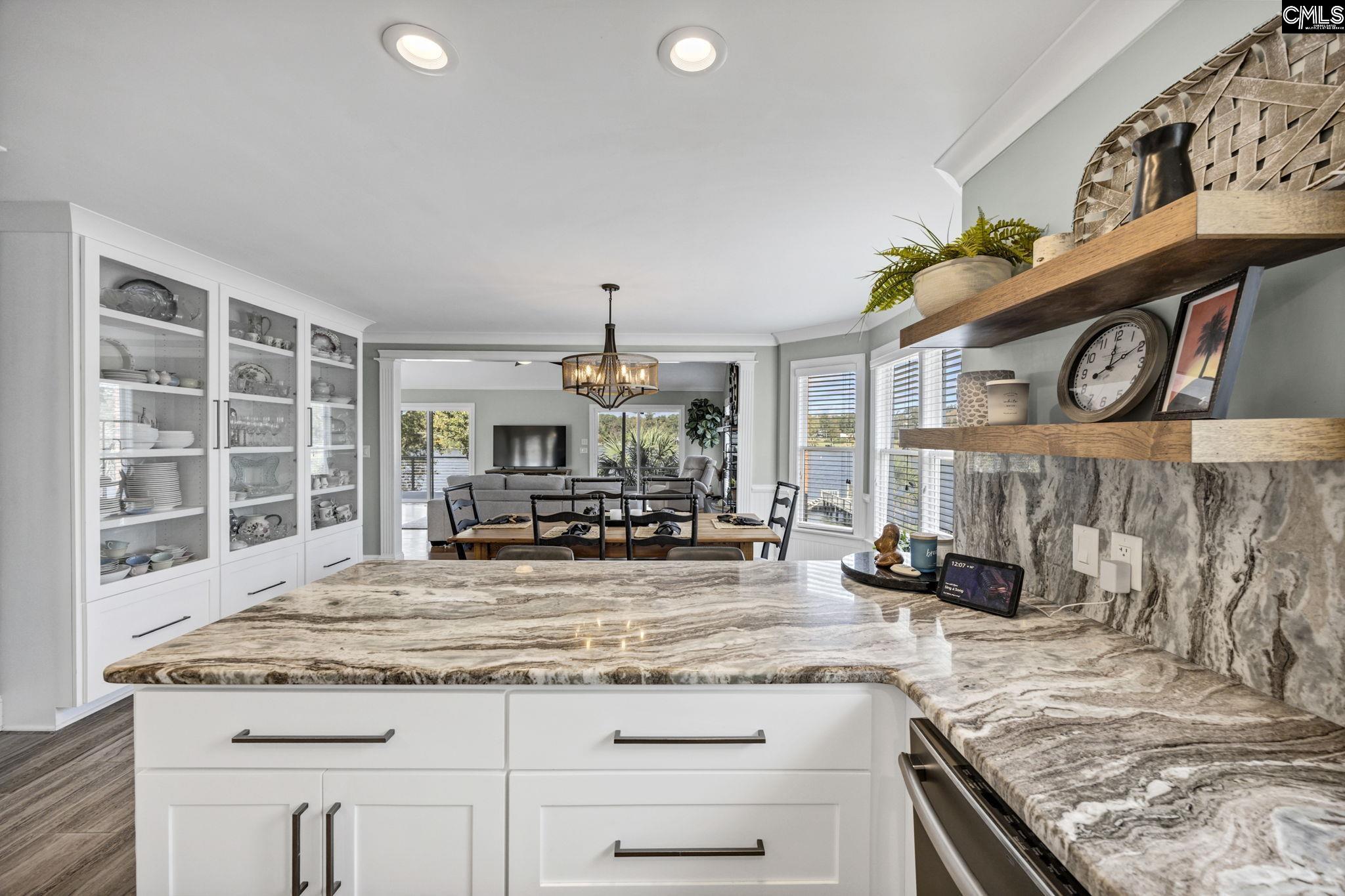 Lake Living is All About the Relaxing Views, This lakefront Home Offers the Best! Big Water, Sunset Sky Views that change with the Seasons, Large Cove, Quiet Neighborhood and No HOA. lakefront Home On Big Water In Hilton Area of Chapin. 4 Beds/ 3 ½ Baths, 2755sf + 316sf FROG= 3,071sf Total on almost half an acre. Renovated and Updated, This Home Offers Modern Style with a Nostalgic Feel. The Open Concept Living Space Boasts Cathedral Ceiling, Gas Fireplaces, Renovated Kitchen with Breakfast Bar and Spacious Dining Area with Bay Window. High End Granite Countertops, Modern White Cabinetry, Gas Range, Appliance Cabinet, and Beautiful Display Cabinets. Sliding Glass Doors Open the Lake View and Allow Access to the Screened Porch and Large Sundeck with Contemporary SS Cable Railing. The Owner’s Suite Offers Access to Sundeck, has His & Hers Closets with Built in Drawers & Shelves, Private Bathroom with Dual Vanities and Custom Walk In Shower. There are 2 Other Bedrooms on the Main Level that share an Updated Hall Bathroom with Skylight. The Lower Level Includes a Second Great Room, Large Bonus Room with Walk-In Closet & Private Bathroom. Workshop/Carolina Room with Lake Views, Private Dock Wired with Electricity, Lights and Private Boat Ramp. Irrigation System that Pumps from the Lake, 2 Car Garage, and FROG. Renovations and Updates Include: Dock (2017), HVAC (2018), Roof (2018), Kitchen & Baths (2019-20) and Smooth Ceilings. Zoned for Award Winning Chapin Cluster Schools in Lex Rich 5. See the Virtual Tour Video with Floorplans! Disclaimer: CMLS has not reviewed and, therefore, does not endorse vendors who may appear in listings.