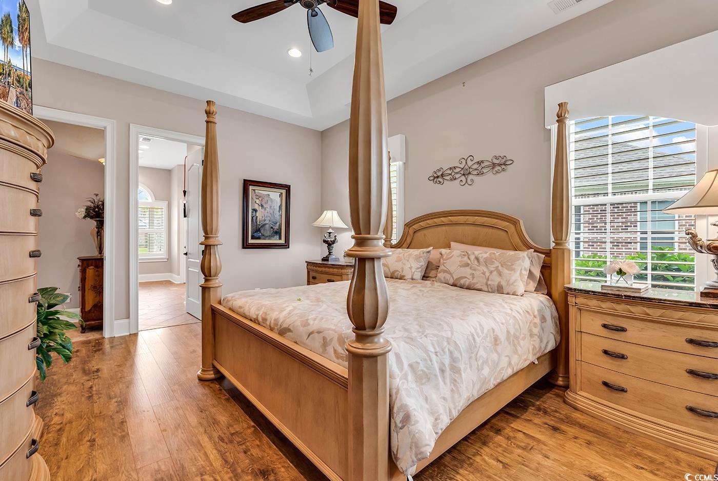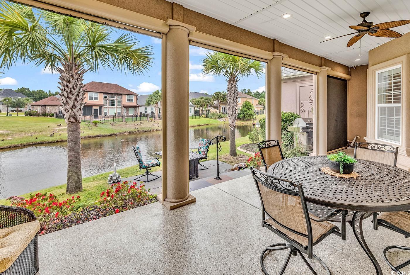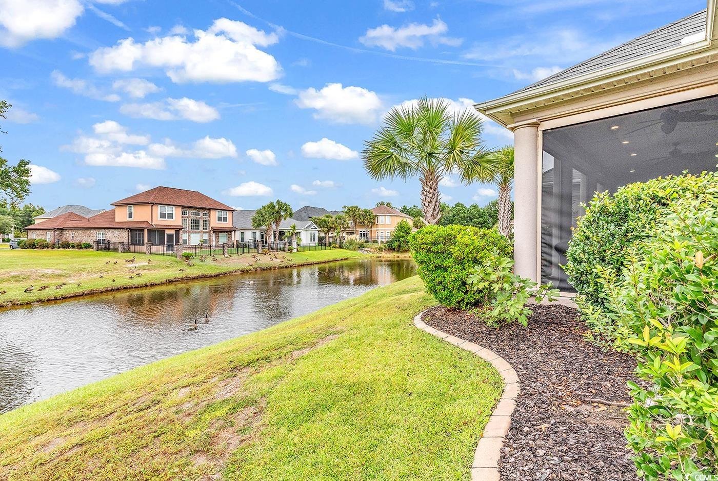 Welcome to this stunning, custom built four bedroom home with an additional home office, located in the highly sought after gated community of Carolina Waterway Plantation. With over 2500 ft.² of luxurious living space this residence is thoughtfully designed to offer both style and comfort. As your approach, you’ll be greeted by a grand entry featuring custom double doors that set the stage for the elegance that awaits inside. Step into a spacious open concept layout where warmth meets luxury. The living room features a beautiful coffered ceiling, creating an air of sophistication while the gas fireplace offers a cozy ambience for relaxing evenings. The seamless flow from the living room area to the kitchen and dining room is perfect for entertaining. The gourmet kitchen is a highlight and was recently renovated featuring gorgeous rich granite countertops, custom cabinetry, offering plenty of storage, a large island perfect for gathering and the kitchen nook with expensive windows overlooking the serene water views. The first floor includes three generously size bedrooms, and a home office providing plenty of space for family and guests. Each bedroom is crafted with attention to detail, ensuring comfort and style. The main level luxurious master suite serves as a personal retreat, boasting, ample space, water views, and a spa like en-suite bath, complete with granite counters, custom cabinetry, and high-end finishes. Outdoors, a screen porch with retractable screens provides the perfect setting for enjoying the scenic, water views, and comfort and privacy, whether you’re hosting guests or simply enjoying a peaceful morning coffee. This space adds a relaxing extension of the home. This property also features temperature controlled side load garage with custom epoxy floors, and garage door screens The well design, laundry room complete with additional storage, granite counters, and a wash sink provides functionality without compromising style. Every detail in this home has been carefully crafted from the luxury tile and wood flooring to the high-end fixtures and finishes throughout. Located in prestigious Carolina Waterway Plantation, the community offers an array of exclusive amenities-a well appointed clubhouse, Intracoastal Waterway boat access and storage as well as a dock and gazebo for enjoying the waterway lifestyle. With its prime location near dining and top rated schools, this home offers the perfect blend of luxury convenience and waterfront living.