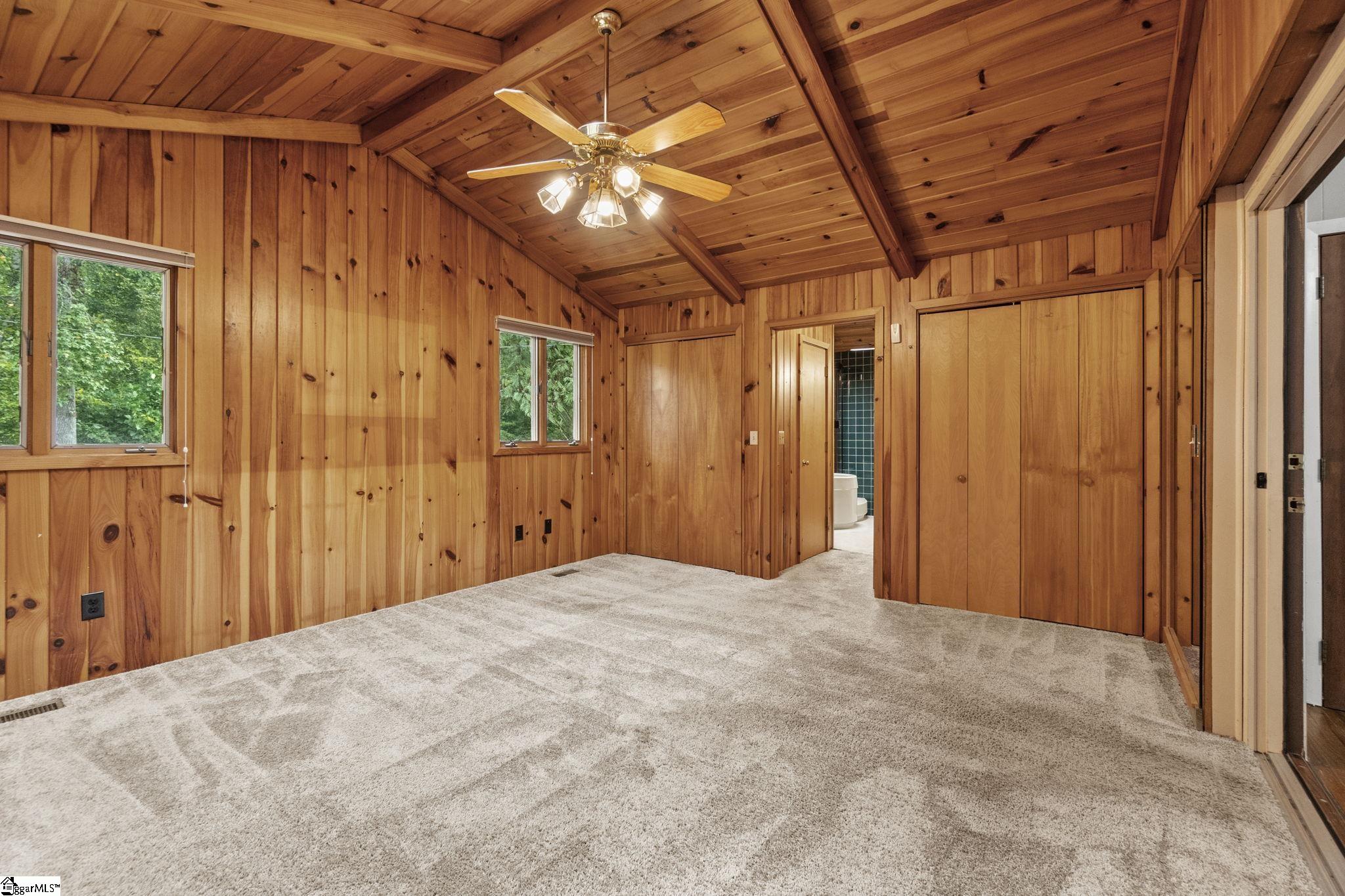 This charming three-bedroom, two-and-a-half-bathroom residence is full of possibilities! Nestled in the sought-after Duncan Park area, it’s just a two-minute drive to Duncan Park Lake, eight minutes to downtown Spartanburg, and ten minutes to Hwy 26. The kitchen has been updated with granite countertops, stainless steel appliances, and luxury vinyl flooring. Original hardwood floors flow throughout the main living areas, dining room, and non-primary bedrooms. The primary bedroom suite boasts a gorgeous vaulted ceiling, tongue and groove walls and ceiling, access to the outdoor deck and above-ground pool, and multiple walk in closets . The ensuite bathroom exudes vintage vibes with double sinks, a jetted tub, and a separate shower. A second bathroom is conveniently located between the other two bedrooms, with a half-bath ensuite to bedroom #2. Two large storage closets in the den and second bedroom that are set up for laundry or storage space. Check out the cedar-lined closet in the second bedroom! Step down into the sunken den with original parquet floors and brick walls, a blank slate for your imagination. The backyard is well-proportioned with a recently installed above-ground pool and additional deck. The property also features a large shed in the back, along with a small sitting porch and carport in the front. Make this home your own!