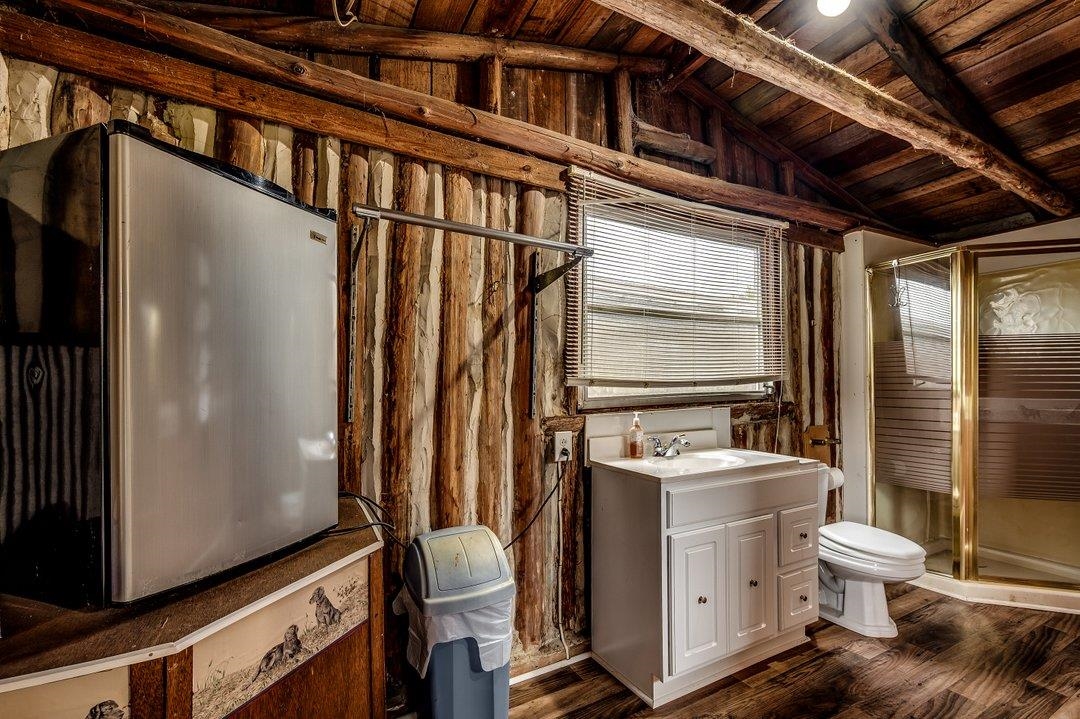 NO HOA. Take the time to check out all this property offers. Are you looking for the ultimate amount of detached storage? NO REASON TO LOOK FURTHER. Nothing else like this on the market. Large home on appx. 2.72 acres and has a cabin (older converted tobacco barn) with a full bath. The home has a floor plan like having 2 master bedrooms. One has a sitting room and the other has access to one of the extra large "2 screened porches". There is a living room with a fireplace and a very large den for entertaining. Additional concrete parking for the RV. The portion of the pond which conveys with this sale has a gazebo for your entertaining. Location is close to the city and lots of shopping. Come see if this amazing property fits your needs. You may be pleasantly surprised.Master bath has recently been remodeled with new fixtures; details available.