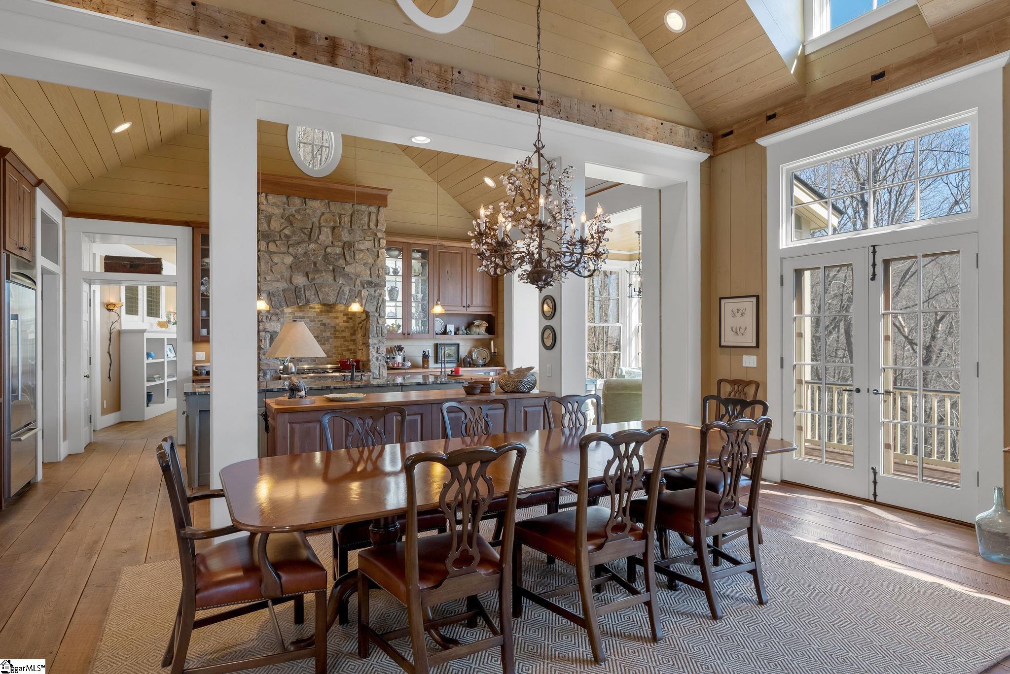 Perched at approximately 2,000 feet in elevation, this exceptional mountain retreat captures sweeping mountain vista views and the tranquil soundtrack of Gap Creek, highlighted by a striking 30-foot natural waterfall along the property. Encompassing 3.9 private acres and bordering 79 protected acres, the setting offers remarkable privacy, combined with preserved natural beauty. Upon entry, the residence unfolds with warmth and architectural intention. Eleven foot heart-of-pine floors sourced from the late 1800’s, and reclaimed maple countertops dating to the 1890’s create a sense of heritage and authenticity throughout. Natural light filters through thoughtfully placed windows and French doors, drawing the outdoors in and enhancing the home’s inviting ambiance. Unique architectural details—including charming porthole accents, a hidden door for storage seamlessly integrated into the mudroom, custom built-ins, and breeze doors with screened transoms—offer both character and function. The interiors feel curated yet comfortable, blending mountain craftsmanship with timeless design. Designed by Historical Concepts, renowned for their skill in combining traditional with vernacular architecture, and built in 2008 by Bluestone Construction, the home reflects architectural integrity and enduring quality. The kitchen balances beauty and performance with Thermador appliances, including a six-burner gas range, complemented by a farm sink, secondary hand sink, and a glass pass-through cabinet window. A built-in desk positioned between the kitchen and primary suite creates an ideal office nook. Living and entertaining spaces transition seamlessly outdoors to a screened porch featuring an outdoor stone fireplace with iron tie ceiling accents. Three sets of French doors open to the extended rear deck, rebuilt with TREX decking, welcoming mountain breezes and layered views. Outdoor living areas are perfectly positioned to capture the soothing, rhythmic sounds of the nearby waterfall, creating a peaceful backdrop for relaxing mornings and serene mountain evenings. A private guest wing offers its own entrance, creating a comfortable and secluded retreat for visitors. This wing features generously sized guest suites with board and batten walls and thoughtfully curated finishes, blending character with privacy while remaining connected to the main home. A newly constructed stone bridge provides a classic and welcoming private entrance to the guest wing. Separate from the main residence, a charming guest house provides additional flexibility for extended stays, an art studio, office, or workout space. Accessible by a stone walkway, as well as a dedicated golf cart path, the guest house enhances the estate’s versatility and sense of retreat. Its private patio captures truly spectacular mountain views, offering a stunning vantage point to relax, entertain, and take in the natural beauty that surrounds the property. Significant recent updates ensure turnkey confidence. The roof on both the main home and guest house was replaced in 2026. HVAC systems were updated in 2023, and a new driveway was installed in 2025. Gutters were added and the stone grilling patio was redone in 2024. The exteriors of both the home and guest house were repainted in 2025, and the screened porch was recently refreshed. The sellers will be passing along most of the furnishings to make this truly a home to enjoy right away. This is a rare convergence of architectural pedigree, thoughtful updates, natural preservation, and elevated mountain living—crafted for those who value privacy, authenticity, and enduring design. A membership to the Cliffs seven private communities is available for purchase.