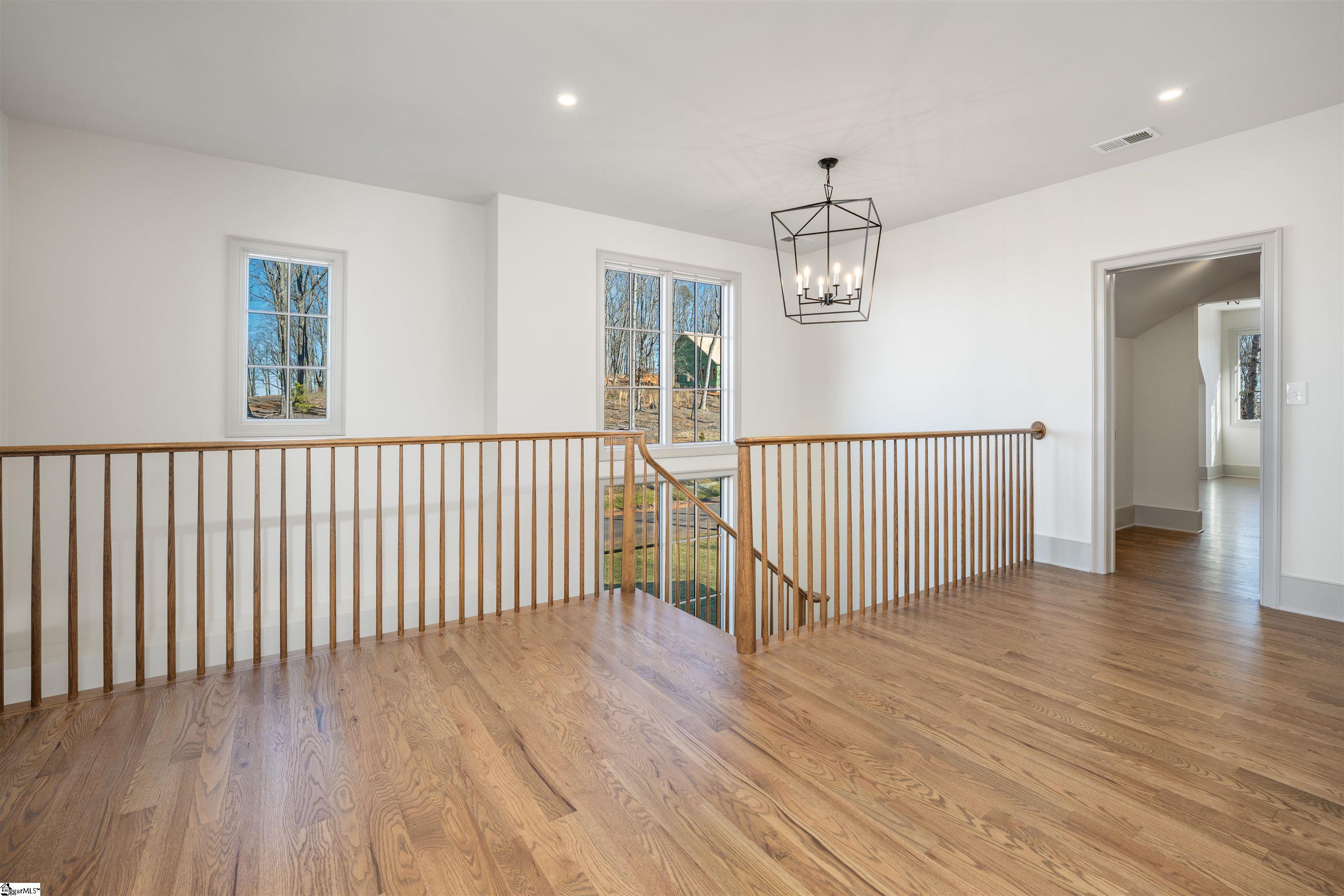 4,300 square feet on just over an acre with Blue Ridge views from the living room and screened porch. New construction by White Buffalo Homes, whose work has been featured in Better Homes & Gardens and HGTV Magazine, in Longview Carolina, Jim Anthony’s 180-acre agricultural neighborhood in the foothills outside Easley. Transitional European design with Hardi lap siding, stucco, and a stone chimney. Metal accent roofs and exterior fixtures that will age beautifully. The lot has some nice hardwoods on it and feels like part of the landscape rather than carved out of it. Inside, ¾-inch solid oak hardwood floors run throughout with a custom oak staircase, solid pine trim, and solid core doors. The kitchen is anchored by a limestone hood with custom maple cabinetry, quartz countertops, and a full Bosch appliance package. The living room has a ventless gas fireplace and views of the ridge. Main level has the prime suite with a zero-entry tile shower, open living and dining areas, laundry, walk-in pantry, and a private office with closets that can serve as a fifth bedroom. Upstairs has three bedrooms, a loft, and a 21x34 bonus room that is one of the most usable spaces in the house. Behind it, a large walk-in unfinished attic gives you serious storage now or future square footage when you’re ready. The screened porch is where this house comes together. 19x15 with iron railings, a vaulted pine ceiling, a gas fireplace, and mountain views that don’t have anything in front of them. Trex deck beyond with TimberTech aluminum railing's. Irrigation installed. Oversized 2.5-car garage with an EV charger already installed. 400-amp electrical service, Navien tankless gas water heater with recirculating pump, LED throughout, pre-wired for smart home, 10-year HVAC parts warranty with optional labor warranty, and Sherwin Williams Duration paint inside and out. This home sits in a community designed with as much intention as the house itself. Sixty acres of preserved green space, community gardens and chicken coops, beehives, over two miles of trails, and a mountaintop pavilion with 50-mile views of the Blue Ridge Escarpment. Four minutes from downtown Easley, twenty minutes to Greenville and Clemson.