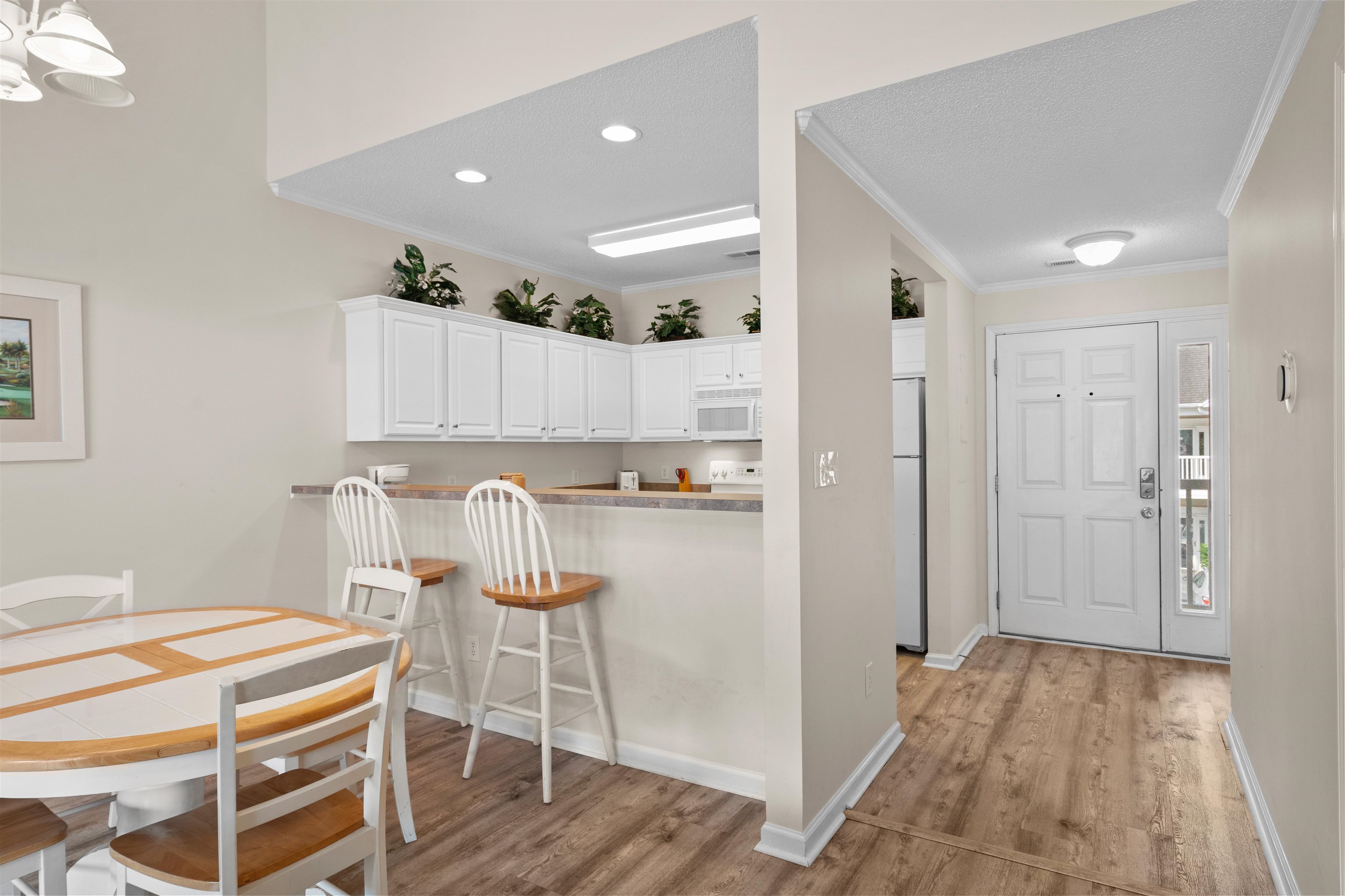 Welcome to Village at the Glens, one of Little River's most sought-after communities! This beautifully maintained top-floor 3 bedroom, 2 bathroom condo offers a perfect blend of comfort, style, and convenience just minutes from the beach, golf courses, and waterfront dining. Step inside and enjoy an open-concept layout with vaulted ceilings, abundant natural light, and spacious living and dining areas. Ideal for entertaining or relaxing after a day on the coast. The kitchen features ample cabinet space and a breakfast bar overlooking the main living space. The primary suite offers a peaceful retreat with an en-suite bathroom and generous closet space. Two additional bedrooms are perfect for guests and a home office. Enjoy your morning coffee or evening drink of the private screened-in porch overlooking beautifully landscaped grounds. Whether your looking for a permanent home or an investment property near the Grand Strand, this condo checks all the boxes! Schedule your private showing today!