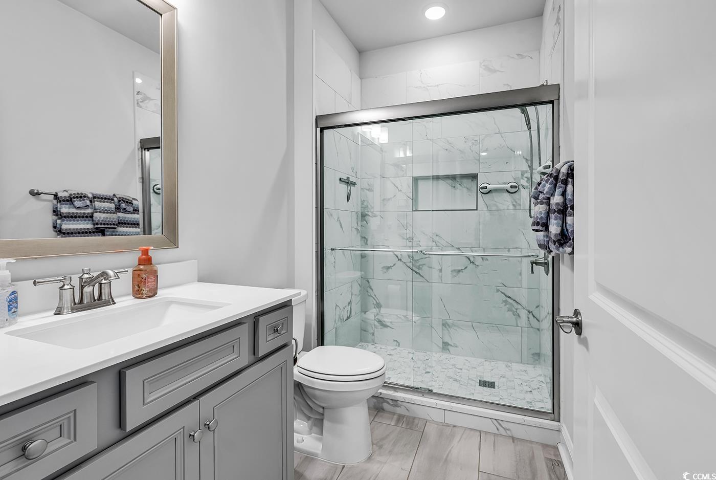 Embrace the Vacation Lifestyle at Del Webb in North Myrtle Beach! Welcome to your dream home in this vibrant community (the only 55+ community in North Myrtle Beach) where you will feel like you are on vacation every day. Don't miss out on the opportunity to make this home your own---very little inventory at Del Webb North Myrtle Beach remains and this one is meticulous! This home is loaded with upgrades and is ready NOW! No waiting 6 months for a home to be built! This one is move in ready. You can even golf cart to the beach from here and this side of the development is fully complete with no construction! Inside, you'll find a bright and airy space that instantly feels welcoming. The gourmet kitchen is a cook's dream, featuring upgraded soft close cabinets and Kitchen Aid high-end stainless appliances, including a built-in microwave and oven, gas cooktop, and dishwasher. The 42" cabinets and granite countertops make it both stylish and functional. Plus, the extended island provides even more space for entertaining. The spacious dining area flows right into the living room—perfect for hosting friends or just relaxing. With neutral laminate flooring in the living, dining, and kitchen areas, and tile in the bathrooms and laundry room, this home is ideal for any décor. Step outside to the 20 x 15 fully screened lanai (with electronic shades) where you can unwind while having your morning coffee. The lanai has a beautiful epoxied floor for easy care outdoor living and overlooks lush landscaping and a scenic walking path that leads to the amenity center and nearby putting green. There's even a green space on one side of the home for added privacy. The owner's suite is your personal retreat, complete with a tray ceiling and a spa-like bathroom featuring a walk-in shower, dual sinks. The primary closet has been customized for added space with wood cabinets and fixtures by Closets by Design giving you tons of space. All closets have been customized to provide more storage space and the home comes with blinds on all windows. There is a generous sized guest bedroom and the hall bathroom has been completely upgraded with a new tiled walk in shower and glass enclosure plus granite countertop and vanity. Need a little extra space for storage or more visitors? The flex room has been outfitted with custom wood cabinetry and a murphy bed to accommodate more guests. Two car garage, in ground irrigation system and tankless water heater are also included. Living at Del Webb North Myrtle Beach is like being on vacation every day. Included in your very low monthly HOA is lawn care, hi speed wifi and cable and all the amenities. Enjoy the resort style pool, indoor pool, well equipped fitness center, bocce court, 8 pickleball courts and a putting green. A full time staff plans activities and events and a monthly calendar has clubs and activities daily.