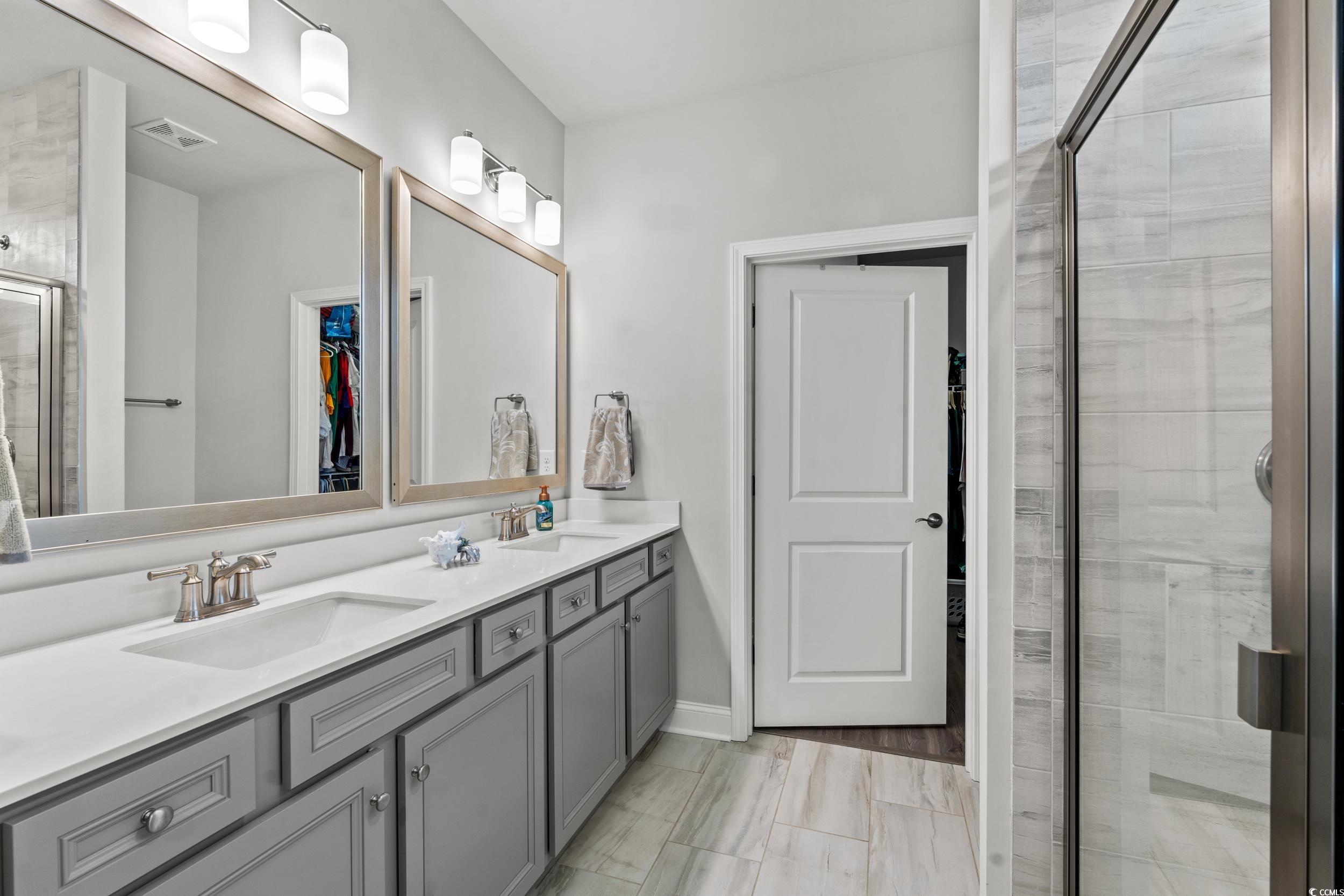 Embrace the Vacation Lifestyle at Del Webb in North Myrtle Beach! Welcome to your dream home in this vibrant community (the only 55+ community in North Myrtle Beach) where you will feel like you are on vacation every day. Don't miss out on the opportunity to make this home your own---very little inventory at Del Webb North Myrtle Beach remains and this one is meticulous! This home is loaded with upgrades and is ready NOW! No waiting 6 months for a home to be built! This one is move in ready. You can even golf cart to the beach from here and this side of the development is fully complete with no construction! Inside, you'll find a bright and airy space that instantly feels welcoming. The gourmet kitchen is a cook's dream, featuring upgraded soft close cabinets and Kitchen Aid high-end stainless appliances, including a built-in microwave and oven, gas cooktop, refrigerator and dishwasher. The 42" cabinets and granite countertops make it both stylish and functional. Plus, the extended island provides even more space for entertaining. The spacious dining area flows right into the living room—perfect for hosting friends or just relaxing. With neutral laminate flooring in the living, dining, and kitchen areas, and tile in the bathrooms and laundry room, this home is ideal for any décor. Step outside to the 20 x 15 fully screened lanai (with electronic shades) where you can unwind while having your morning coffee. The lanai has a beautiful epoxied floor for easy care outdoor living and overlooks lush landscaping and a scenic walking path that leads to the amenity center and nearby putting green. There's even a green space on one side of the home for added privacy. The owner's suite is your personal retreat, complete with a tray ceiling and a spa-like bathroom featuring a walk-in shower, dual sinks. The primary closet has been customized for added space with wood cabinets and fixtures by Closets by Design giving you tons of space. All closets have been customized to provide more storage space and the home comes with blinds on all windows. The separate laundry room includes a washer and dryer that convey with the home. There is a generous sized guest bedroom and the hall bathroom has been completely upgraded with a new tiled walk in shower and glass enclosure plus granite countertop and vanity. Need a little extra space for storage or more visitors? The flex room has been outfitted with custom wood cabinetry and a murphy bed to accommodate more guests. Two car garage, in ground irrigation system and tankless water heater are also included. Living at Del Webb North Myrtle Beach is like being on vacation every day. Included in your very low monthly HOA is lawn care, hi speed wifi and cable and all the amenities. Enjoy the resort style pool, indoor pool, well equipped fitness center, bocce court, 8 pickleball courts and a putting green. A full time staff plans activities and events and a monthly calendar has clubs and activities daily.