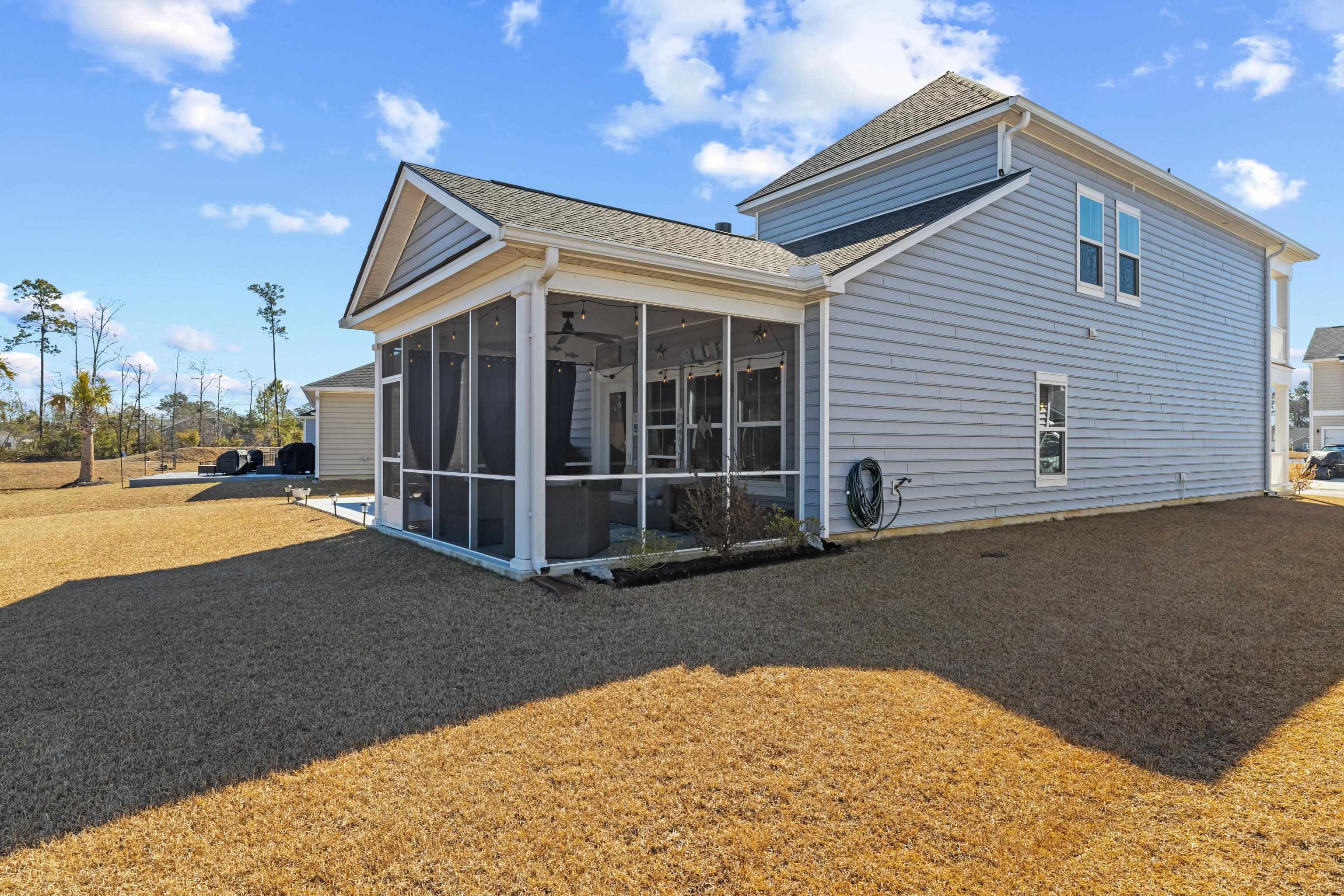 This is the one buyers wait for—and it shows. Welcome to 135 Empyrean Circle, a beautifully upgraded 5-bedroom, 3.5-bath home in the highly sought-after Arcadia neighborhood of Myrtle Beach, perfectly positioned on a serene pond-view lot. From the moment you step inside, the quality is unmistakable. Hardwood laminate flooring flows throughout the home, complemented by custom built-ins, designer fixtures, accent walls, and elegant tray ceilings that elevate both the living and dining spaces. The open-concept kitchen is as functional as it is stylish, featuring pendant lighting over an oversized breakfast bar, cabinet rollouts, and an updated pantry—ideal for entertaining or everyday living. The main-level primary suite offers a peaceful retreat, while a second primary suite upstairs adds incredible flexibility, perfect for multigenerational living, extended guests, or a private bonus suite. Each primary space is thoughtfully designed with built-ins, tray ceilings, and spa-inspired baths showcasing upgraded countertops and mirrors. Outdoor living is equally impressive with a screened-in patio and an additional 10x20 concrete pad overlooking tranquil pond views—your go-to spot for morning coffee or evening relaxation. Additional upgrades include a whole-house water filtration system, wireless keypads, ADT alarm system, laundry room shelving, gutters, irrigation system, and upgraded door hardware throughout. The Arcadian lifestyle completes the package with resort-style amenities, including a clubhouse with a full calendar of events, fitness center, community pool with splash pad, fire pit, pickleball courts, and playground. Conveniently located just minutes from Intracoastal Waterway access, beaches, shopping, dining, and entertainment—this move-in-ready home delivers the space, upgrades, and lifestyle buyers are searching for. Schedule your showing today before it’s gone.