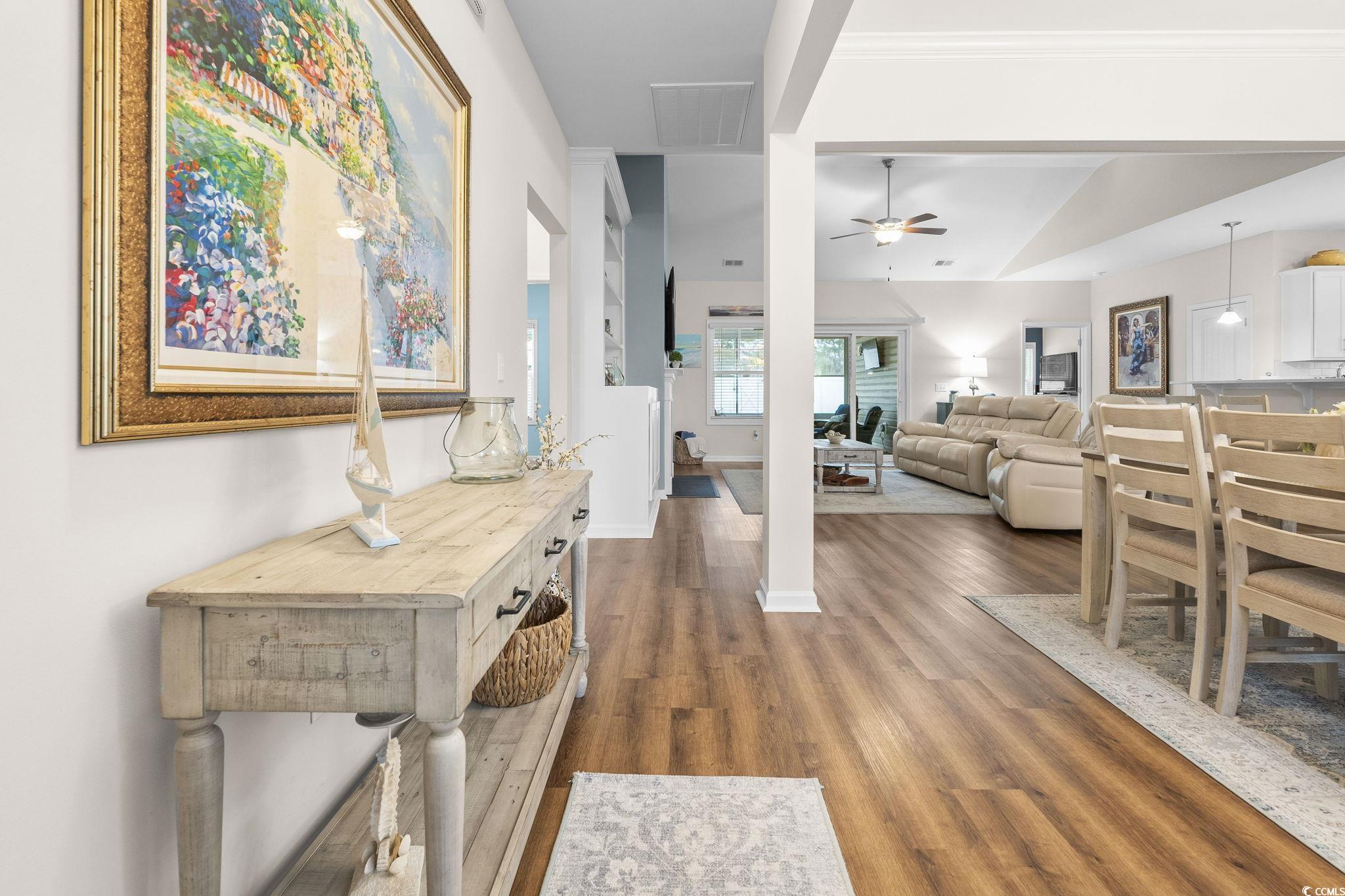 This beautifully upgraded resale home, built in 2022, shows better than a model and is packed with thoughtful details throughout. The gourmet kitchen is the heart of the home and features upgraded finishes, ample cabinetry, and a layout ideal for both everyday living and entertaining. Built-in features and a cozy fireplace add warmth and character to the main living space. Just off the living area, the screened-in porch with Eze-Breeze windows creates the perfect indoor-outdoor retreat to enjoy year-round. The large backyard is fully fenced, offering privacy and plenty of space to relax or entertain. Located outside of a flood zone, this home provides peace of mind along with exceptional style and functionality. The community offers a dock where residents can kayak or fish, adding to the laid-back coastal lifestyle. A rare opportunity to own a lightly lived-in home with extensive upgrades and true pride of ownership.