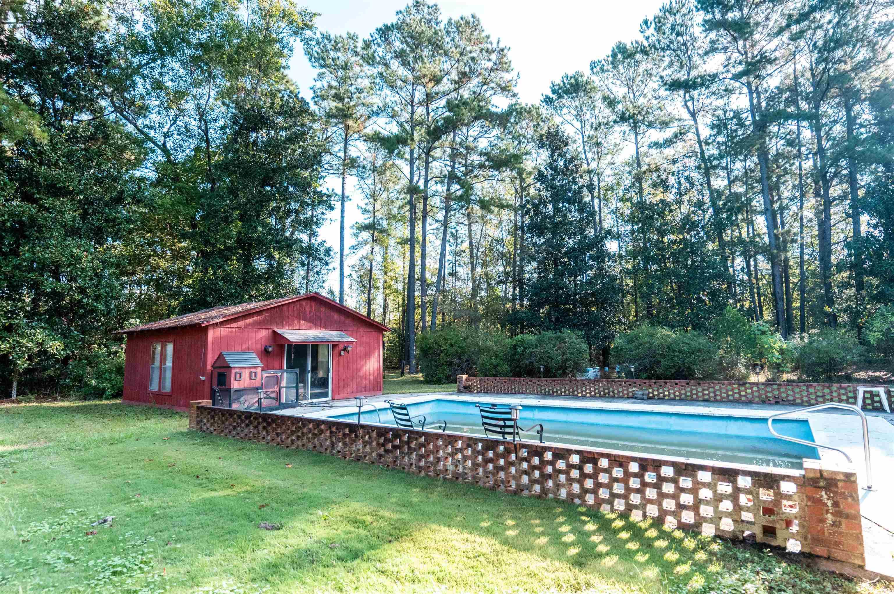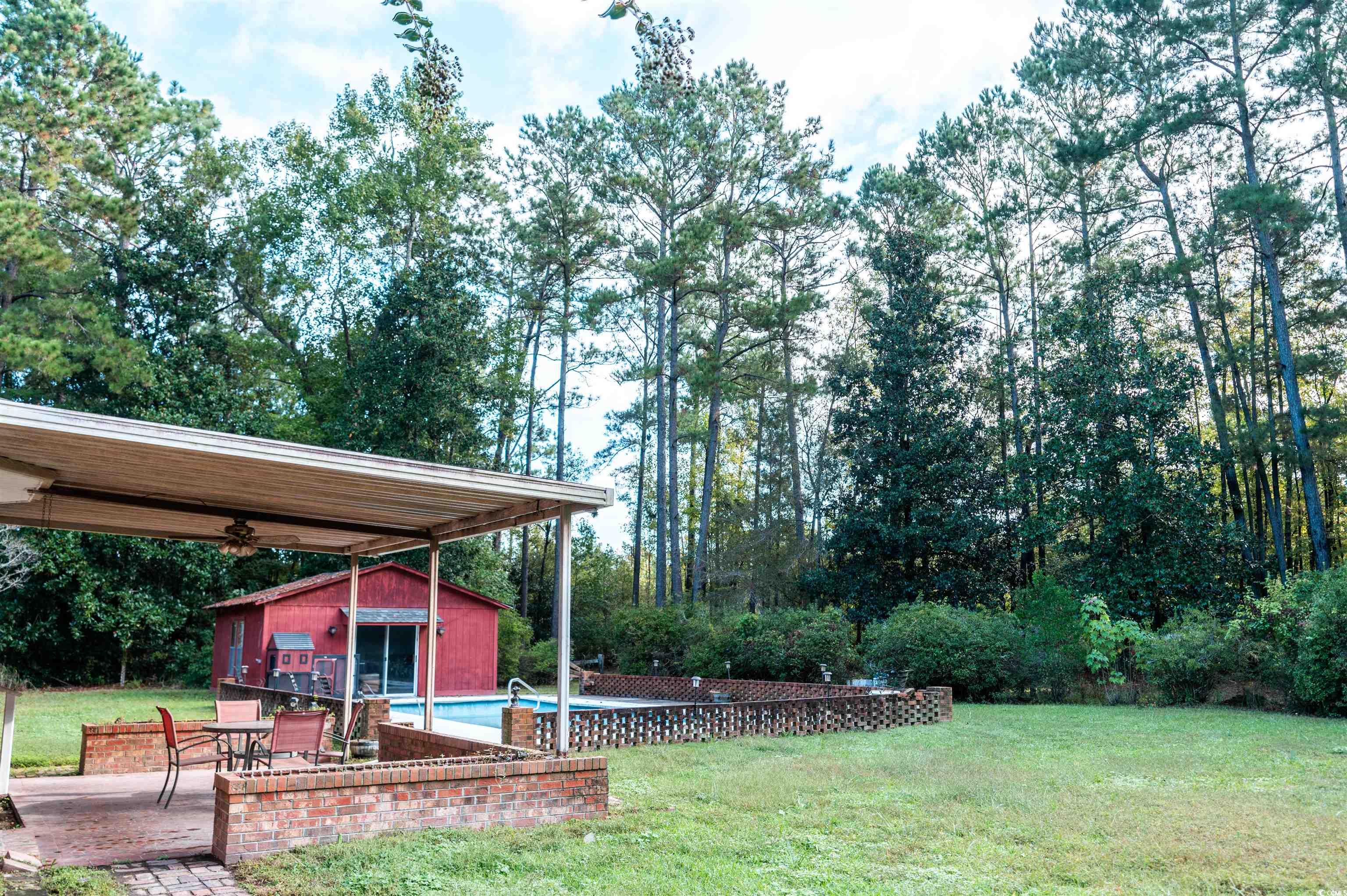 Beautiful 3 bed 2 bath home as your country escape. Well off from any major Hwy this home has it all. Amazing azalea lined yard with brick fencing offering privacy like no other. A long-paved driveway makes way to your very own 3 acres of land. The home has an open plan to allow movement throughout the home. The dining room sits up front and connects directly to the kitchen. With a breakfast area and large windows overlooking the back yard and pool area. The master bedroom is very large allowing room for sitting area as well as king sized bed. Detached from the home is many unique features including a pool house overlooking the saltwater pool. Apart from the pool house is a mother-in-law suite with kitchen area and bathroom. Away from the mother-in-law suite sits a cook house with overlapping outside storage space. This is a must see and special place.