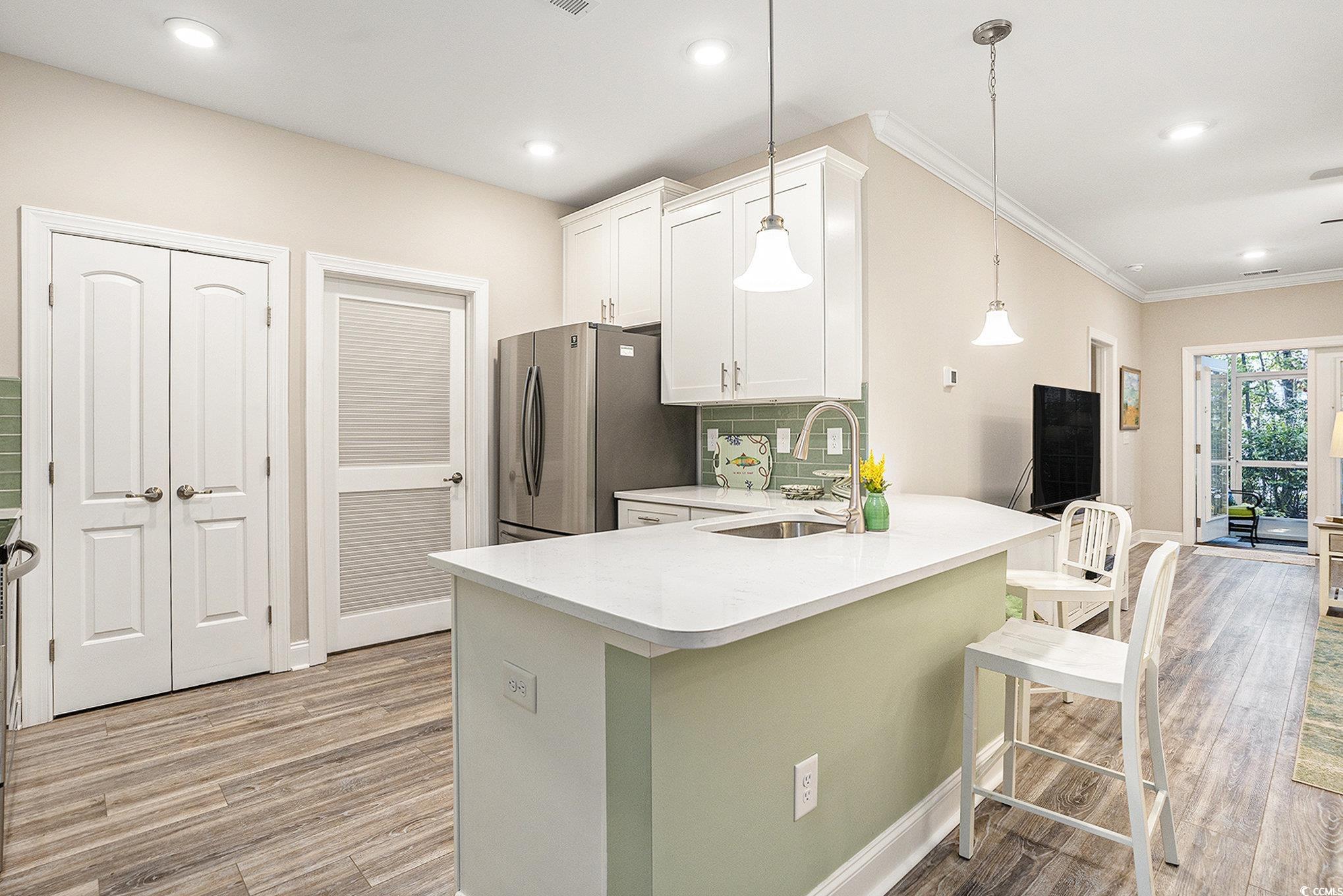 First Floor 3BR/2BA Villa Just 2 Miles from the Beach! This stunning first floor villa offers 3 bedrooms, 2 bathrooms, and beautiful private, tree lined views perfect for enjoying your morning coffee from the screened in porch. Inside, you’ll find 9 foot ceilings, upgraded luxury vinyl flooring, new white quartz countertops and new faucets in the kitchen and bathrooms, spacious walk in closets, and an outside storage unit. All living spaces are on one level for ultimate convenience. The gated community is centrally located and just 2 miles to the beach, making it an ideal primary residence, vacation home, or coastal retreat. Experience carefree, coastal living at its best!